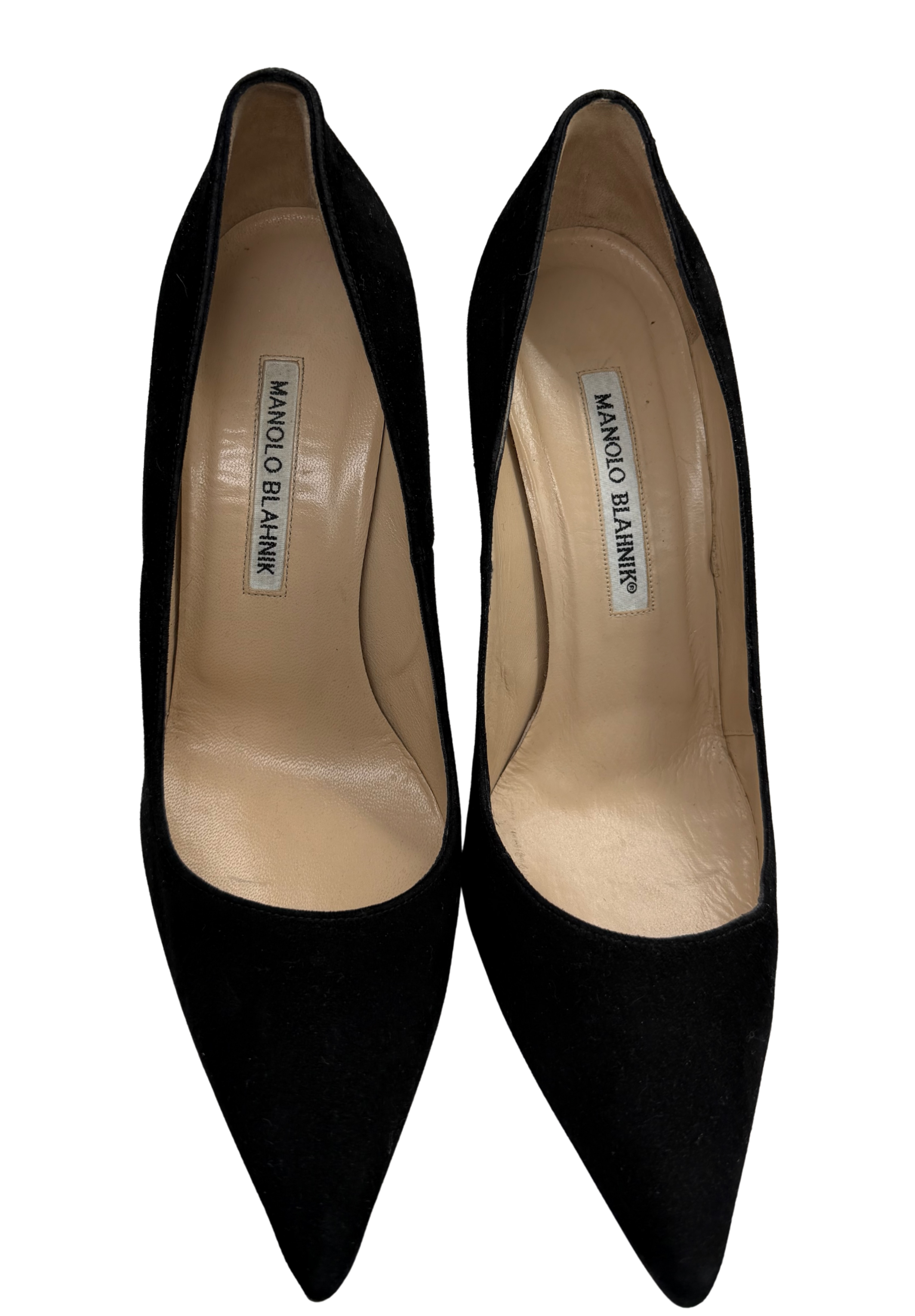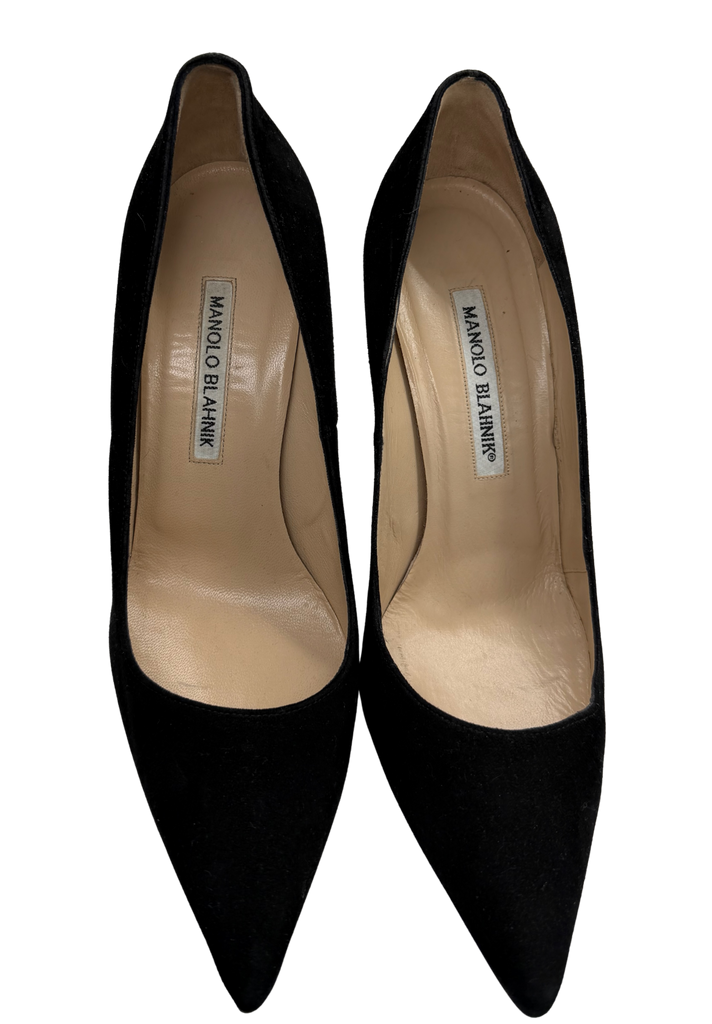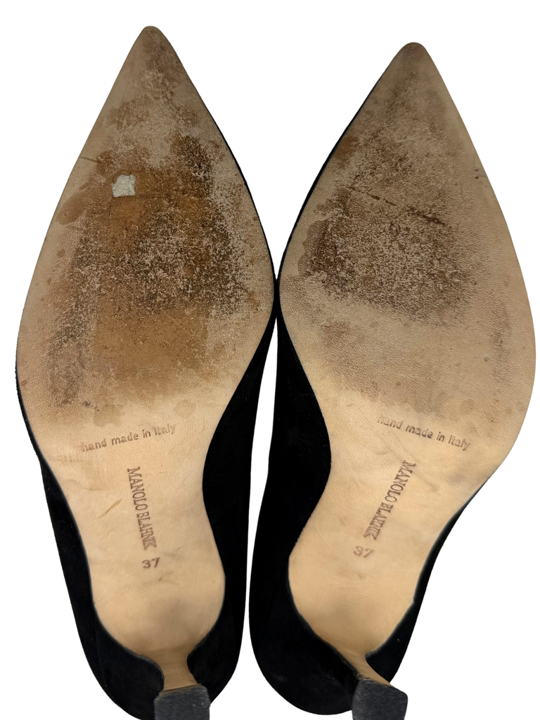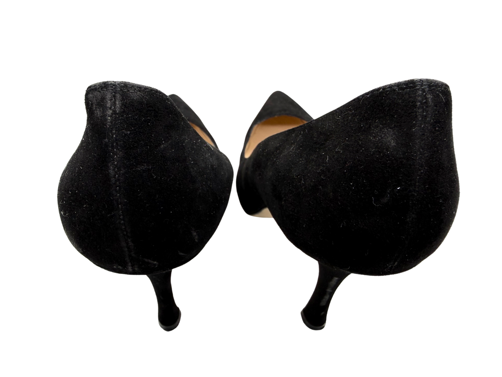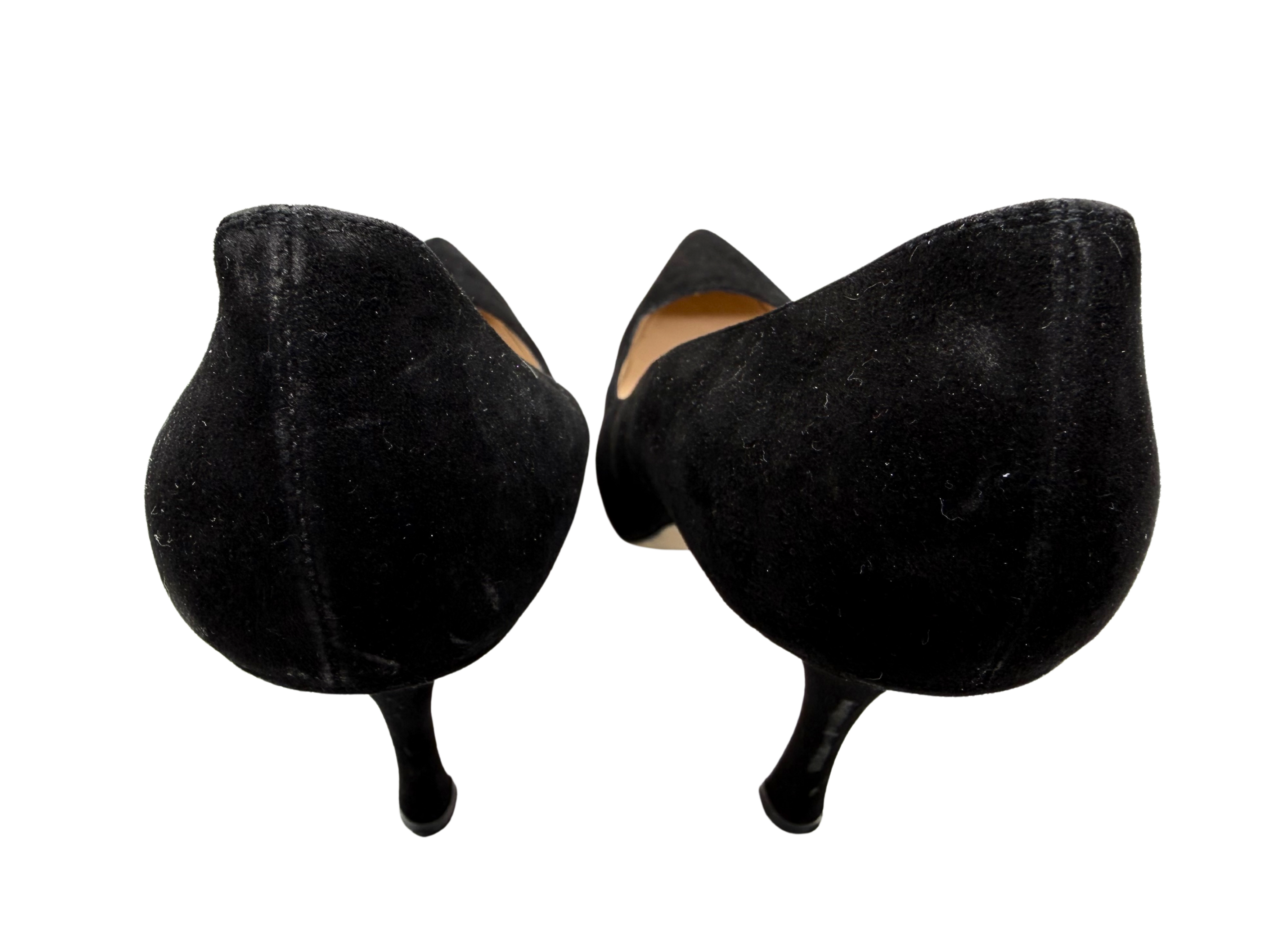 Manolo Blahnik Black Suede Pointed Toe Heels, Size 37