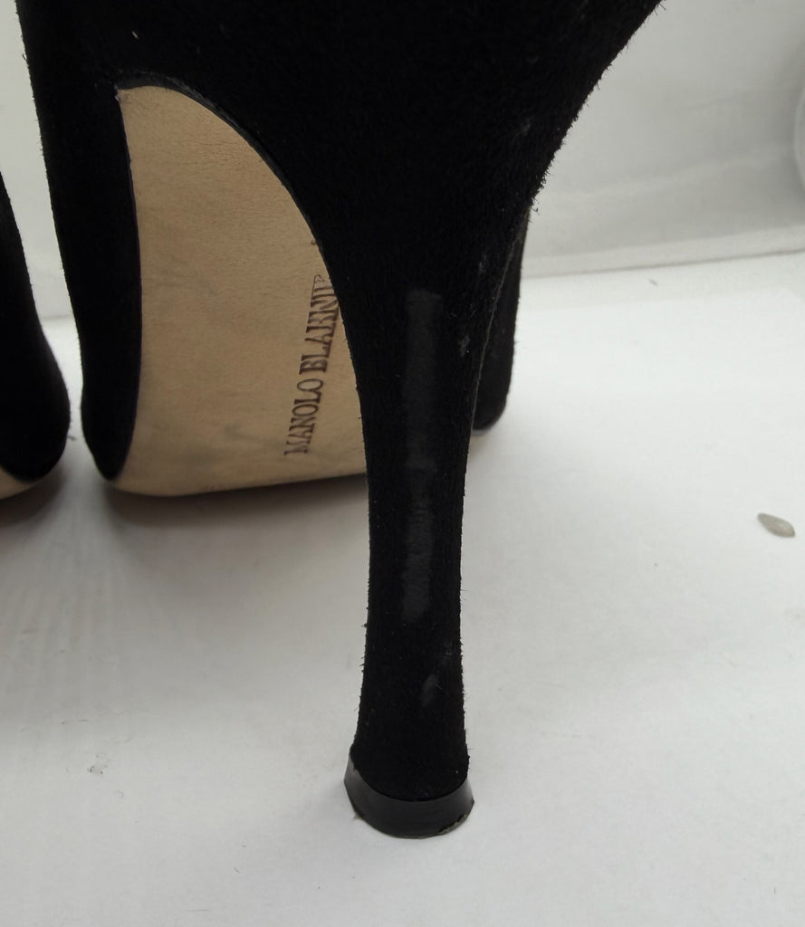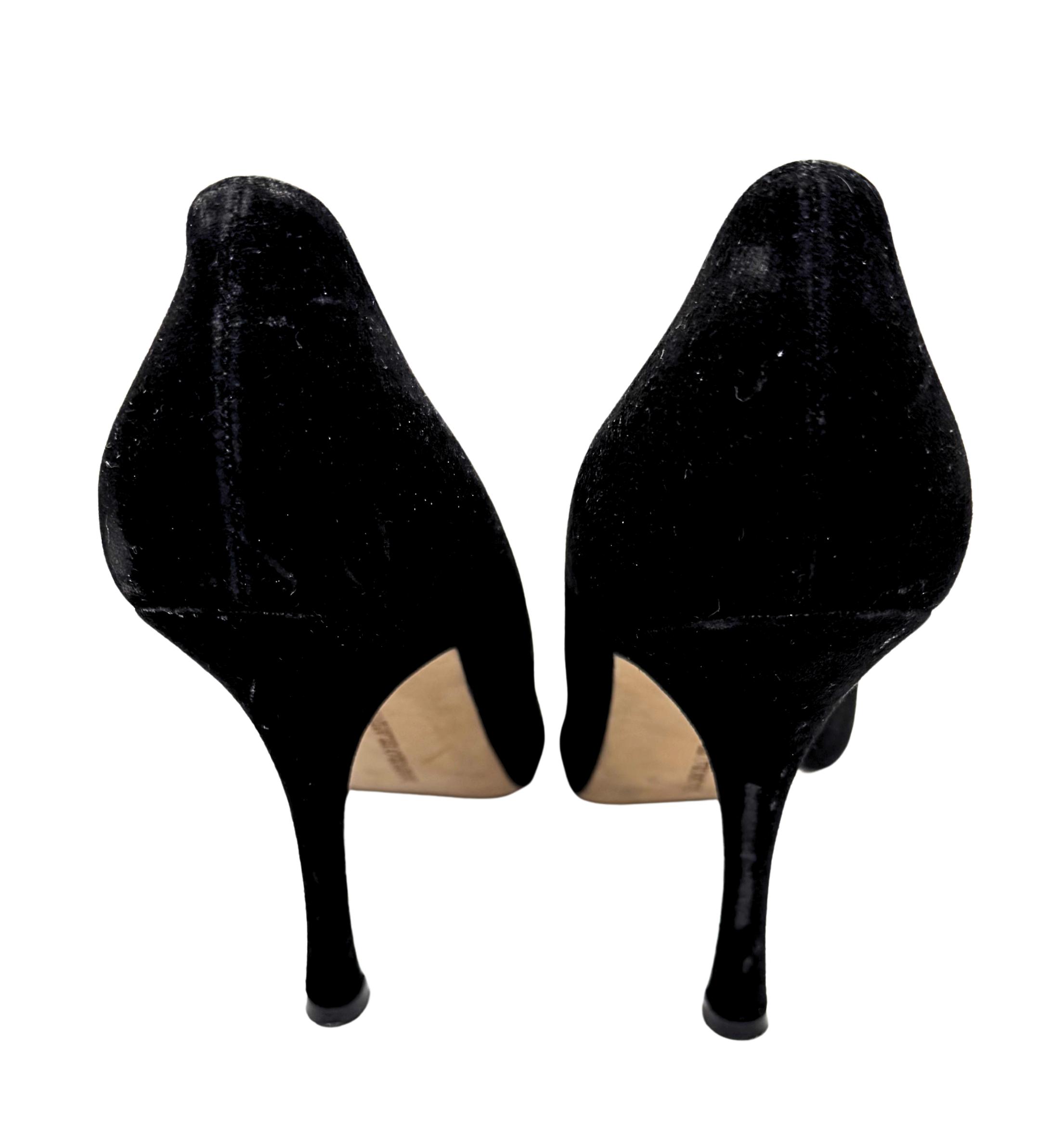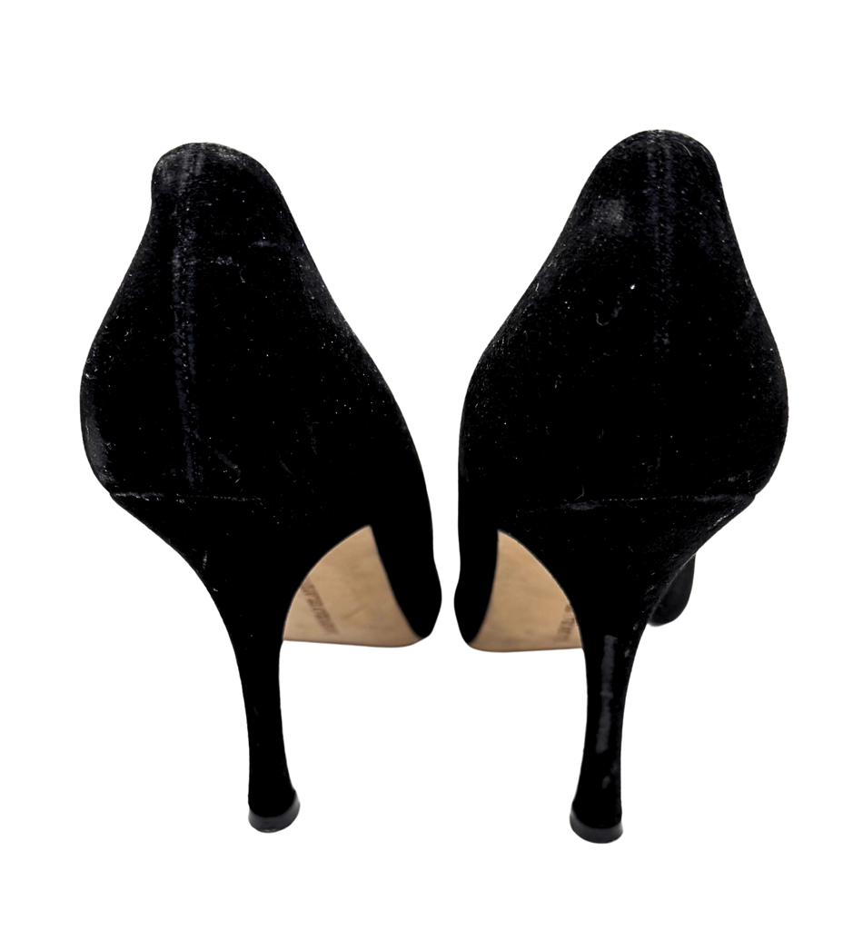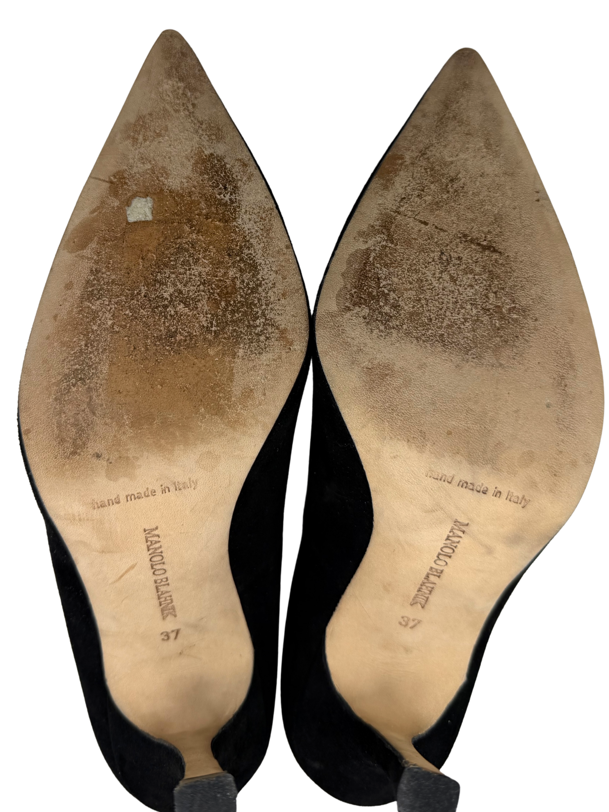 Manolo Blahnik Black Suede Pointed Toe Heels, Size 37