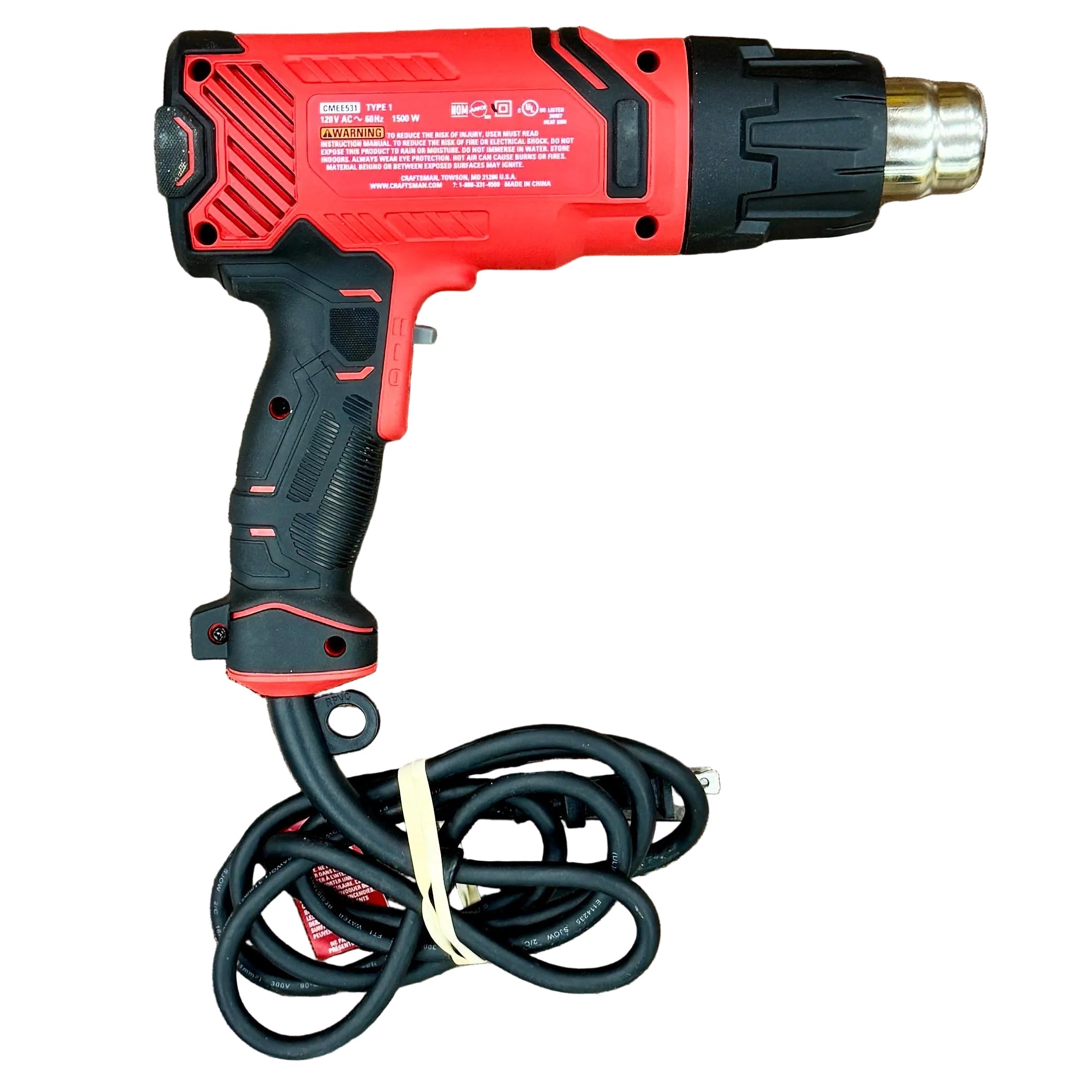 The CRAFTSMAN 1500W Corded Electric Heat Gun delivers powerful, reliable heat for a variety of home improvement and professional applications. Designed for precision and durability, it is ideal for stripping paint, shrinking tubing, and other heat-related tasks.