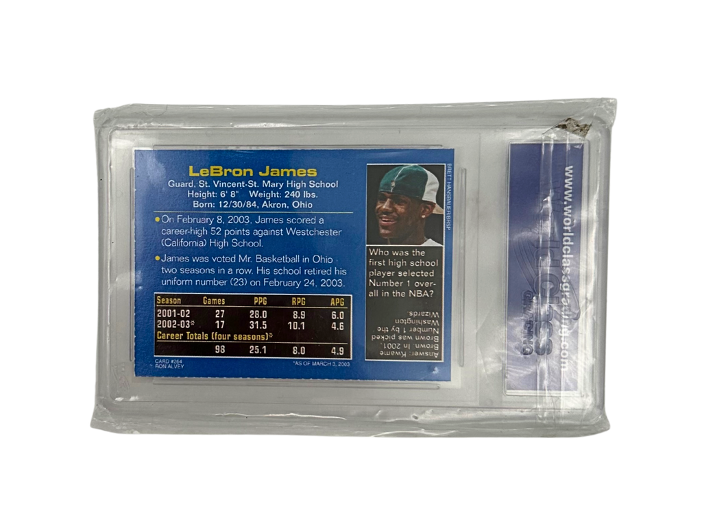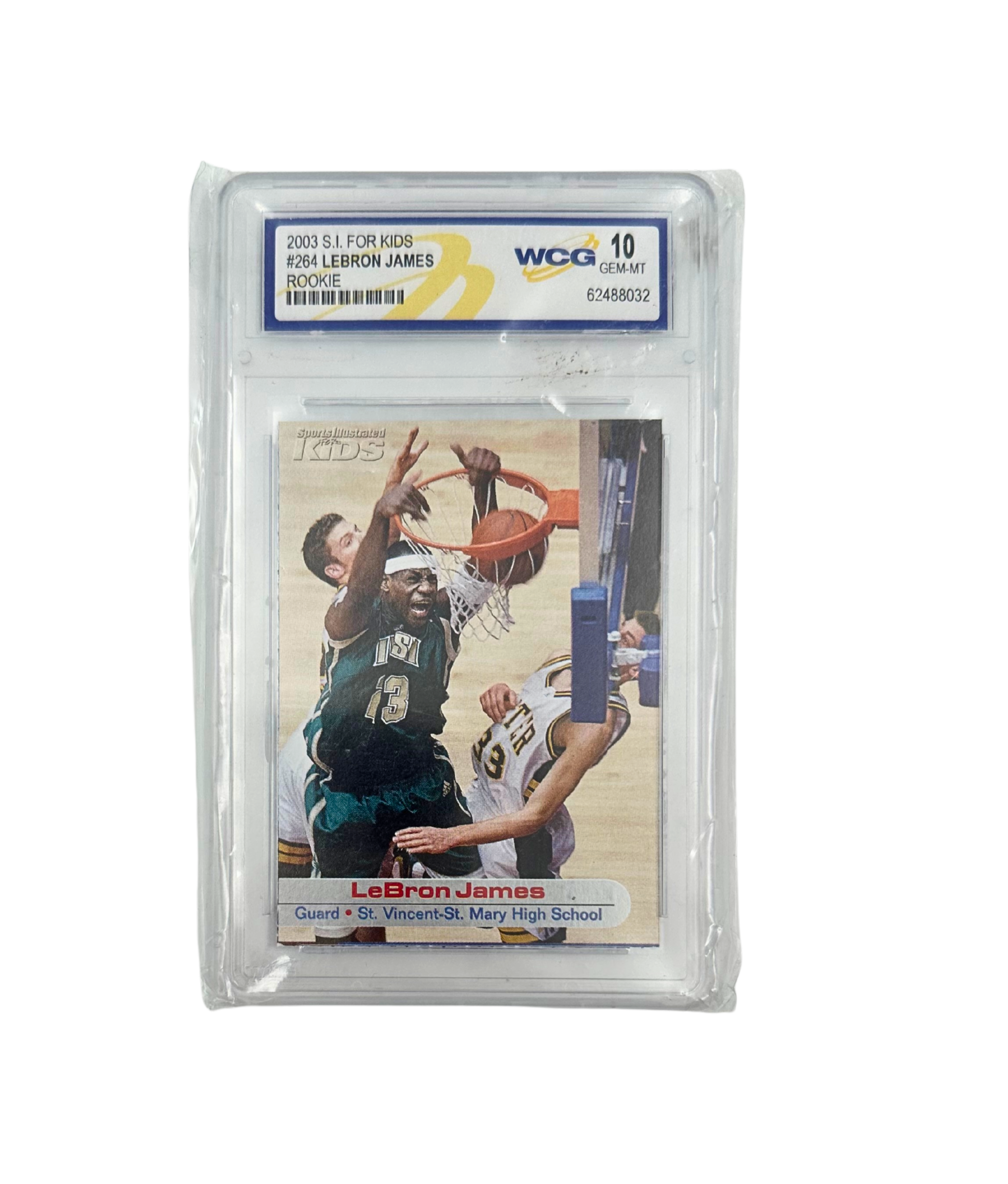 WCG-graded as a perfect 10, this card boasts sharp corners, vibrant color, and clean edges, all sealed in a tamper-proof slab for protection and display. Whether you're a serious collector or just a massive LeBron fan, this card is a must-have for any sports memorabilia collection.