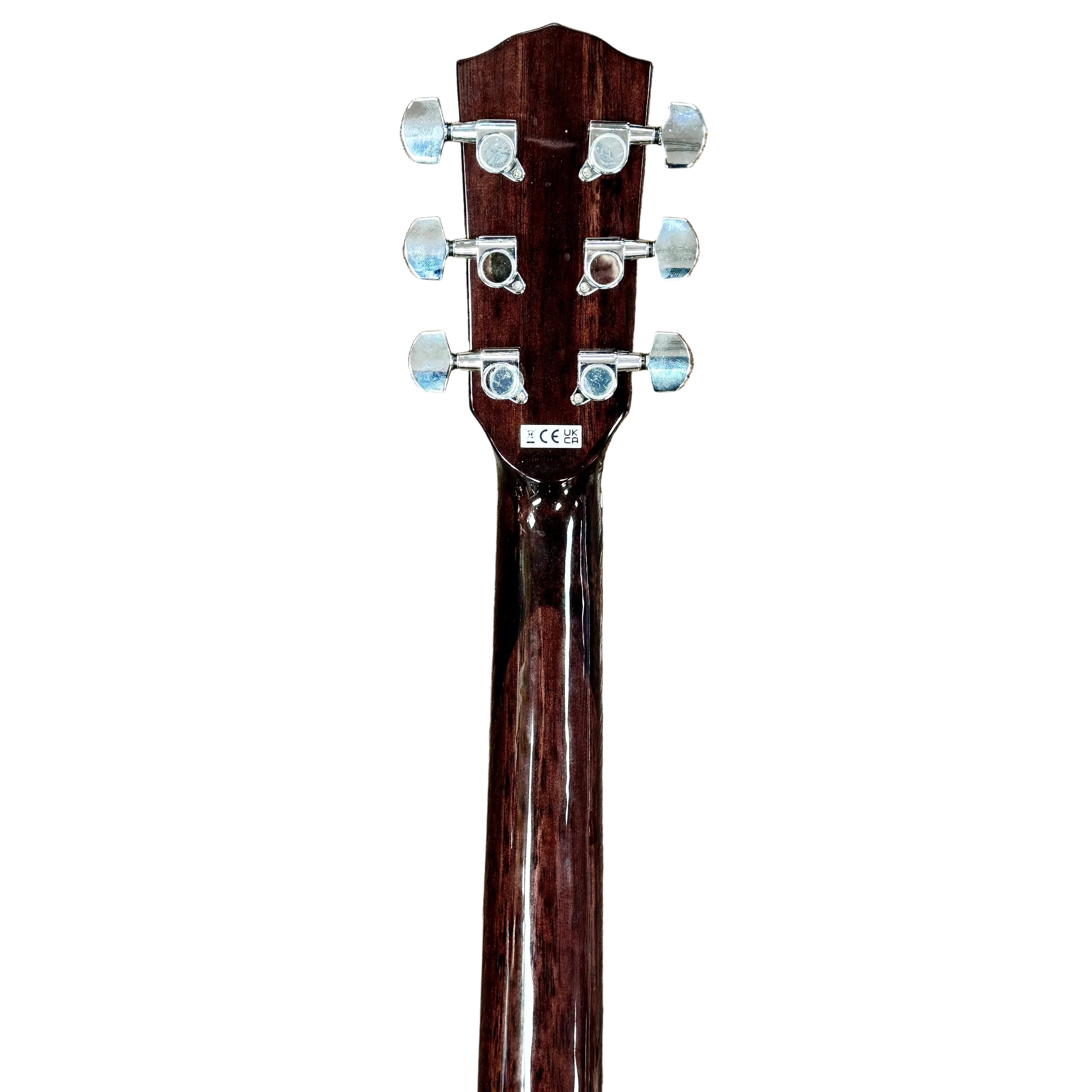Classic natural finish highlights the traditional acoustic guitar appearance.