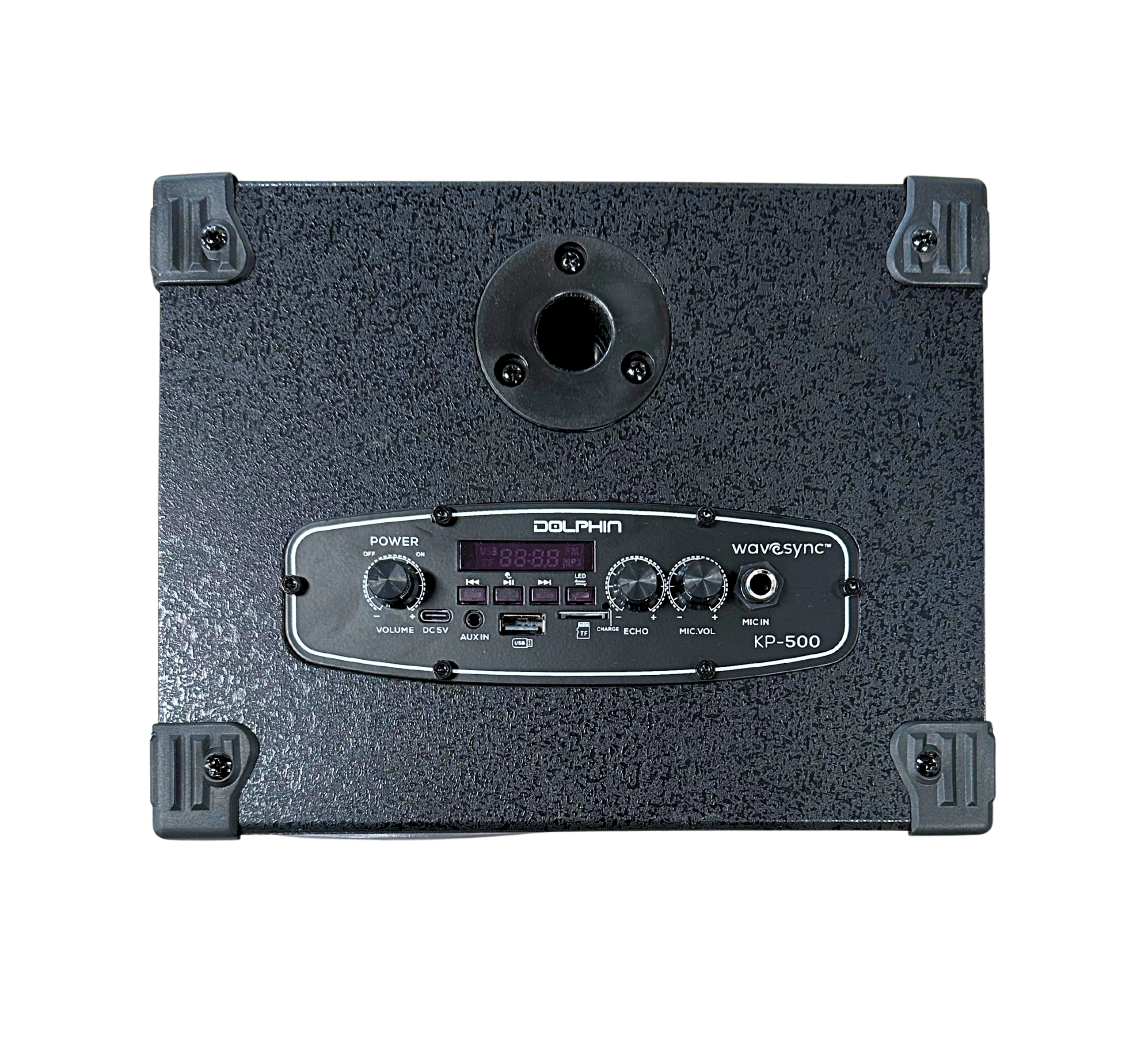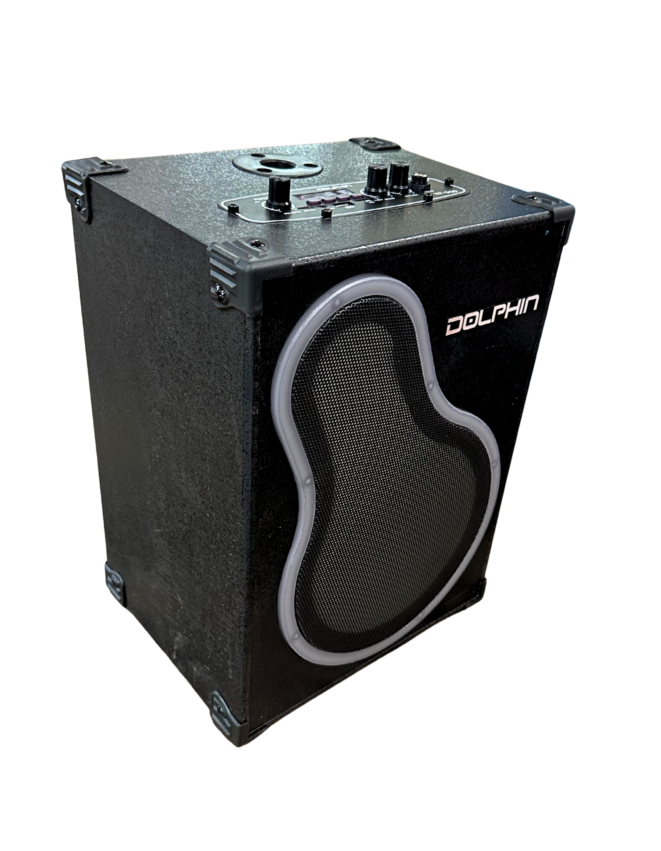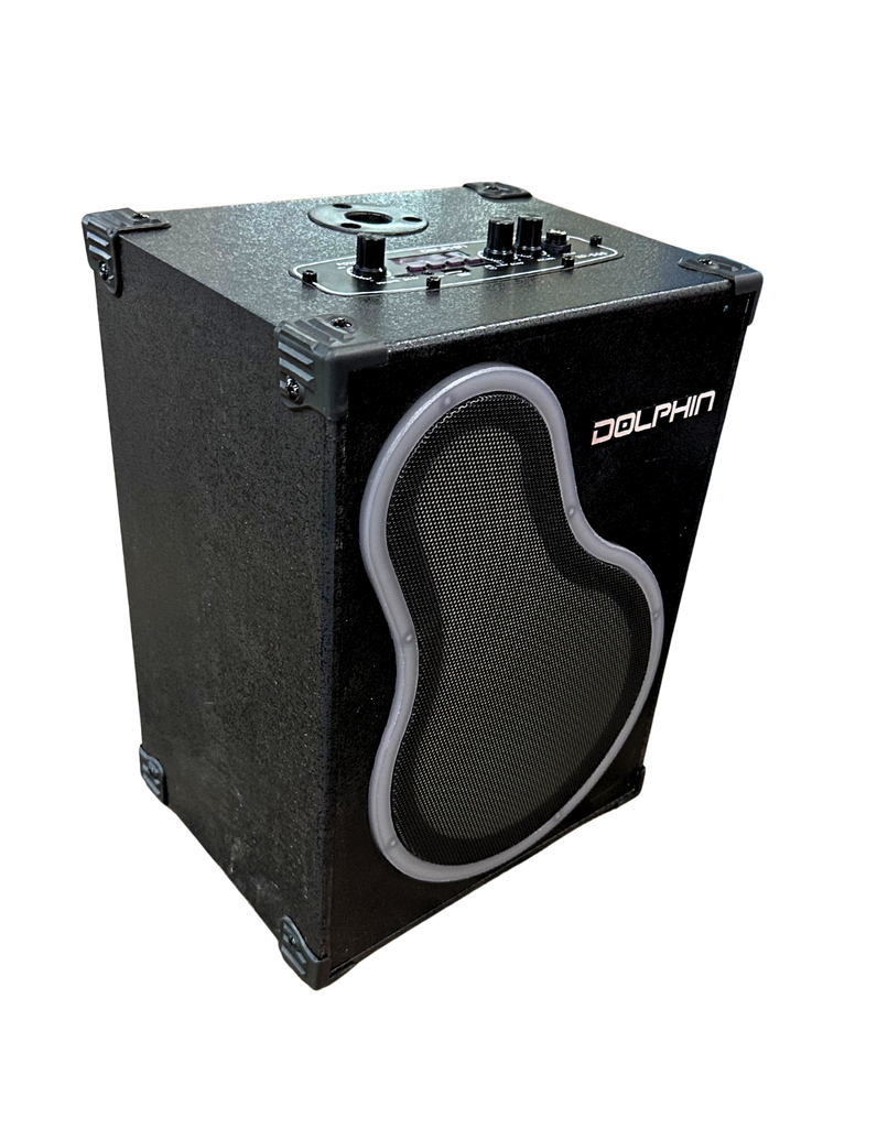 Bring the party wherever you go with the Dolphin KP-500 portable karaoke speaker! This powerful unit combines crisp, dynamic sound with fun, user-friendly features perfect for gatherings, events, or home entertainment. Designed with a unique curved front grille and rugged cabinet, it’s built to deliver bold audio performance and durability.