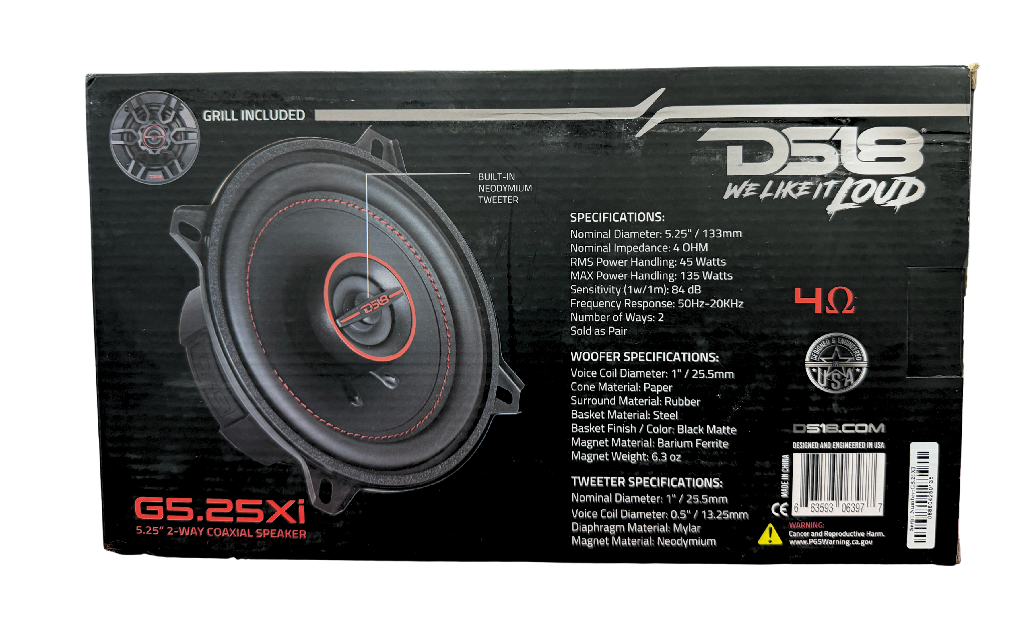 The DS18 GEN-X GS.25Xi 5.25-inch 2-way coaxial speakers are designed to deliver clear mids and crisp highs, making them a solid upgrade for factory car audio systems. Built with DS18’s performance-focused design, these speakers combine a durable woofer with a built-in neodymium tweeter for balanced sound and improved clarity across a wide frequency range.