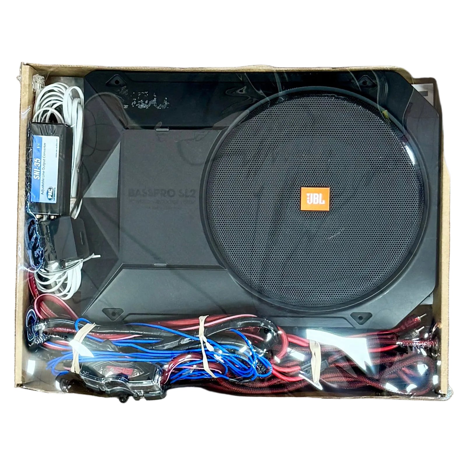 The JBL BASSPRO SL2 8" Powered Under‑Seat Subwoofer System is designed to deliver deep, impactful bass in a compact, space-saving design. Built with a low-profile enclosure and integrated Class D amplifier, this powered subwoofer fits conveniently under most vehicle seats while enhancing the overall audio performance of factory or aftermarket sound systems.