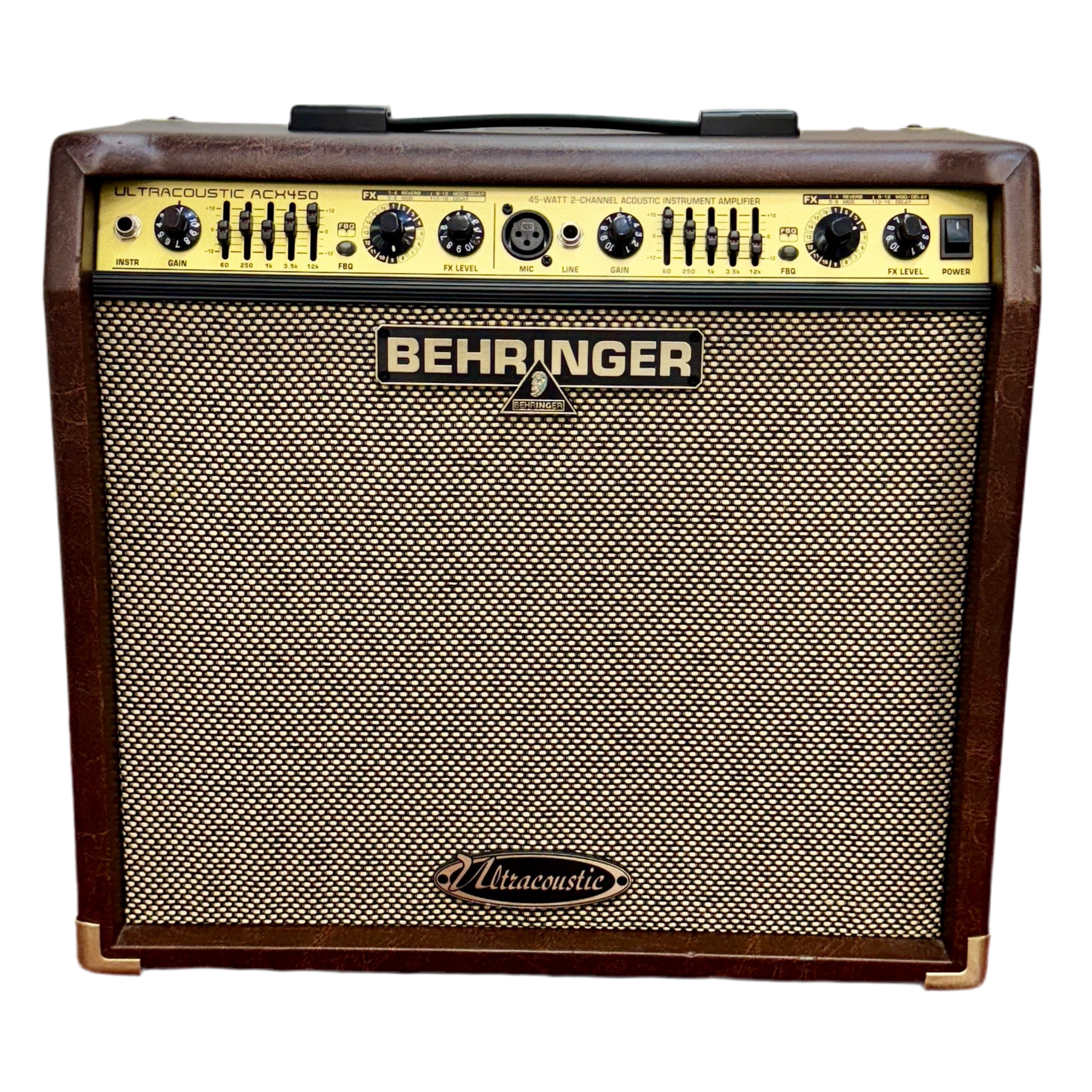 The Behringer Ultracoustic ACX450 is a 2-channel acoustic guitar combo amplifier designed to deliver clear, natural sound with onboard effects and vocal support. Perfect for solo performers, rehearsals, and small gigs, it offers both versatility and value.