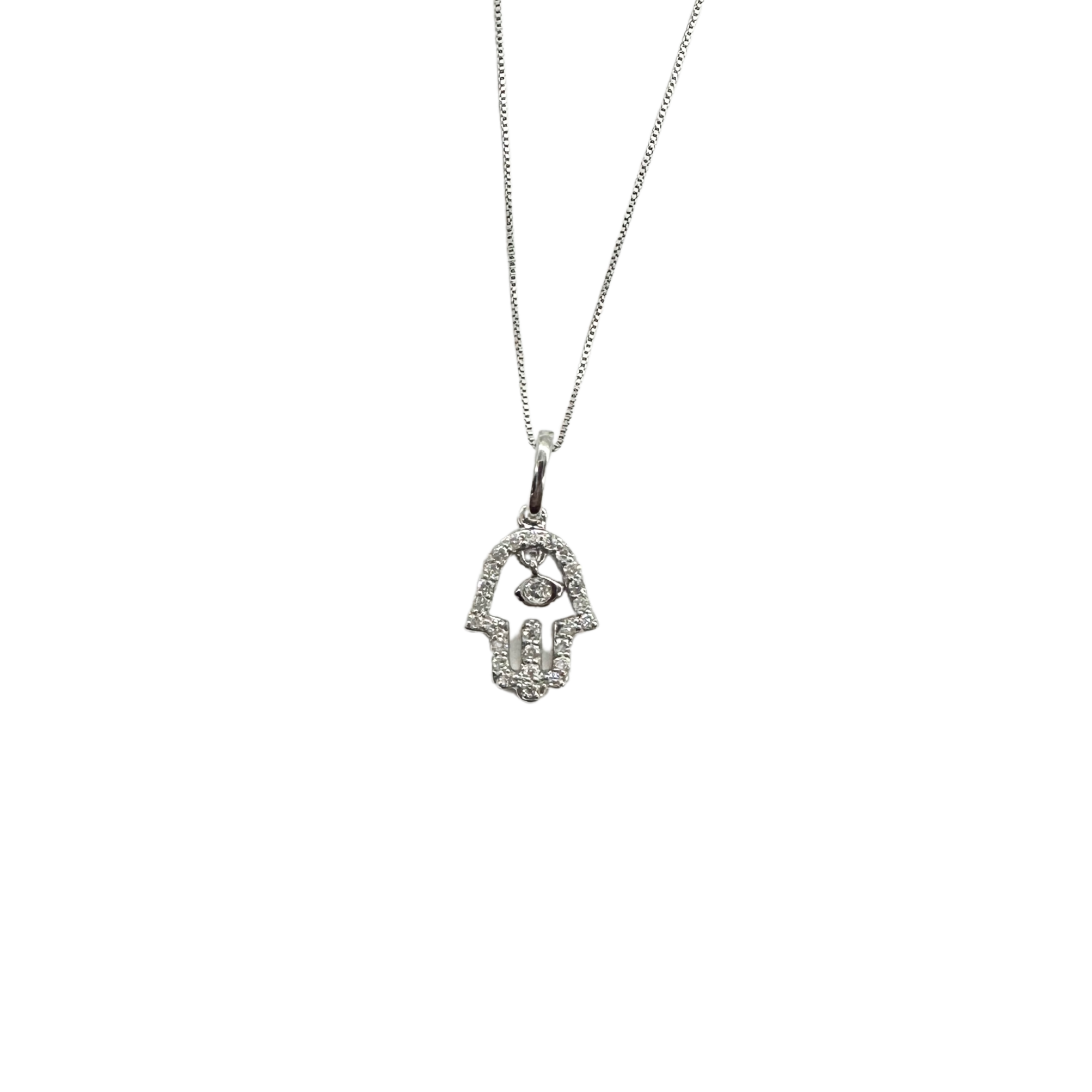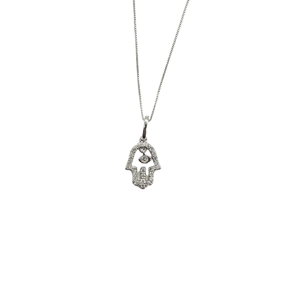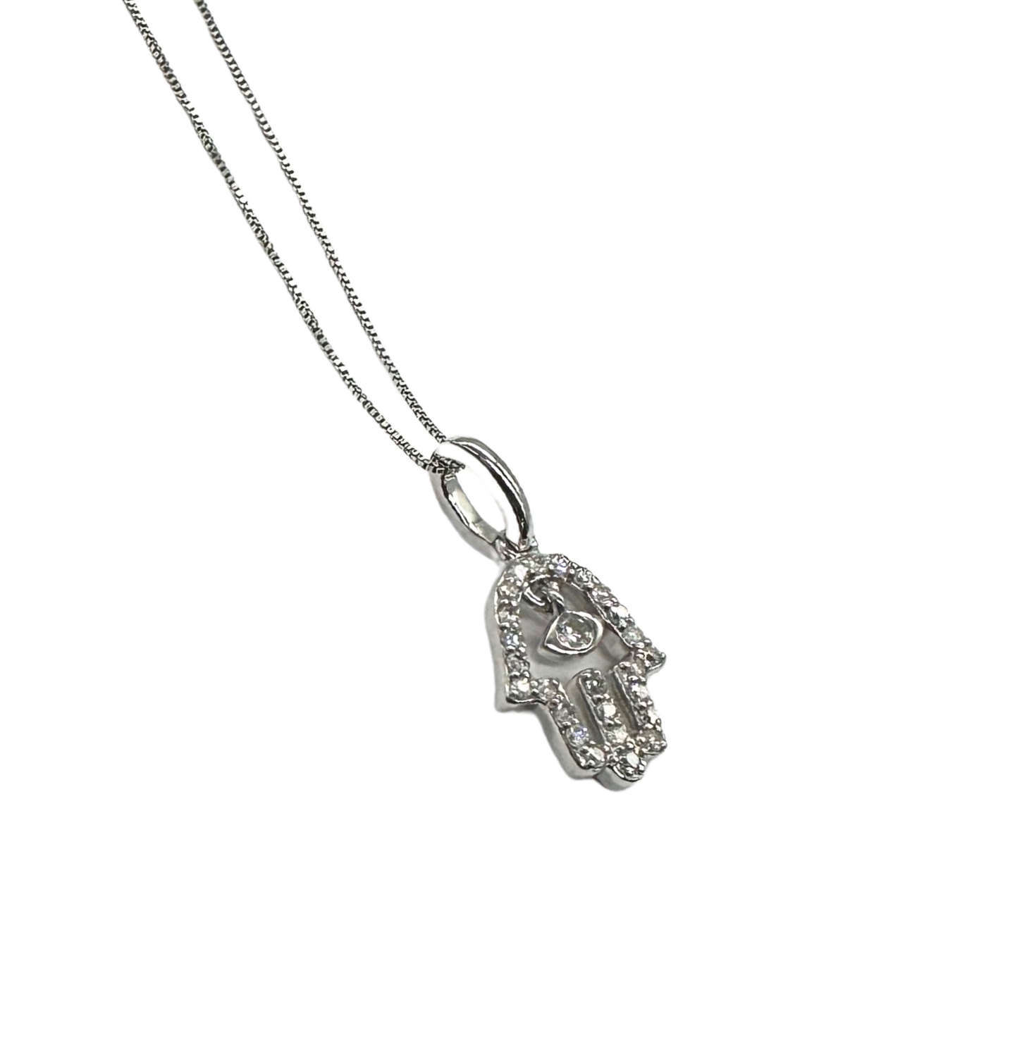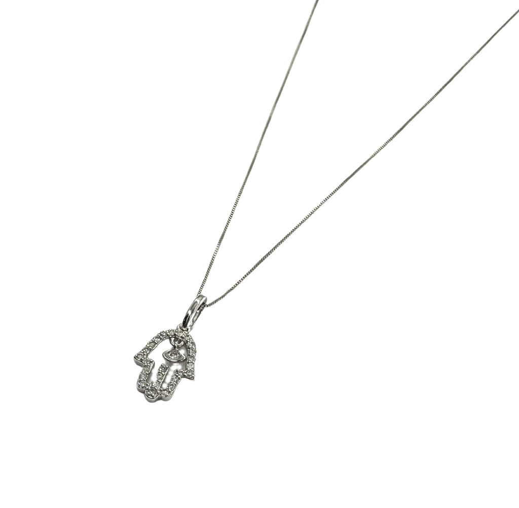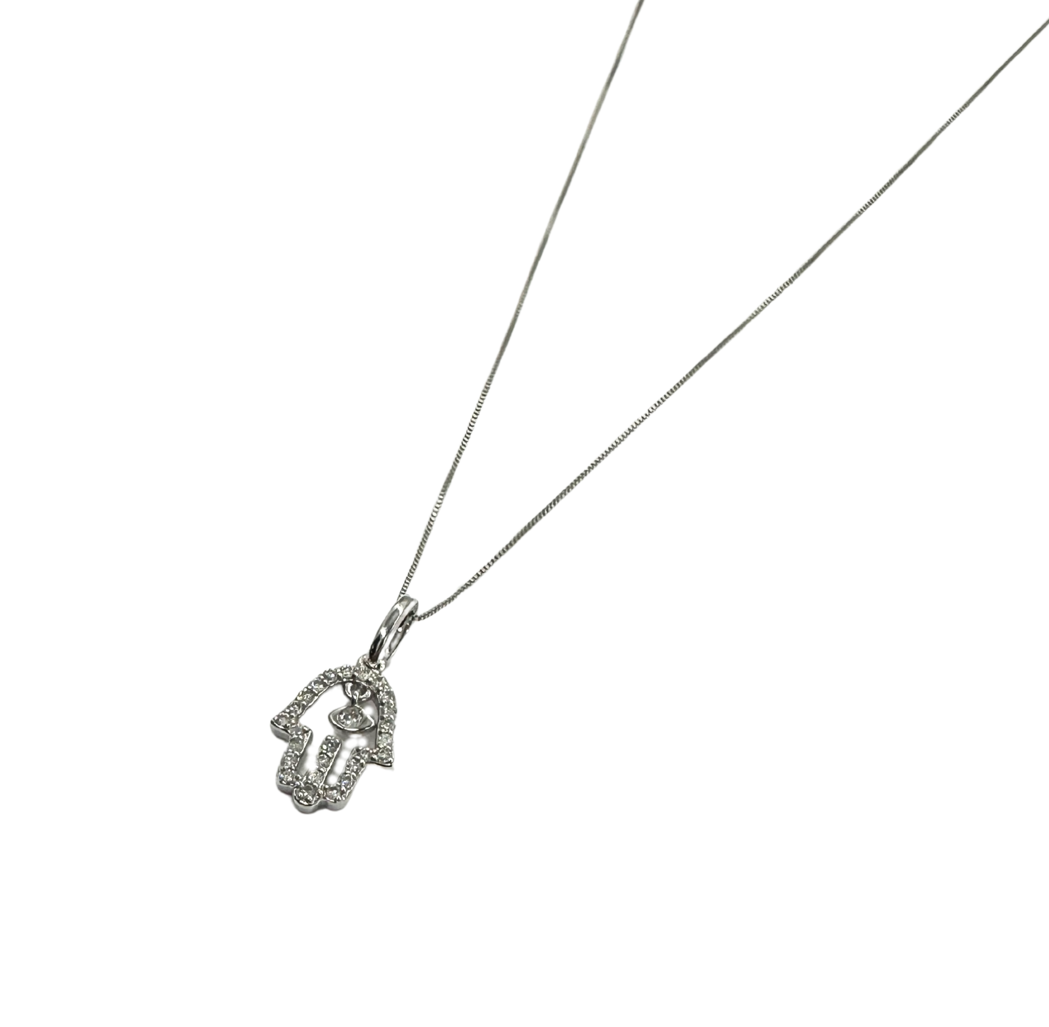 18k White Gold Diamond Hamsa Pendant on 14k Necklace