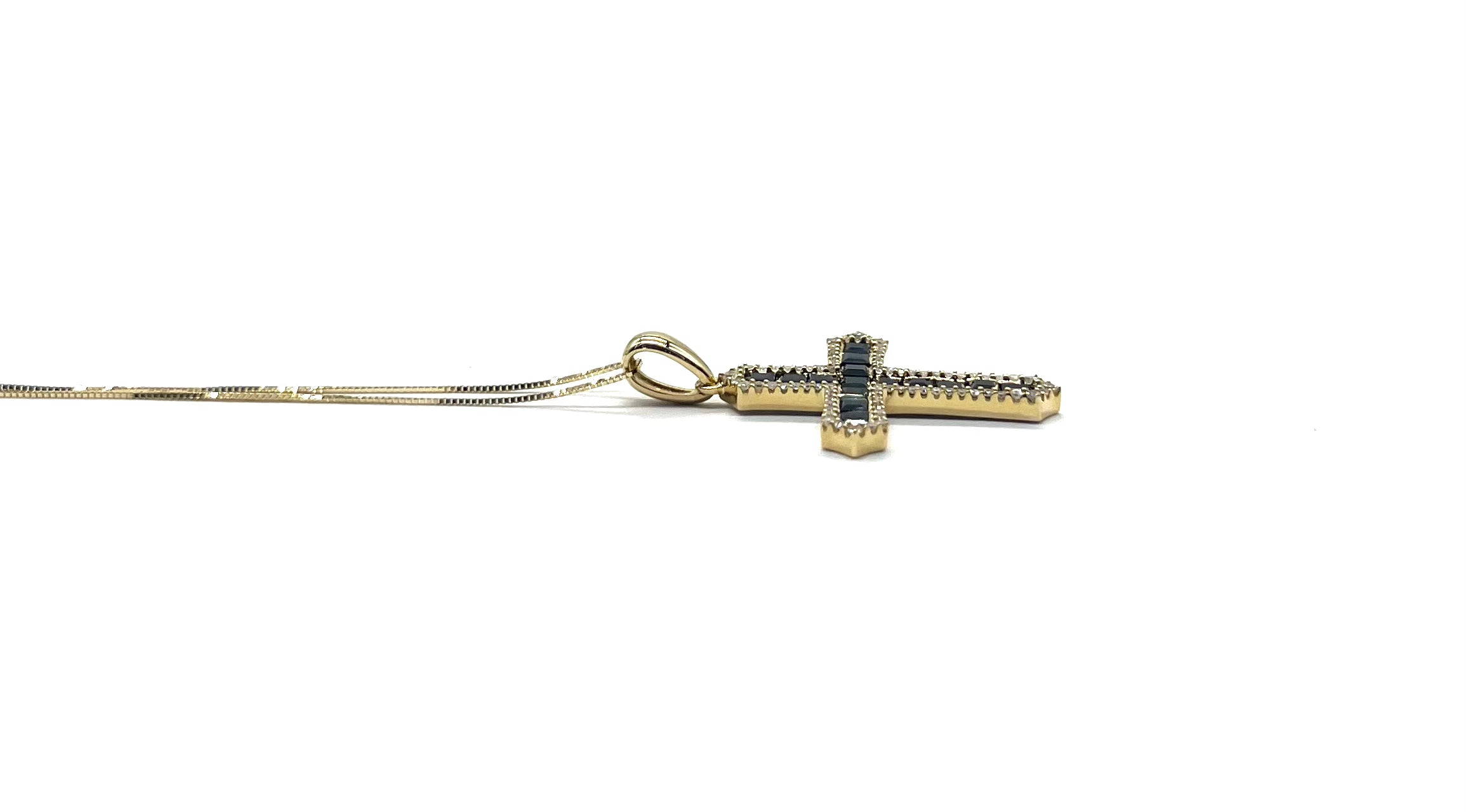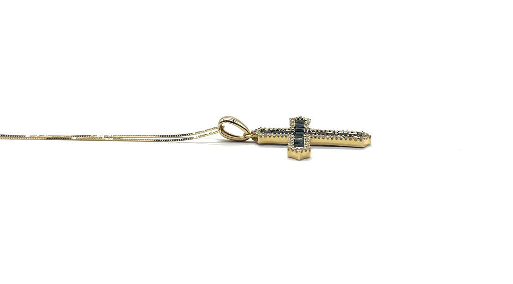 Sapphire and Diamond Cross with Box Chain