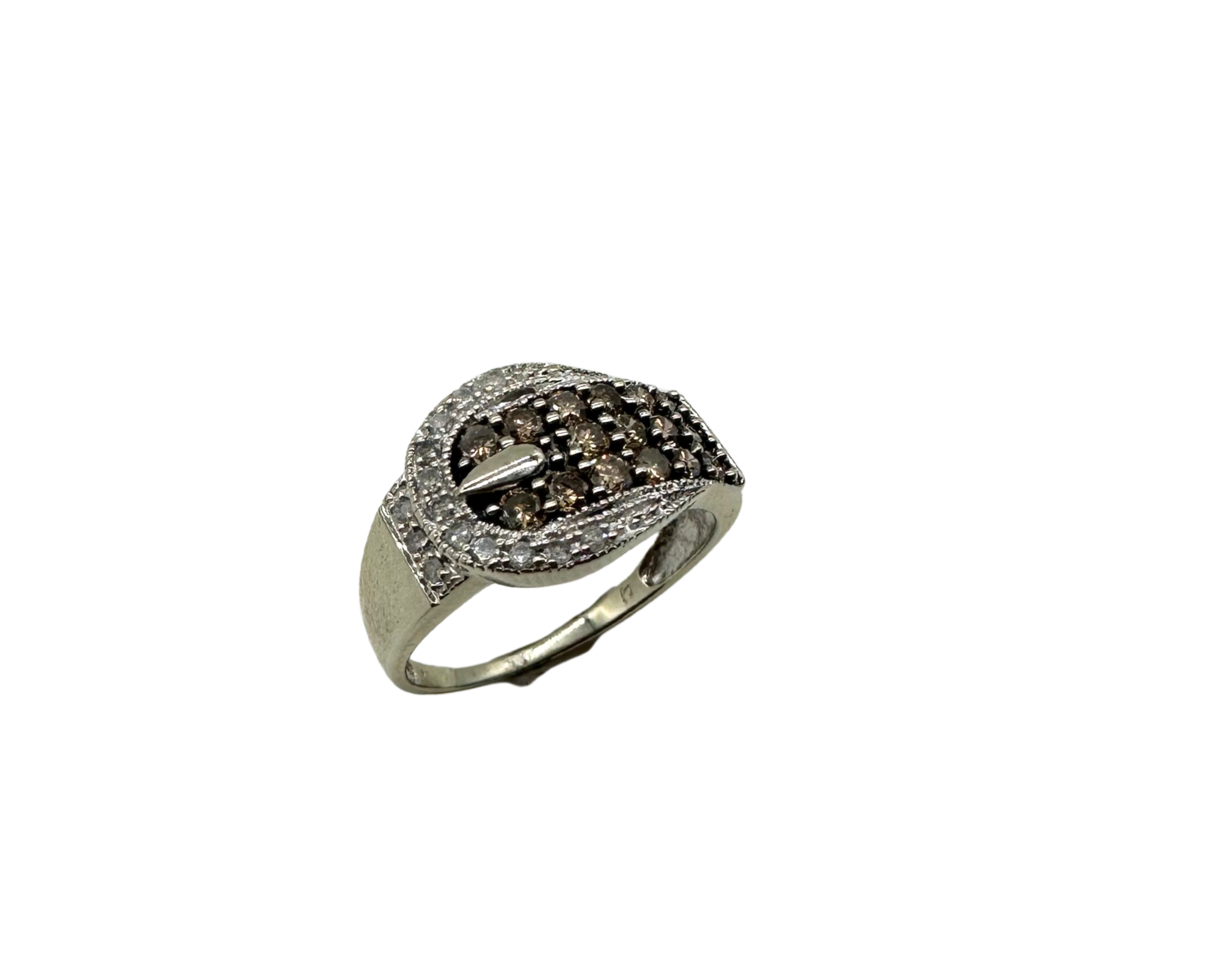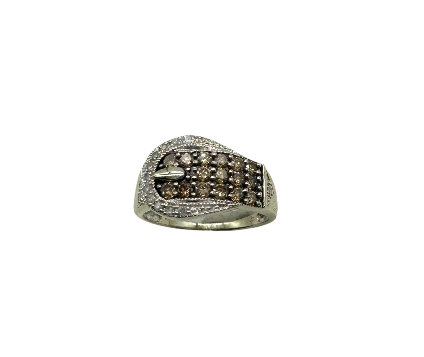 10k White Gold Chocolate & White Diamond Buckle Ring
