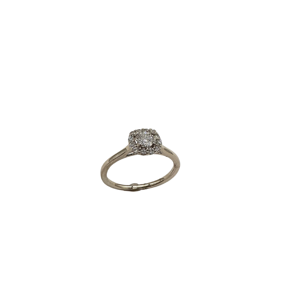 14k White Gold 1/2 CTW Cushion Halo Cluster Ring