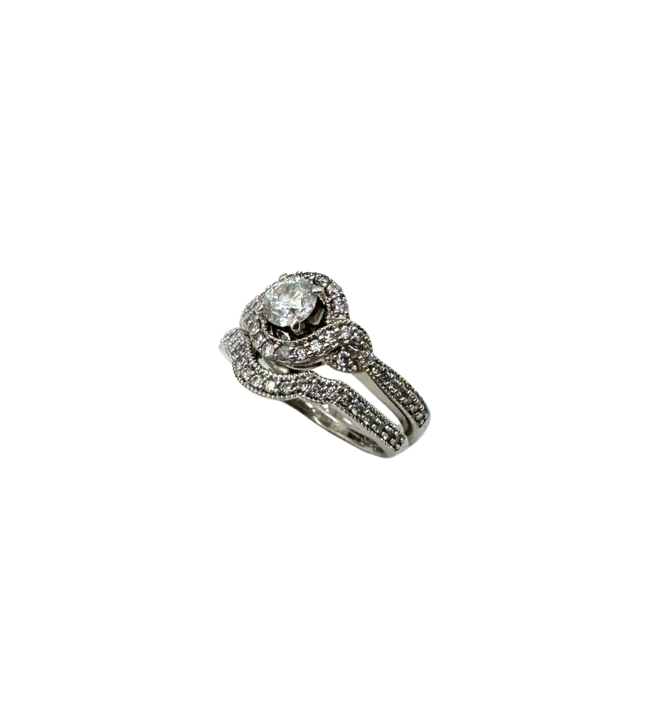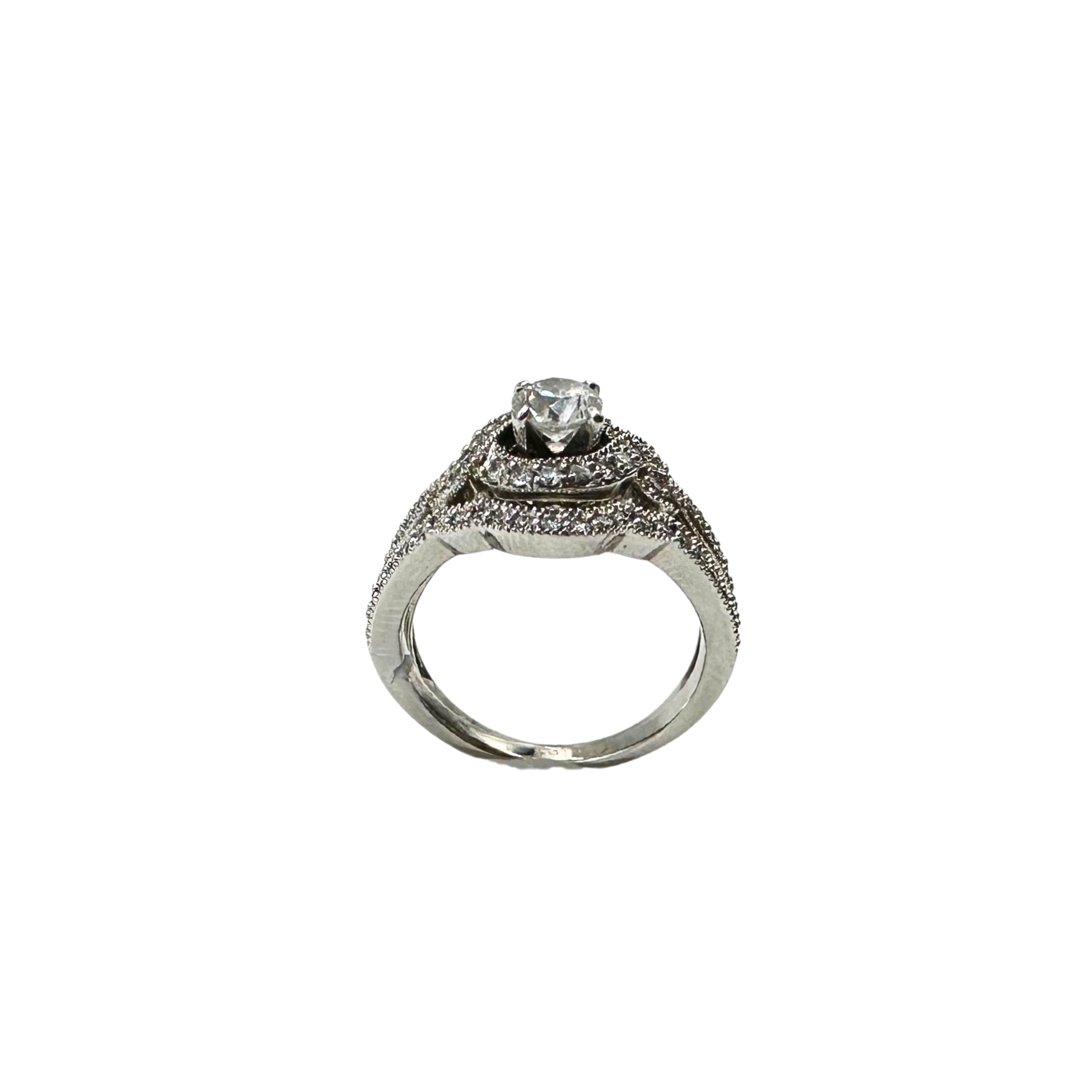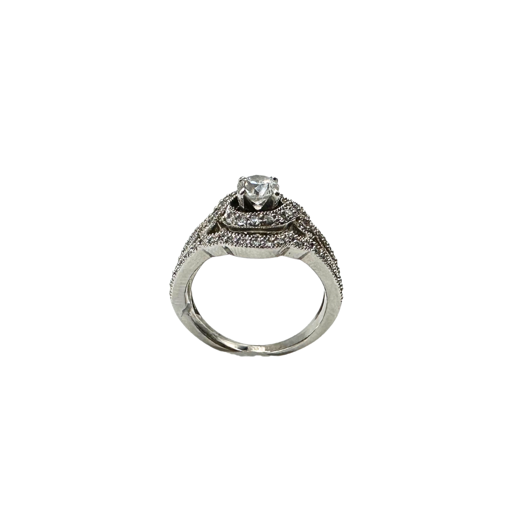 14k White Gold 1 ctw Diamond Halo Wedding Set – Size 5.5