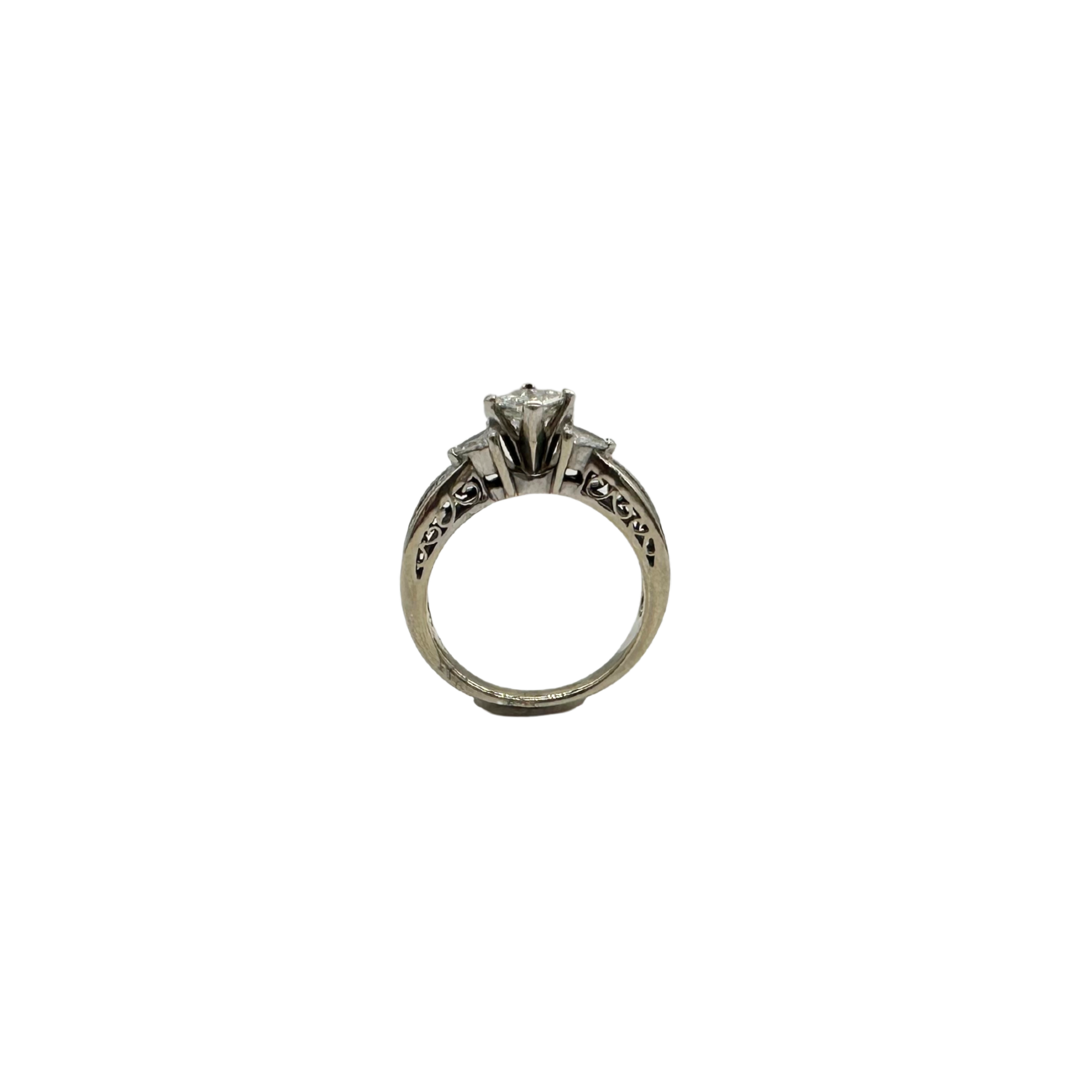 14K White Gold Diamond Ring with Trillion & Baguette Accents – 1 CTW