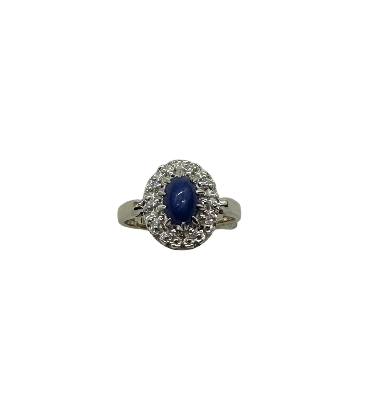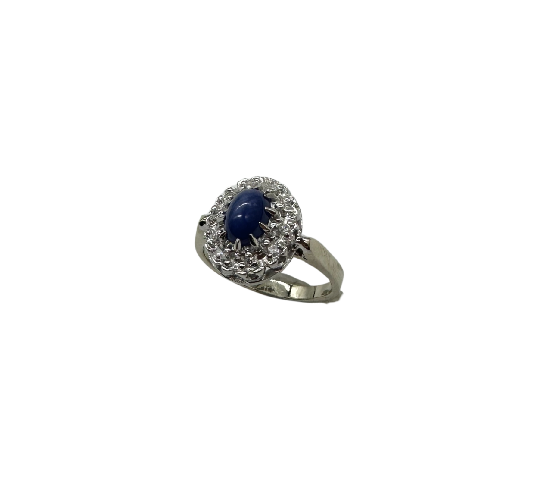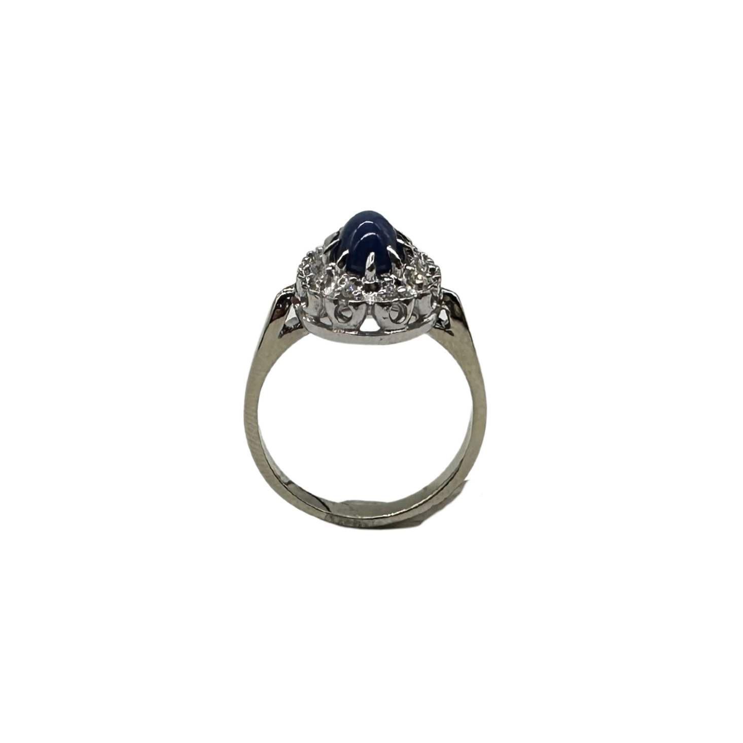 14k White Gold Star Sapphire Ring with Diamond Accents