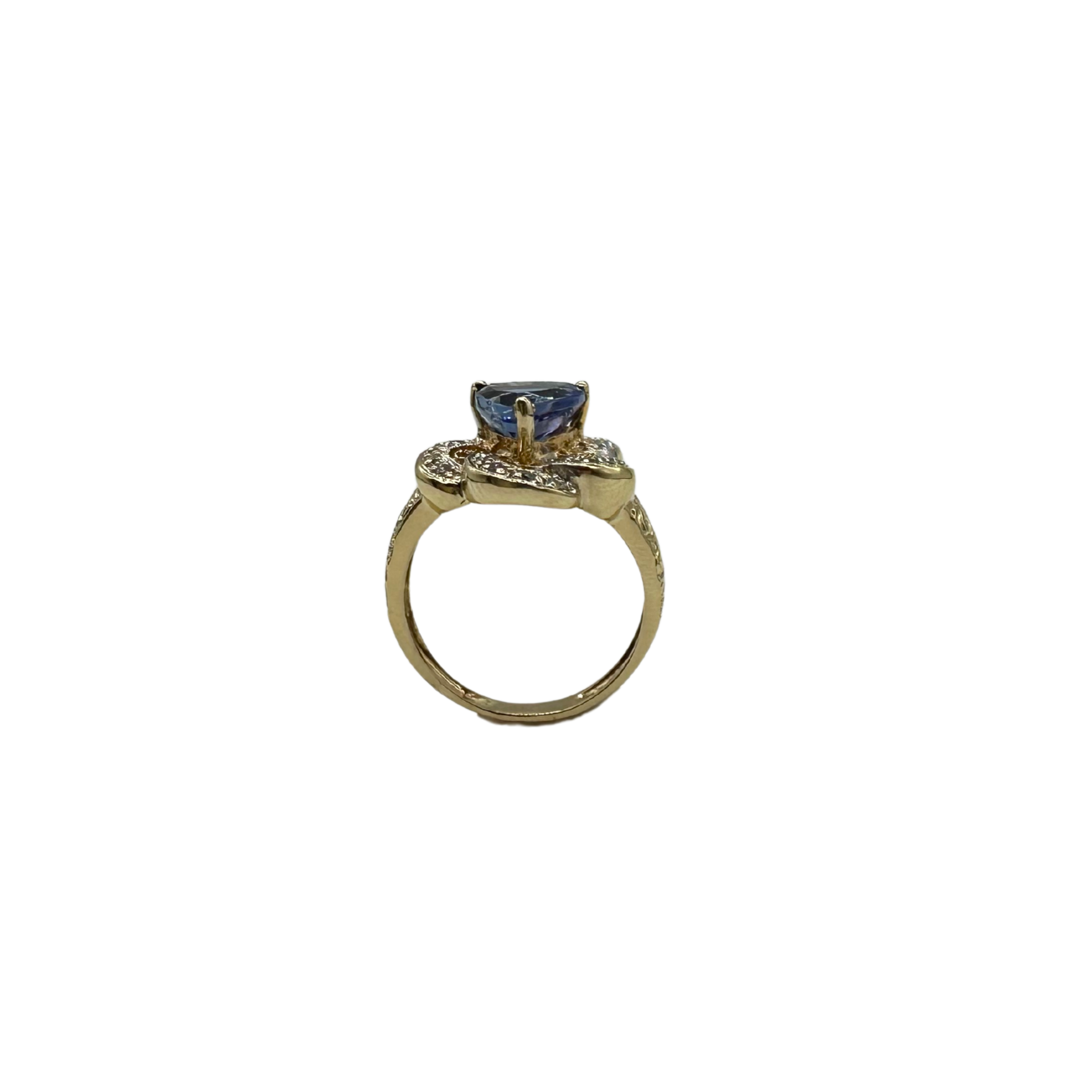 14k Yellow and White Gold Tanzanite and 1/4 CTW Diamond Flower Halo Ring