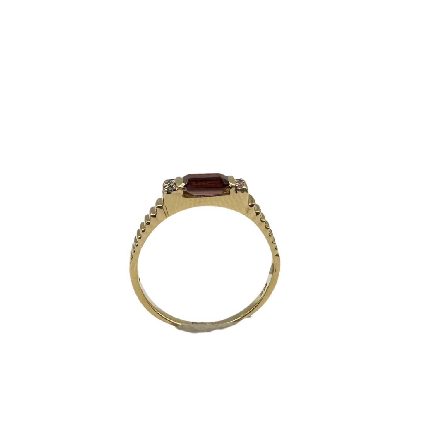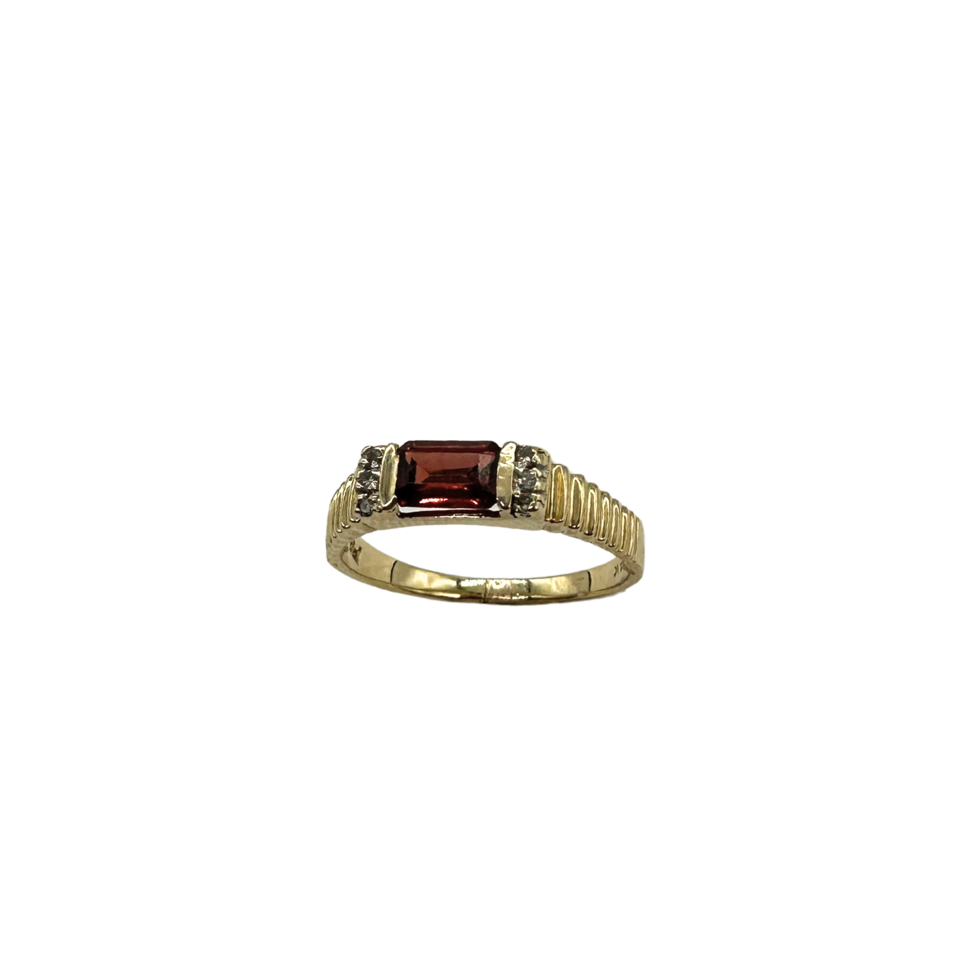 14k Yellow Gold Garnet and Diamond Accent Ribbed Ring