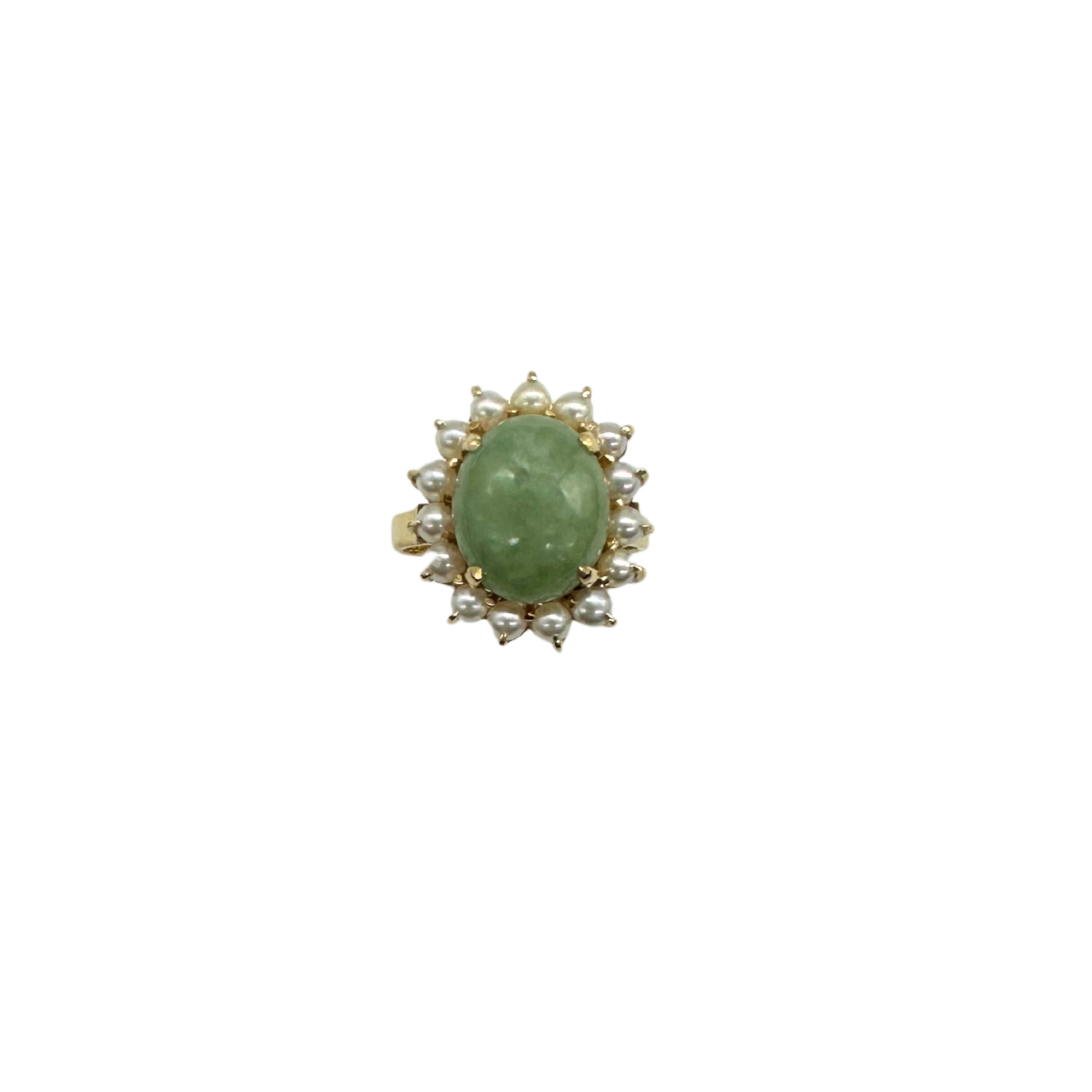 14k Yellow Gold Jade & Pearl Halo Ring