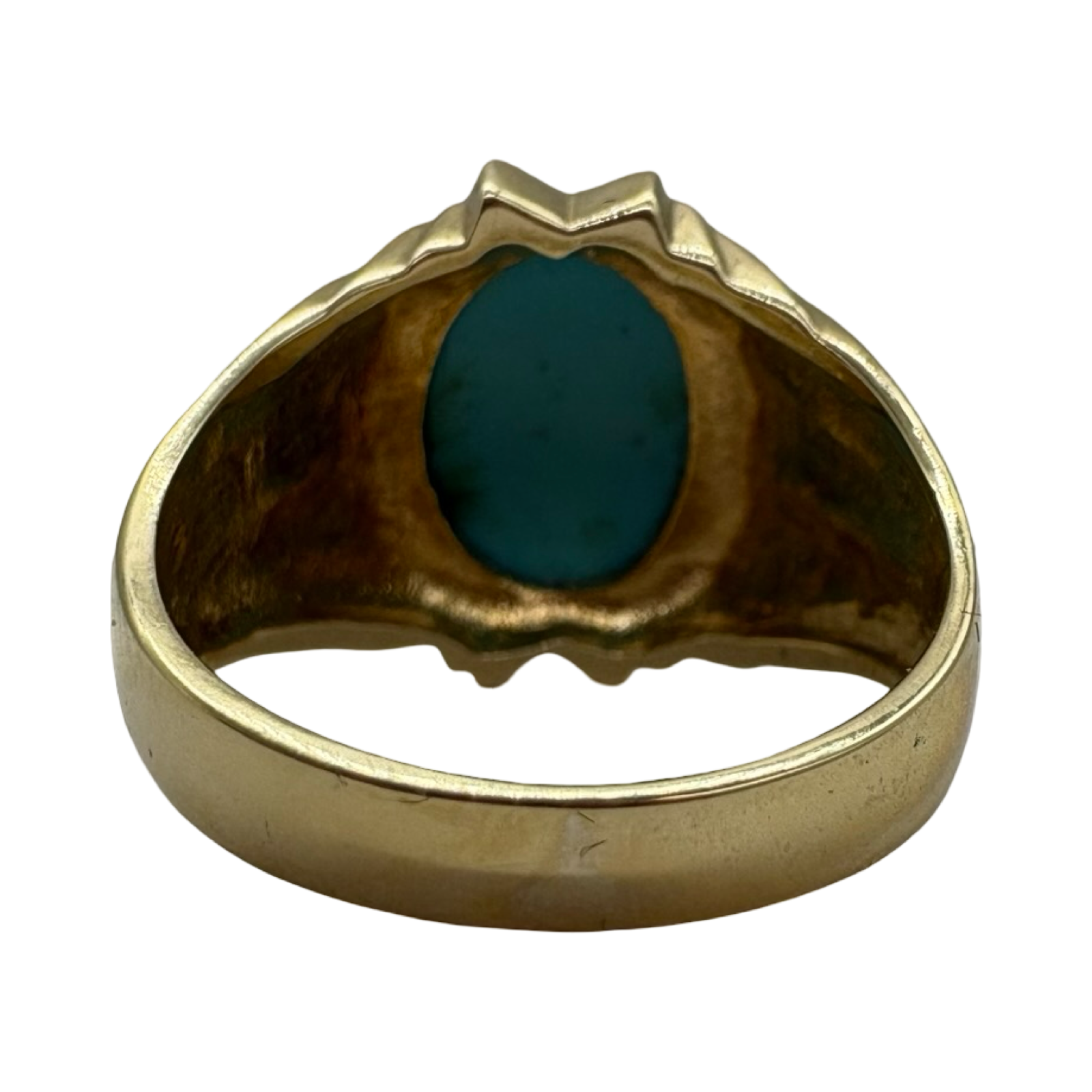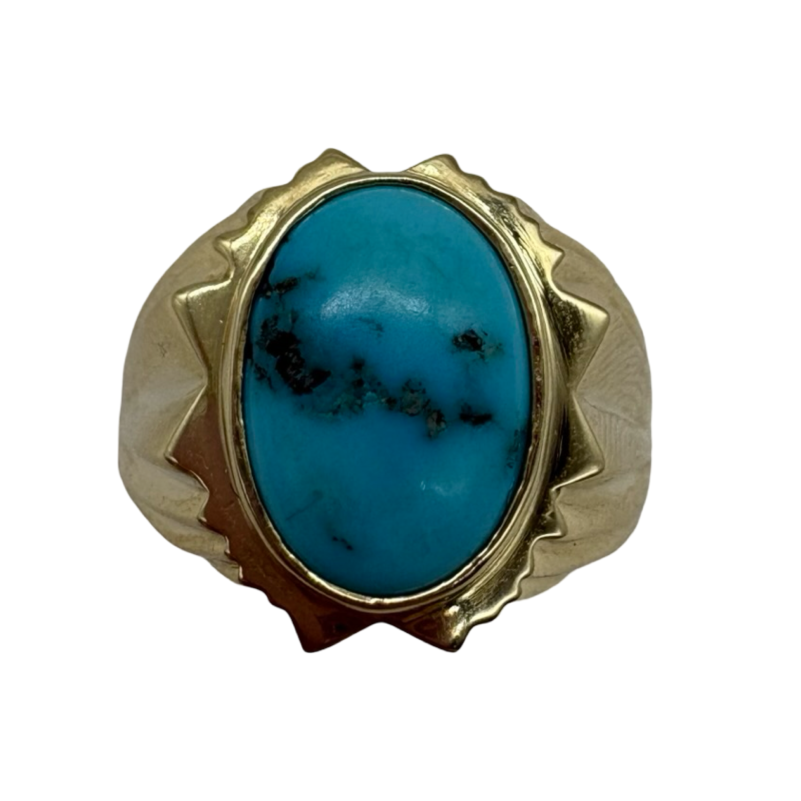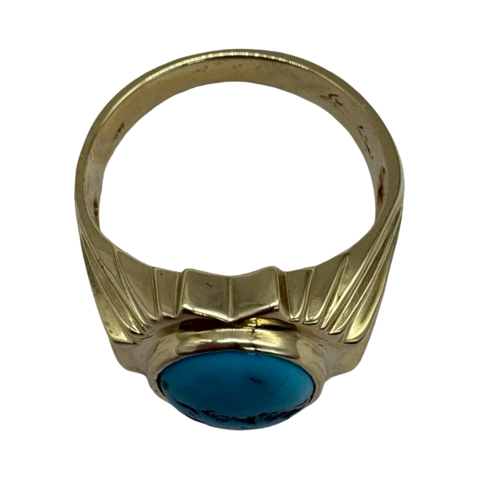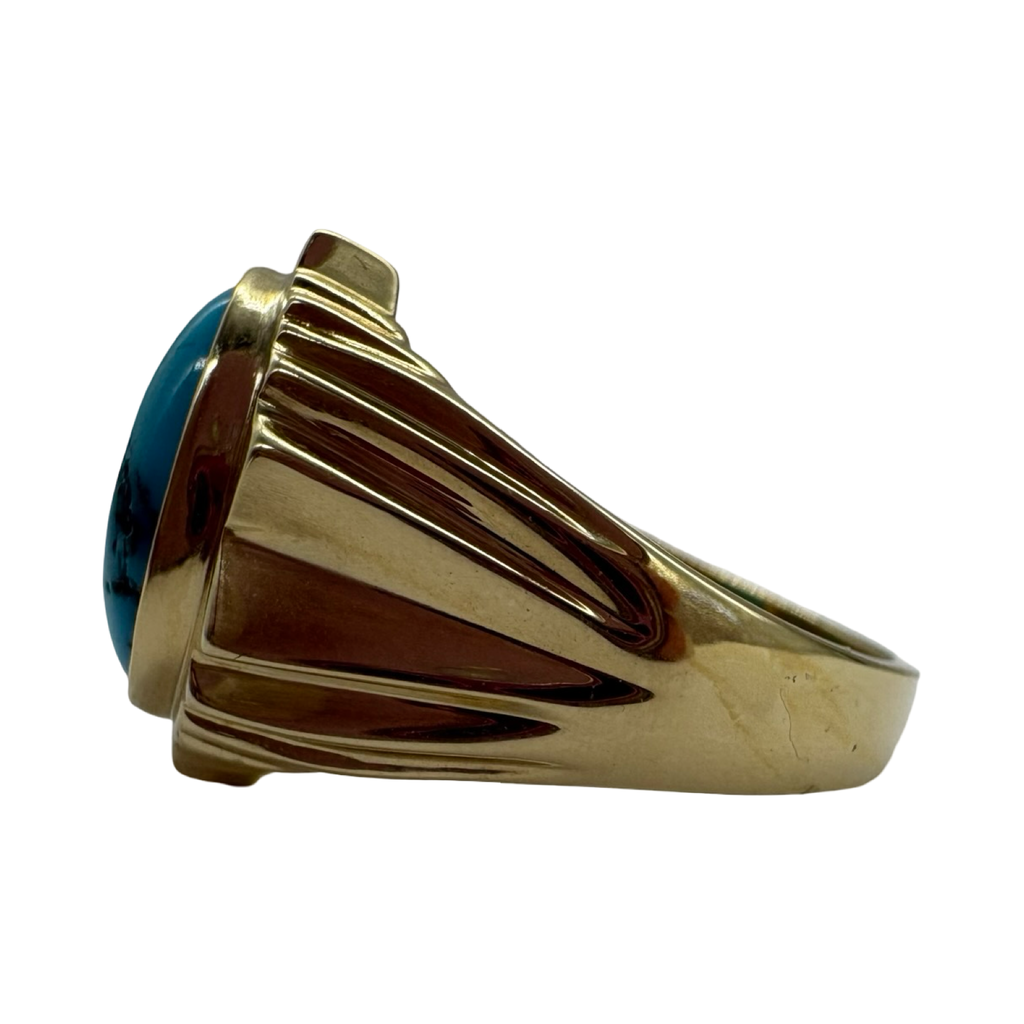 14K Yellow Gold Turquoise Framed Ribbed Ring