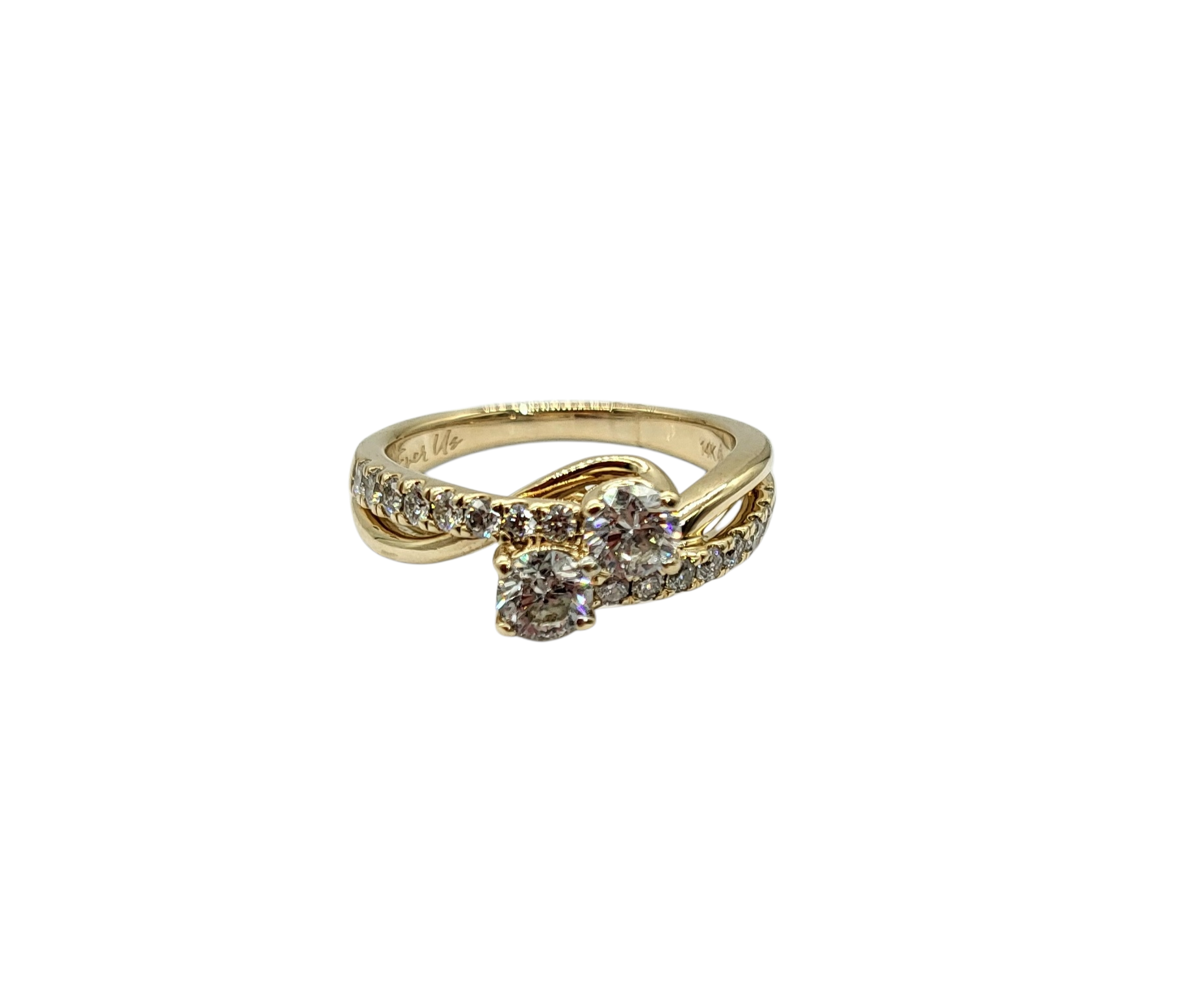 This Together Forever 1 carat diamond ring is the perfect symbol of your love and dedication. Crafted in 14 karat yellow gold, its bypass design features a total of 2 rows of natural, sparkling diamonds totaling 1 carat in weight. Show your commitment to each other with this stunning and meaningful ring.