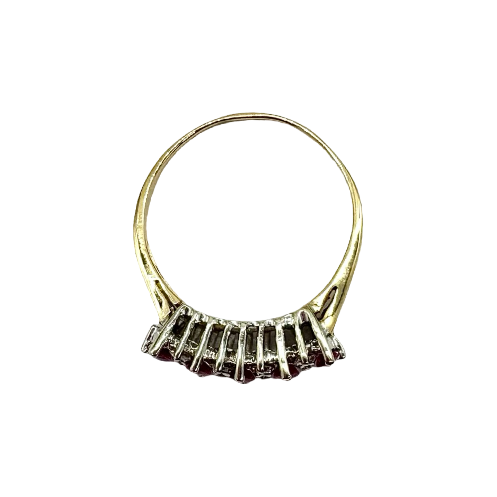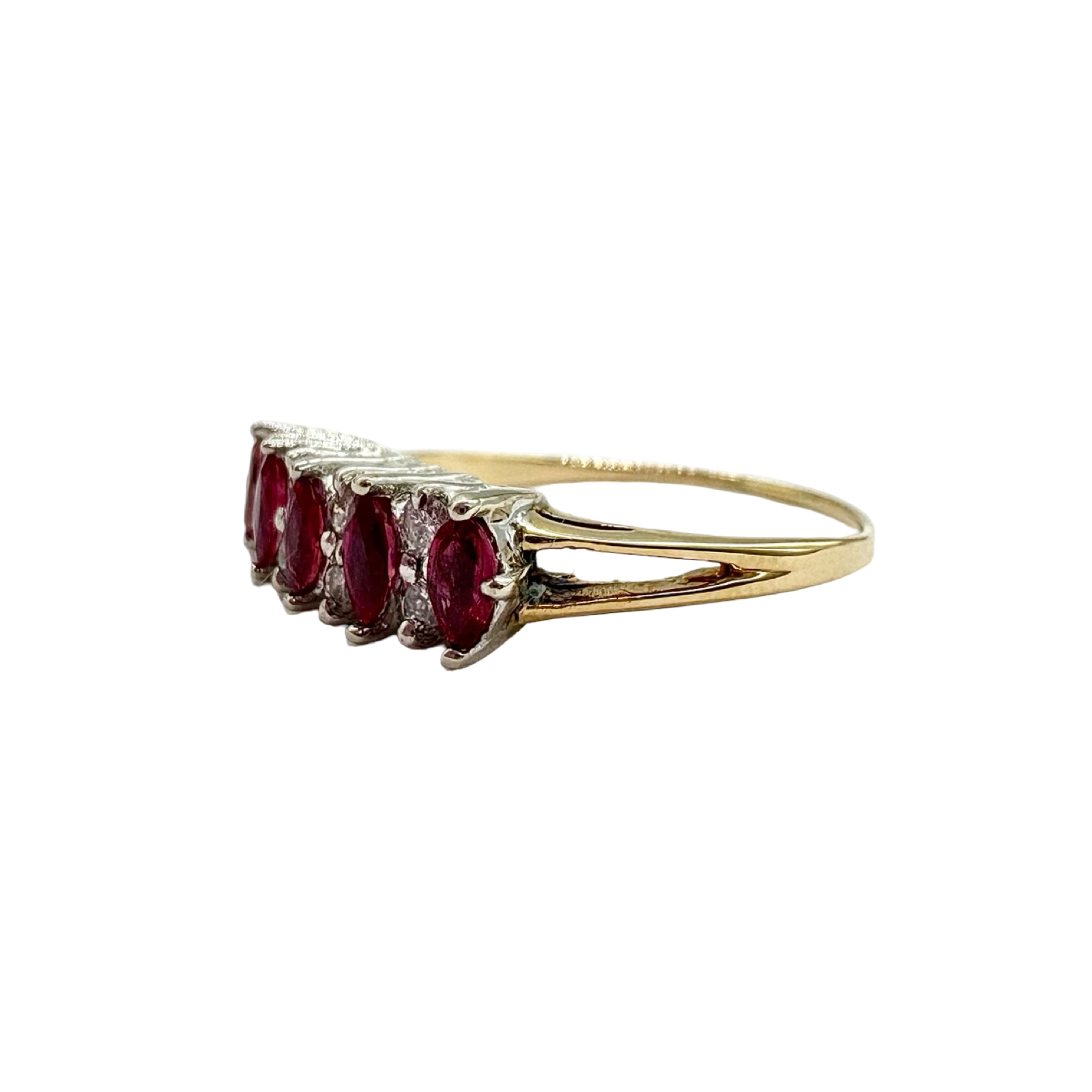 14K Yellow and White Gold 15PTW Diamond Ruby Marquise Split Ring