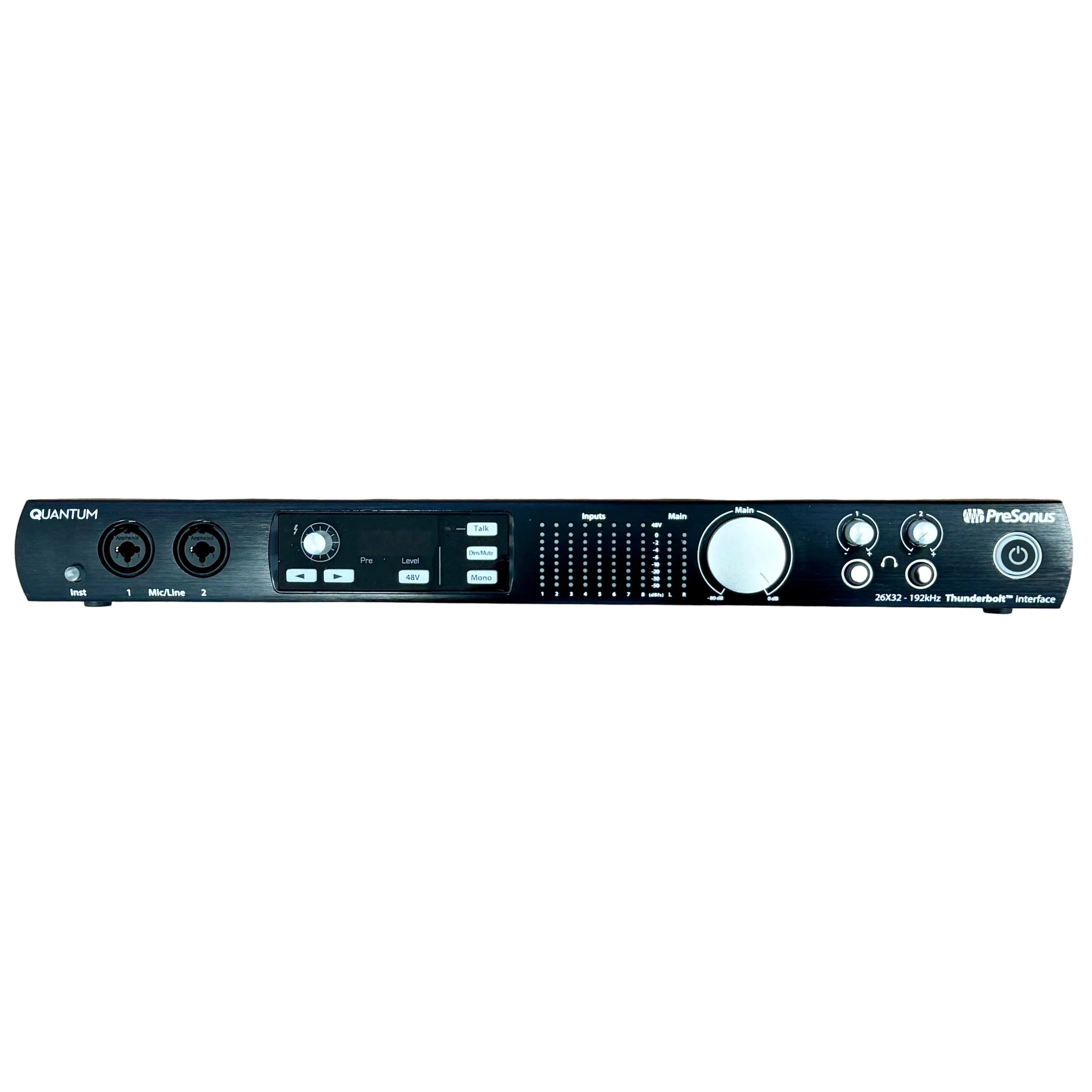 The PreSonus QUANTUM 26 x 32 Thunderbolt Audio Interface is a professional-grade recording solution designed for musicians, producers, and audio engineers who demand high-throughput performance, ultra-low latency, and studio-quality sound. Featuring a robust I/O count, Thunderbolt connectivity, and pristine preamps, this interface delivers clear, detailed audio for tracking, mixing, and multimedia production — making it ideal for home studios, professional setups, and creative workflows where reliability and sonic fidelity matter.