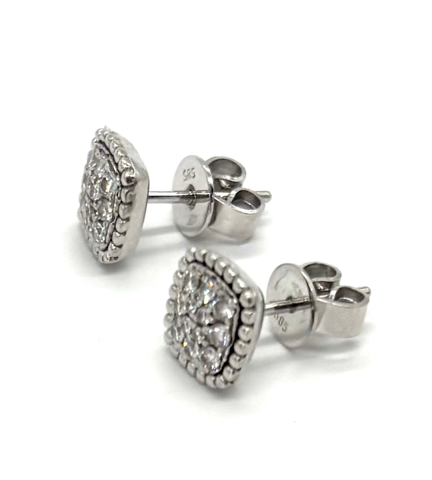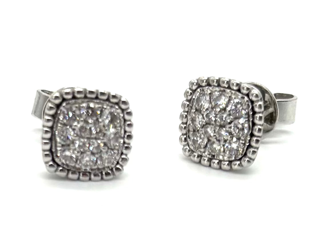 Pre-Owned 14k White Gold Framed Cluster Stud Earrings