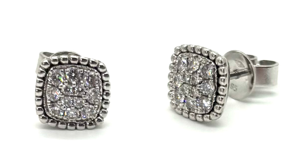 1/2CTW Diamond Framed Cluster Stud Earrings- 14K White Gold