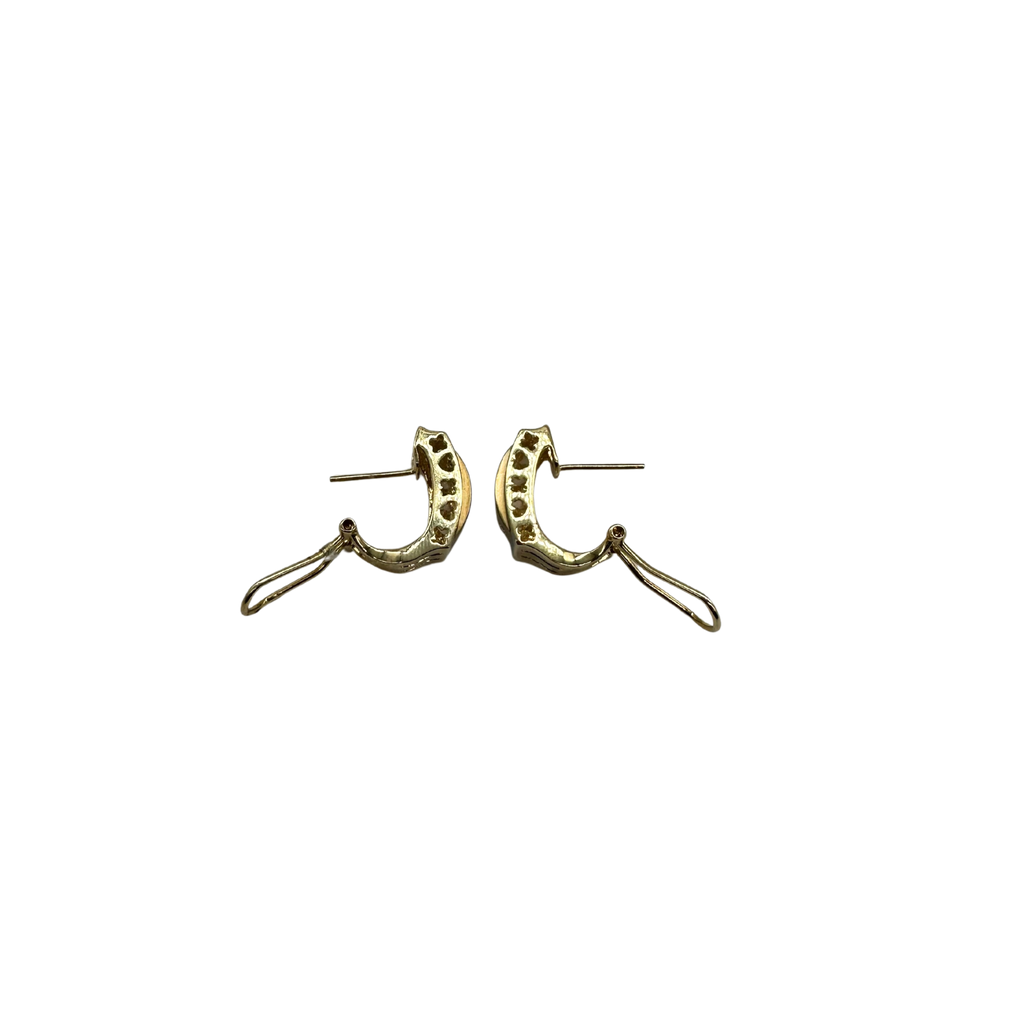 14k Yellow and White Gold 1/3 CTW Flush Omega Diamond Earrings