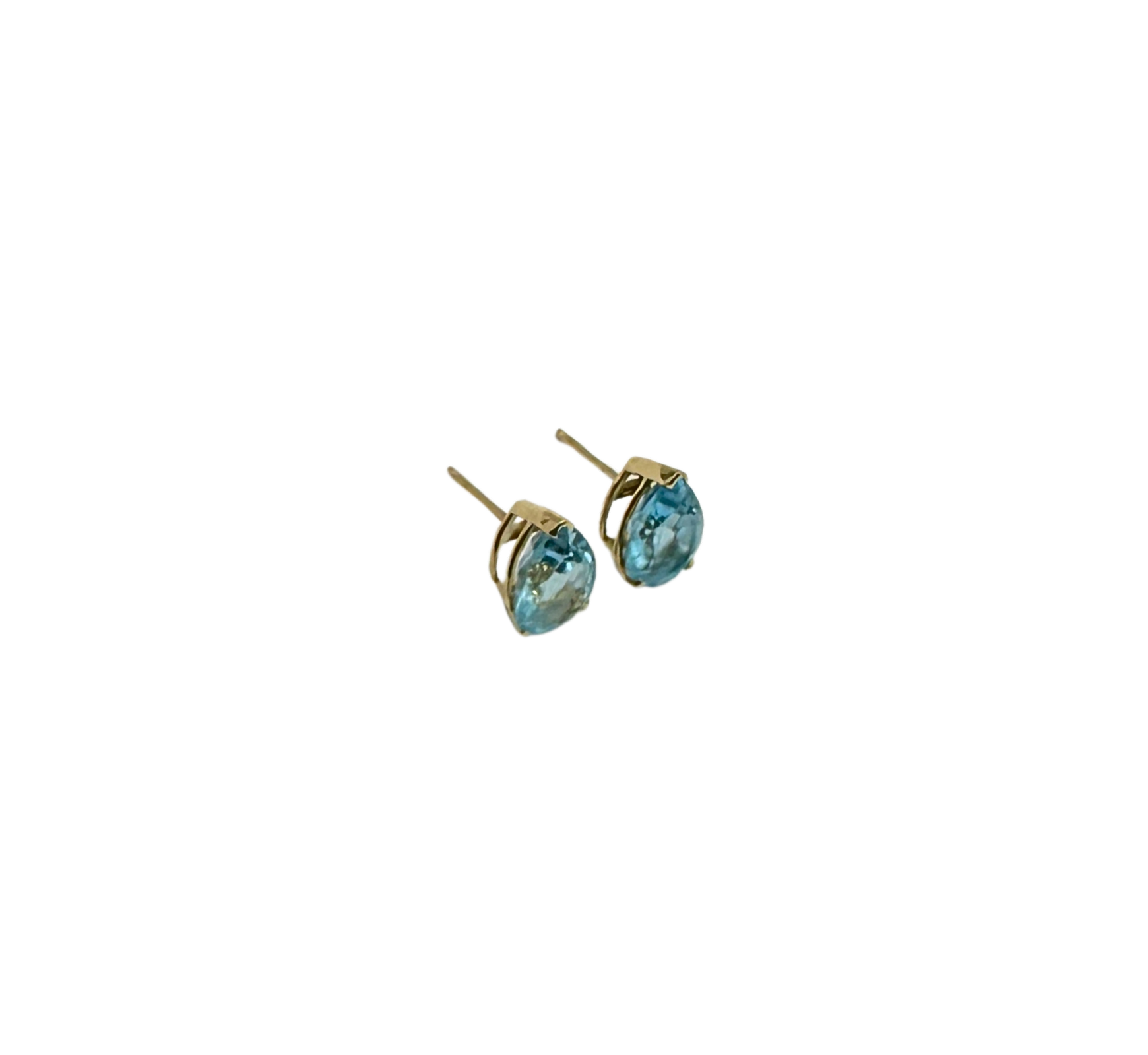 A beautiful pair of 14k yellow gold stud earrings featuring pear-shaped aquamarine stones held securely in classic 3-prong settings. Lightweight and elegant, perfect for daily wear or special occasions.