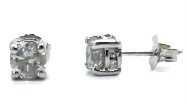 Elevate your everyday look with these timeless pre-owned 14K white gold diamond stud earrings. Featuring a total of 1CTW natural round diamonds, each stone is set in a classic 4-prong basket setting that maximizes brilliance and security.