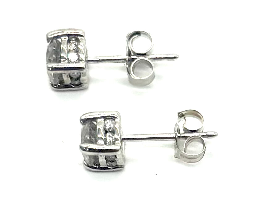 1CTW Diamond 4 Prong Basket Stud Earrings- 14K White Gold