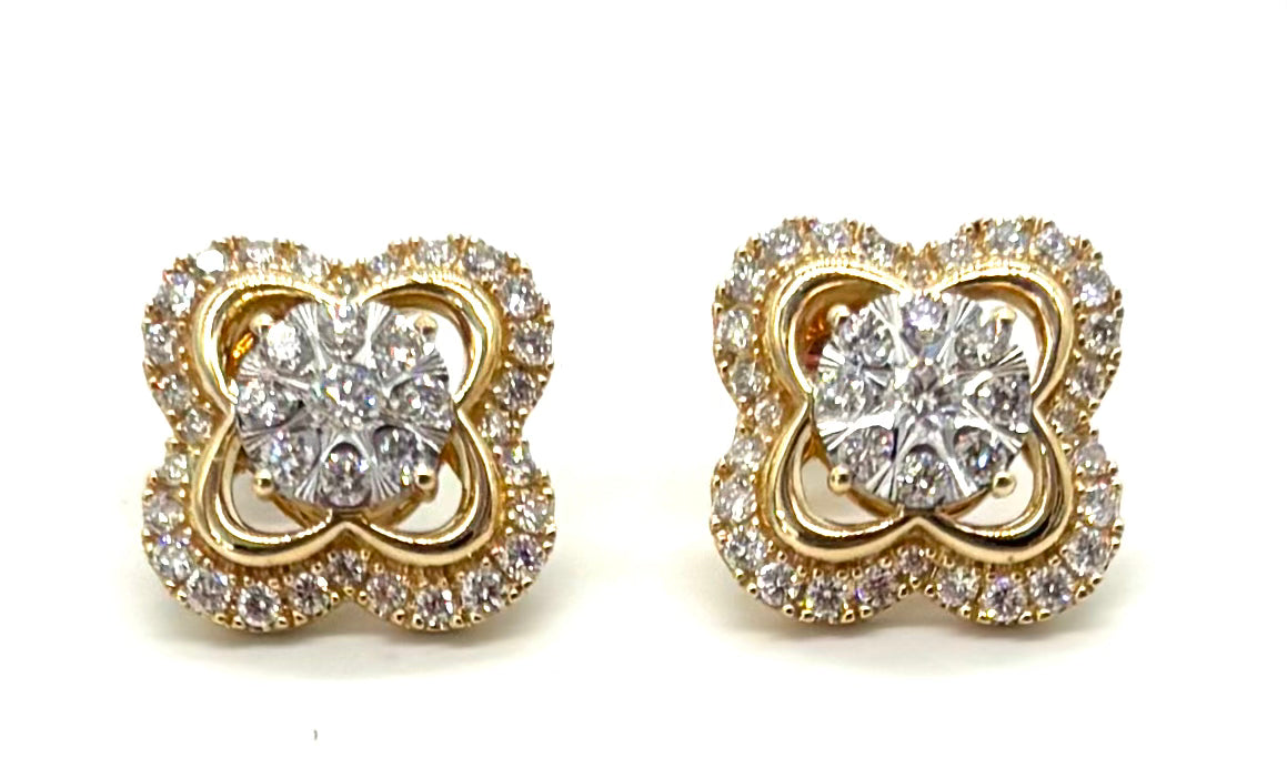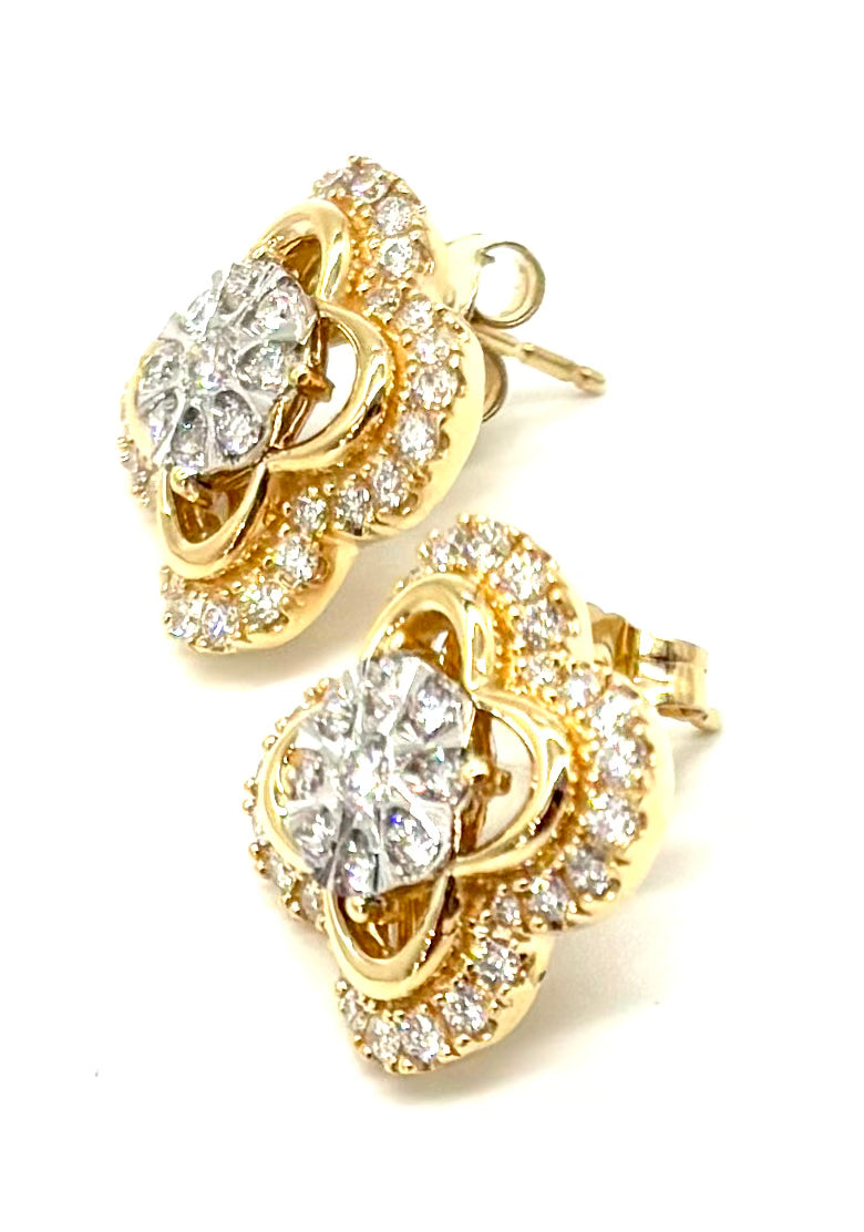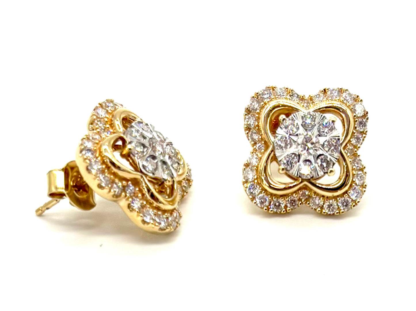 1CTW Diamond Clover Stud Earrings- 14K Yellow & White Gold