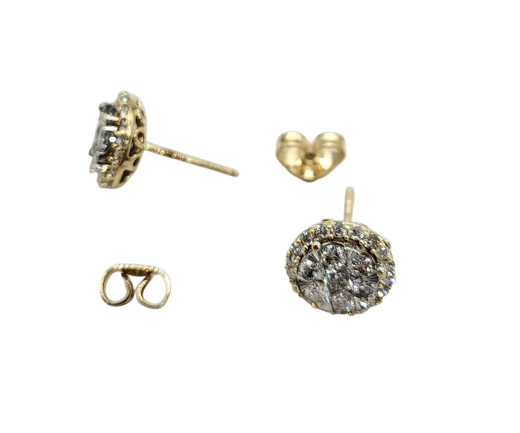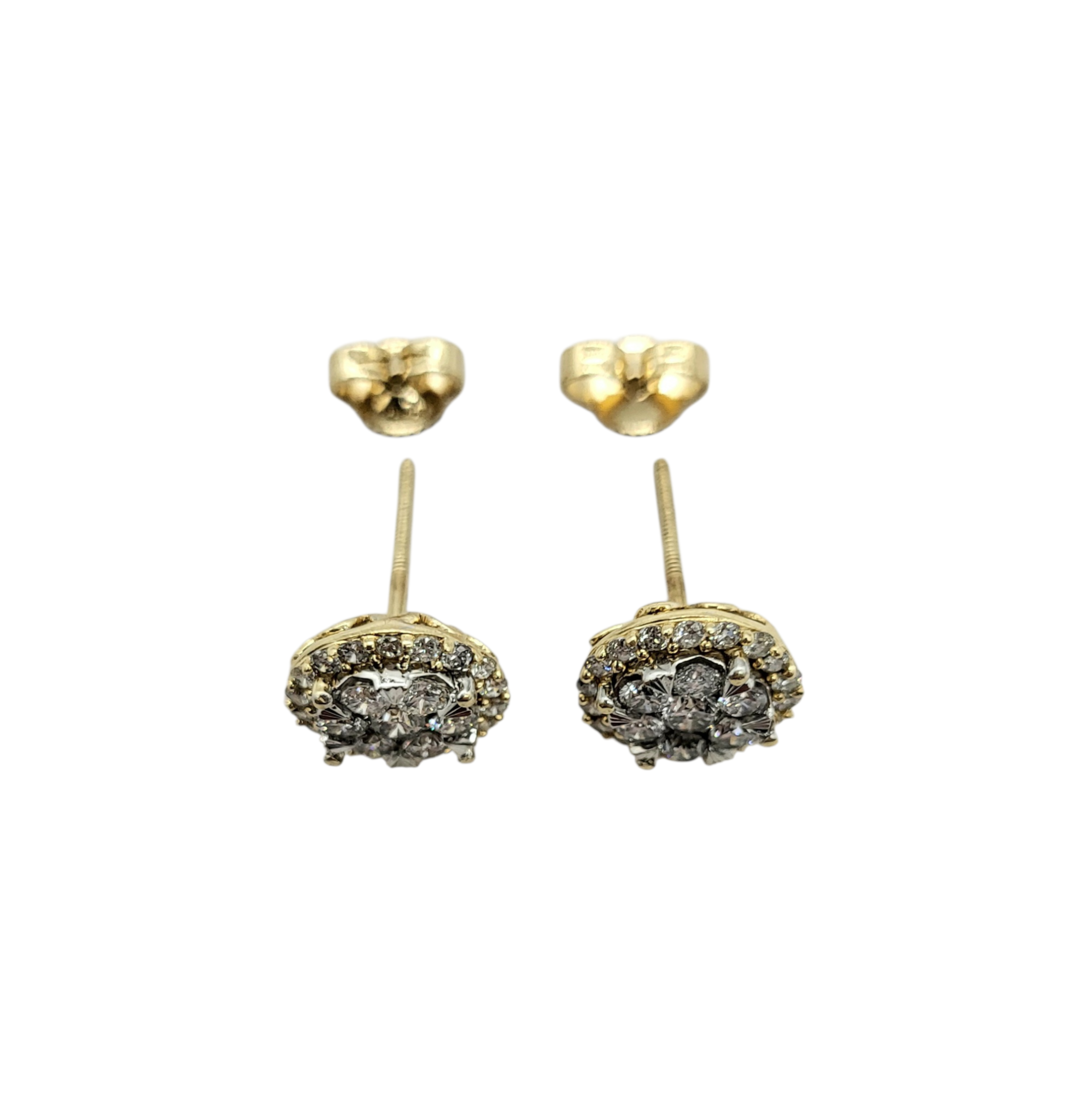 14K Yellow/White Gold 1 Carat Total Weight Diamond Cluster Stud Earrings