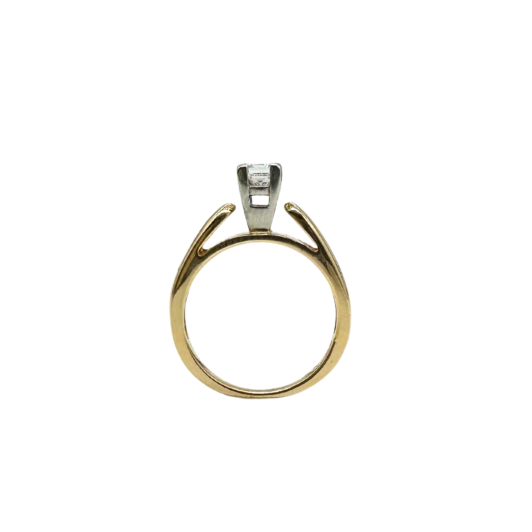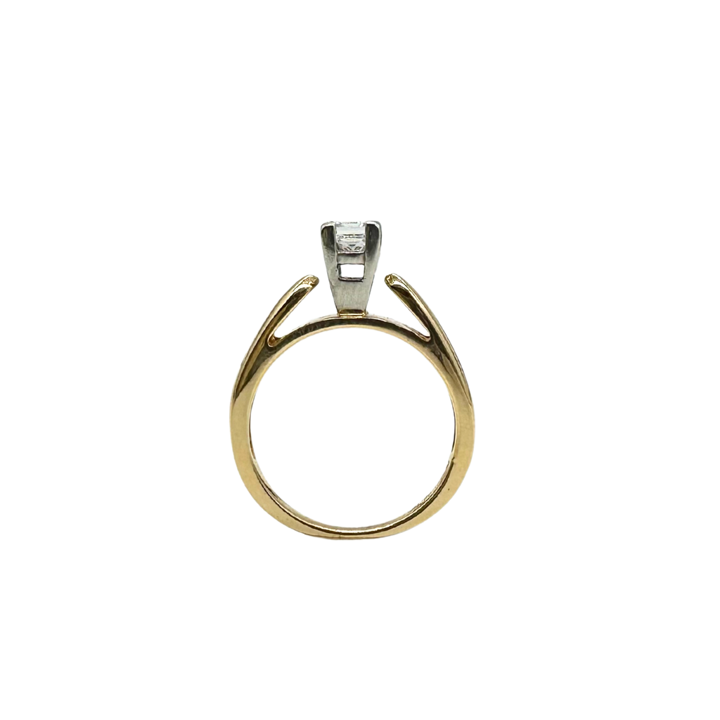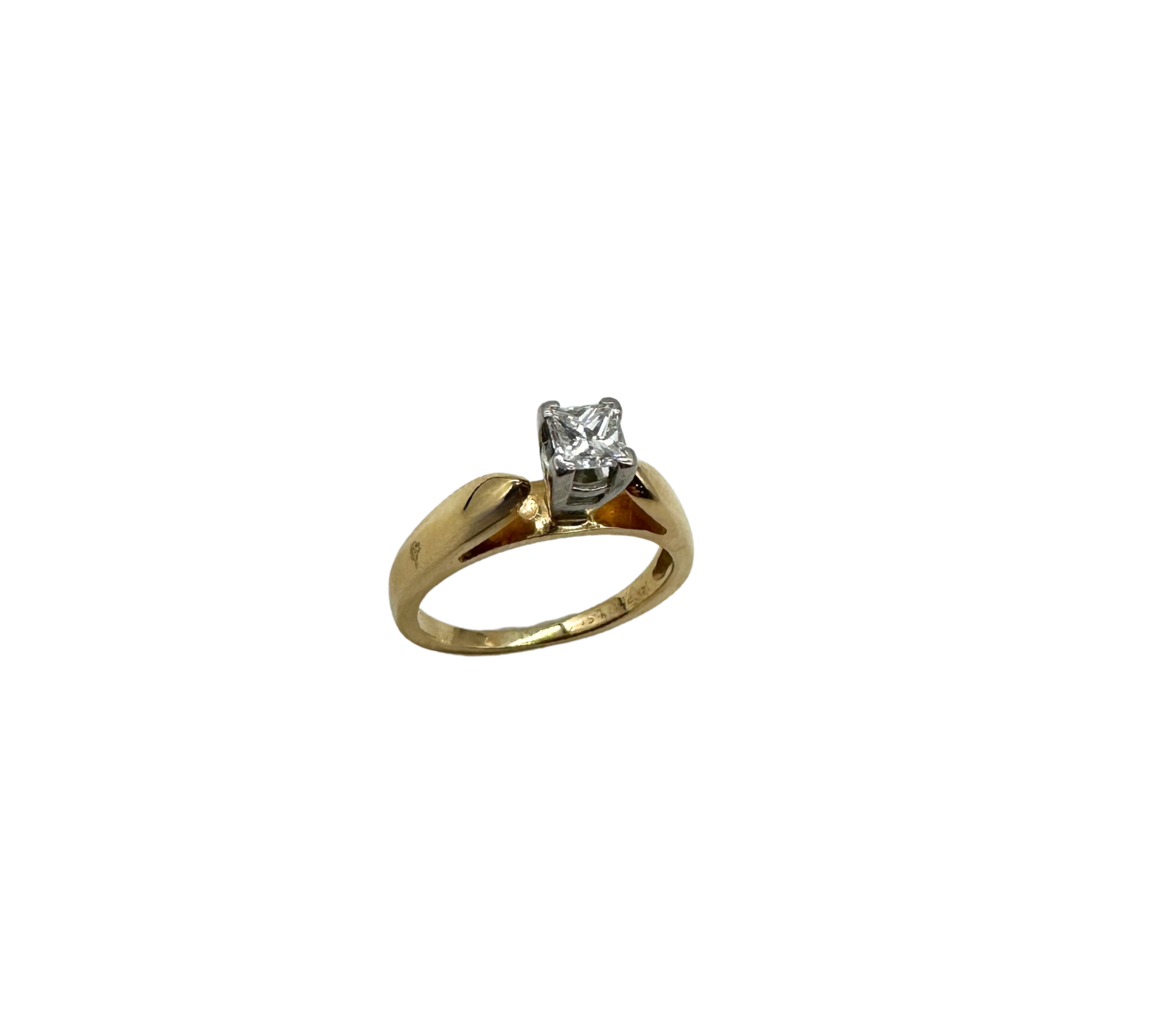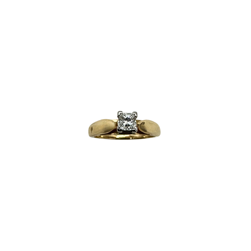 Sleek and classic, this cathedral-style engagement ring features a striking 0.40ct princess-cut diamond set in 14k yellow gold. The high-profile setting allows the brilliant diamond to take center stage, elevated beautifully between sweeping shoulders that enhance its silhouette.