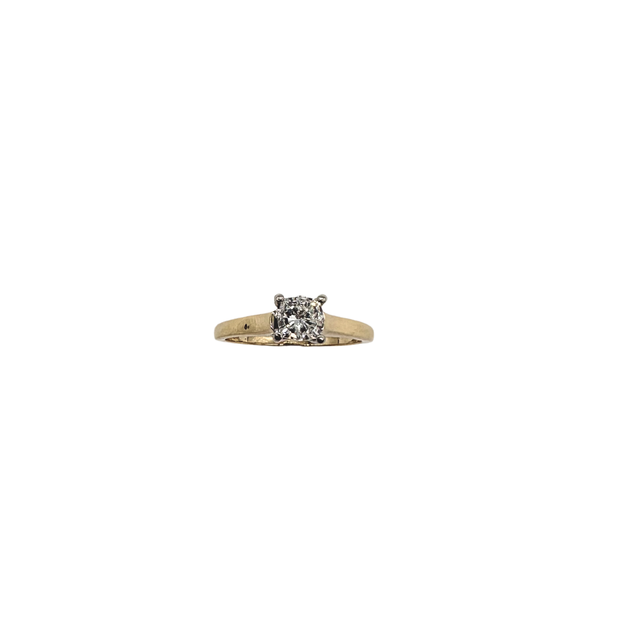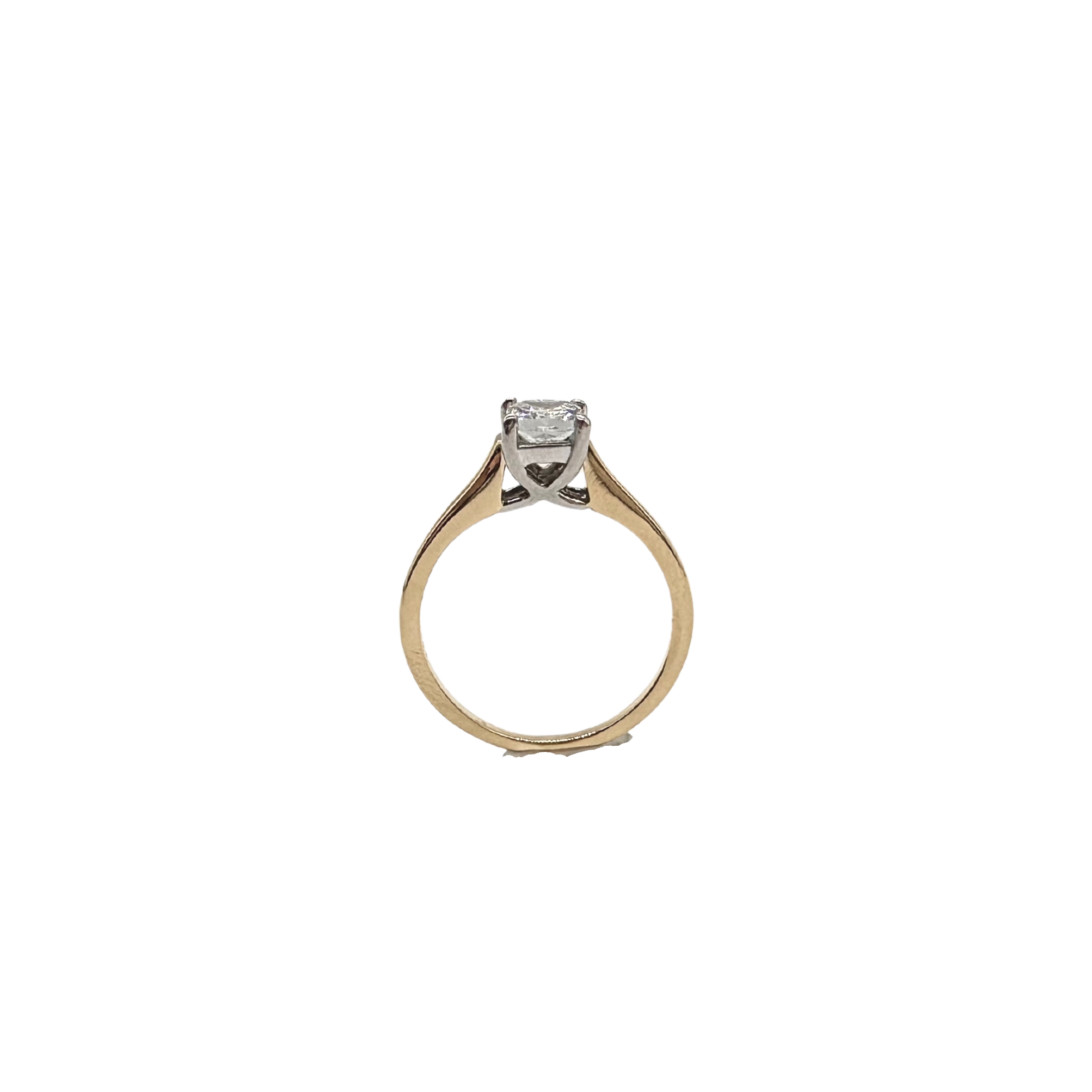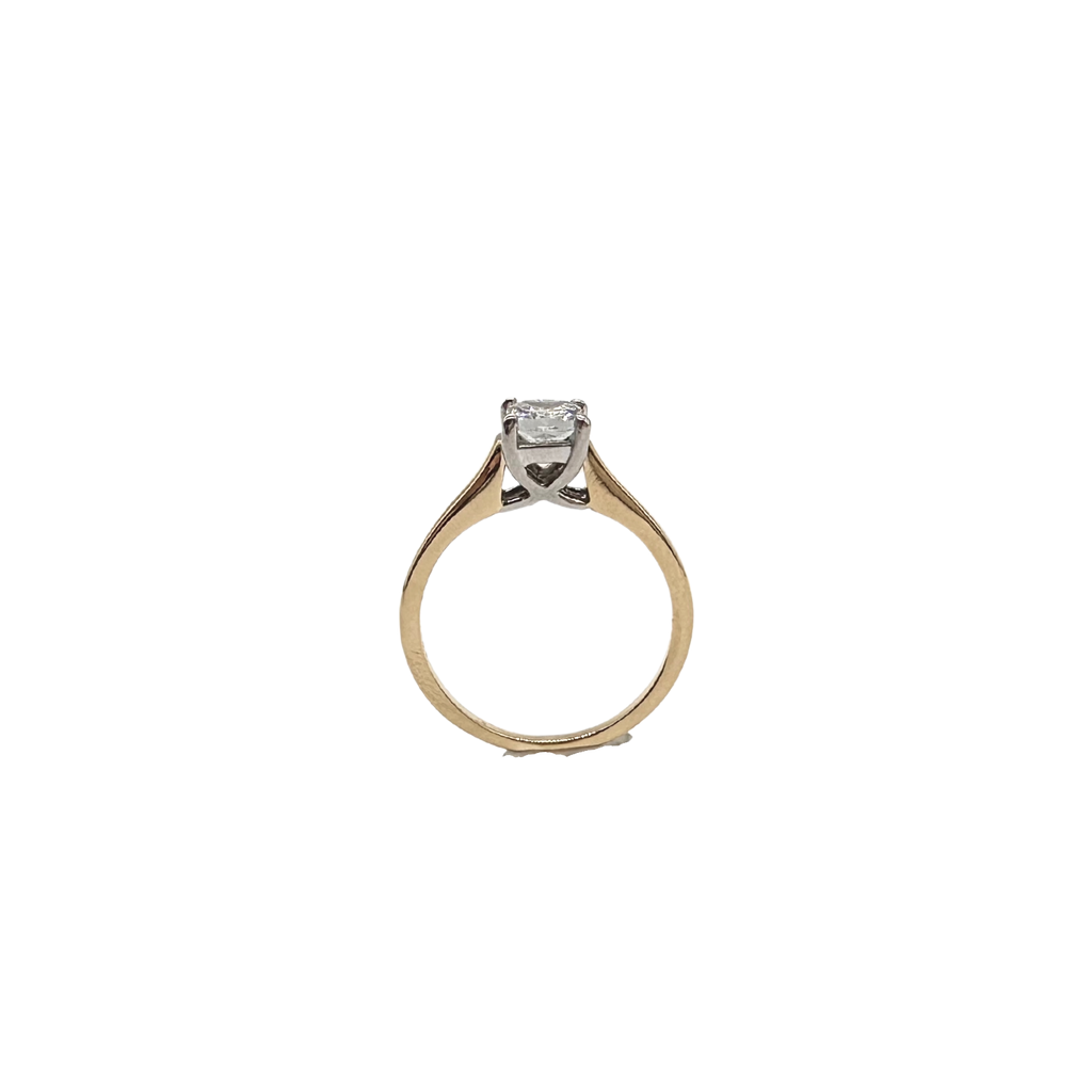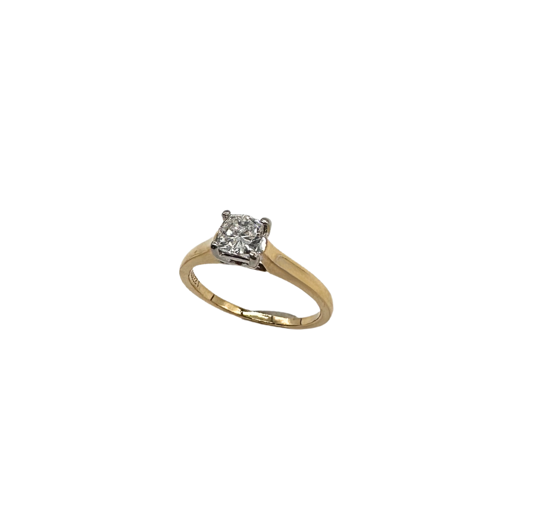 A timeless expression of elegance, this exquisite 18k yellow gold and platinum solitaire ring features a brilliant 3/4 carat diamond set in a refined trellis-style mounting. The platinum prongs provide both durability and contrast, allowing the diamond’s fire and brilliance to take center stage. The sleek band offers a graceful balance of luxury and simplicity—perfect for engagements or classic everyday wear.