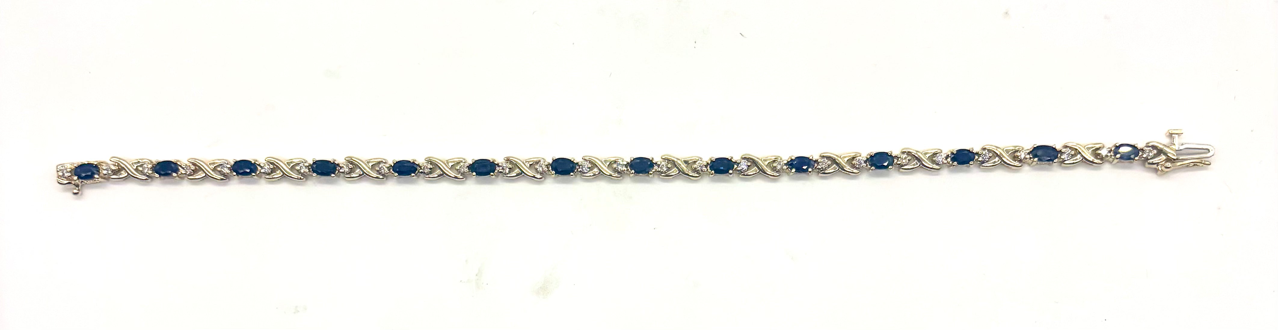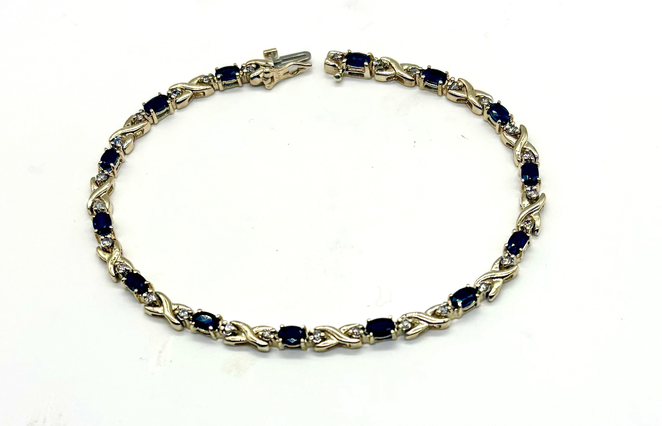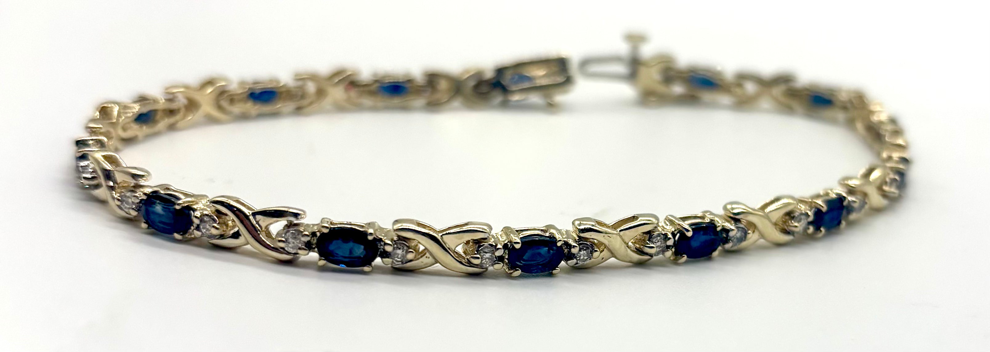 14k Yellow Gold Sapphire and Diamond X Link Bracelet