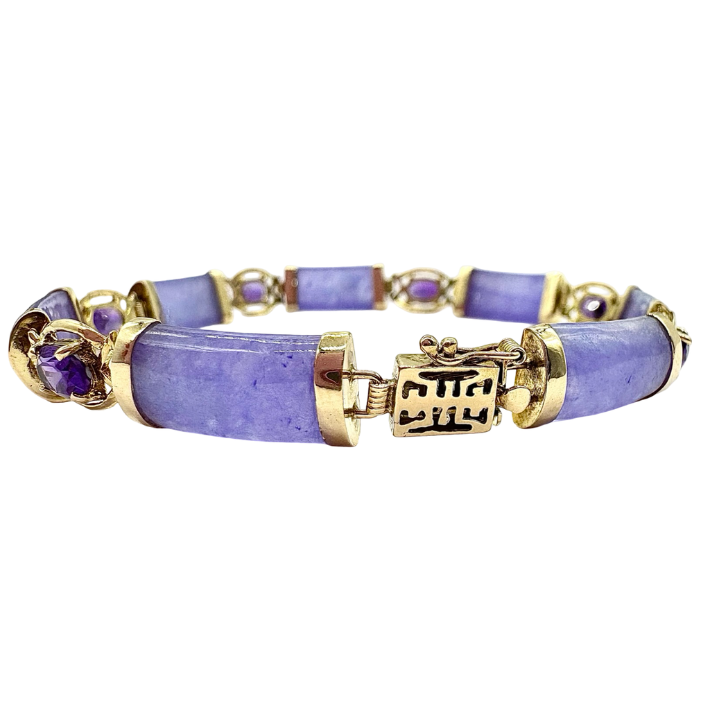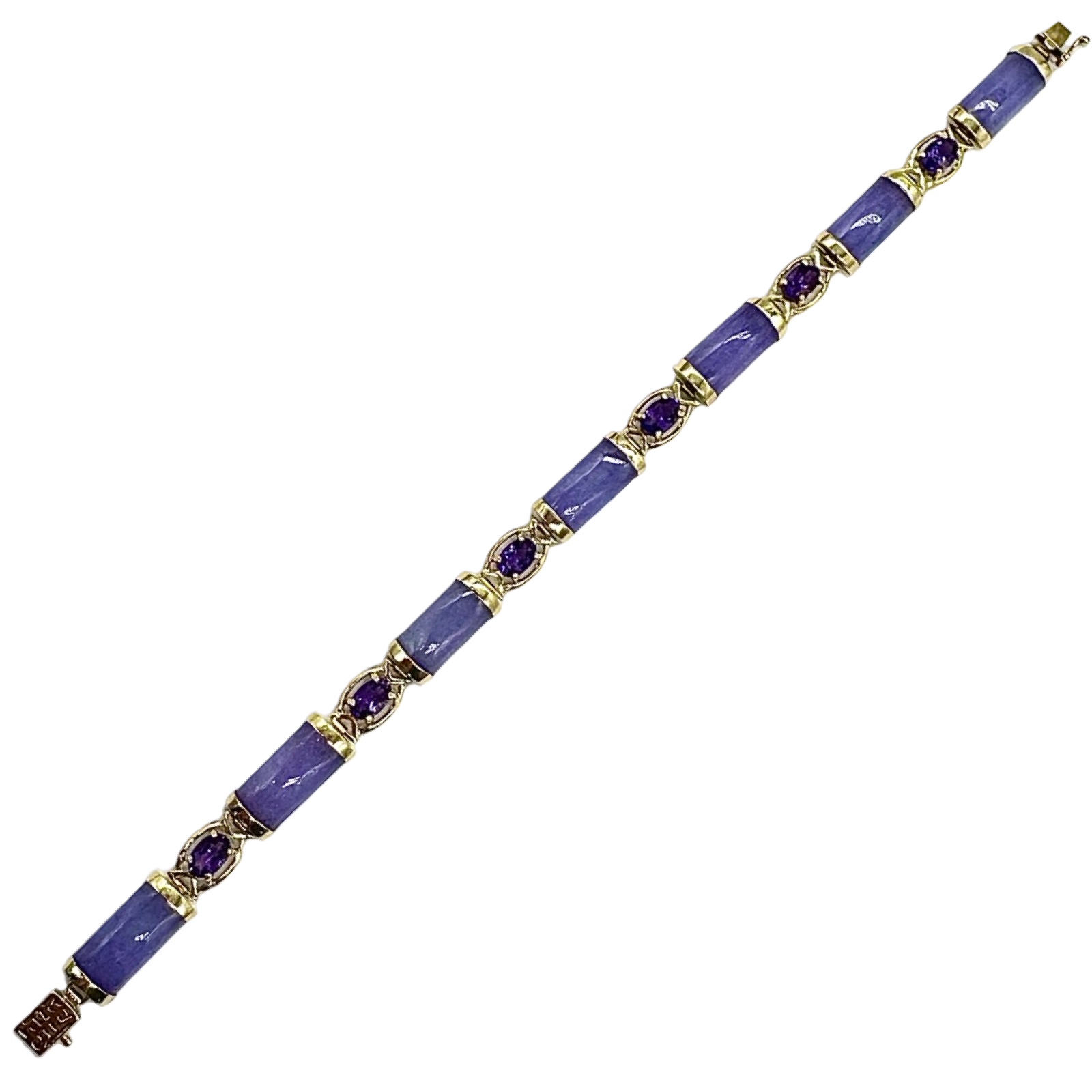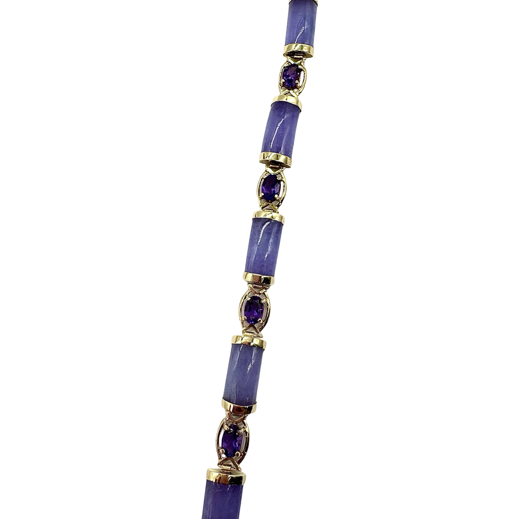 14K Yellow Gold Amethyst Jade Bar Link Bracelet