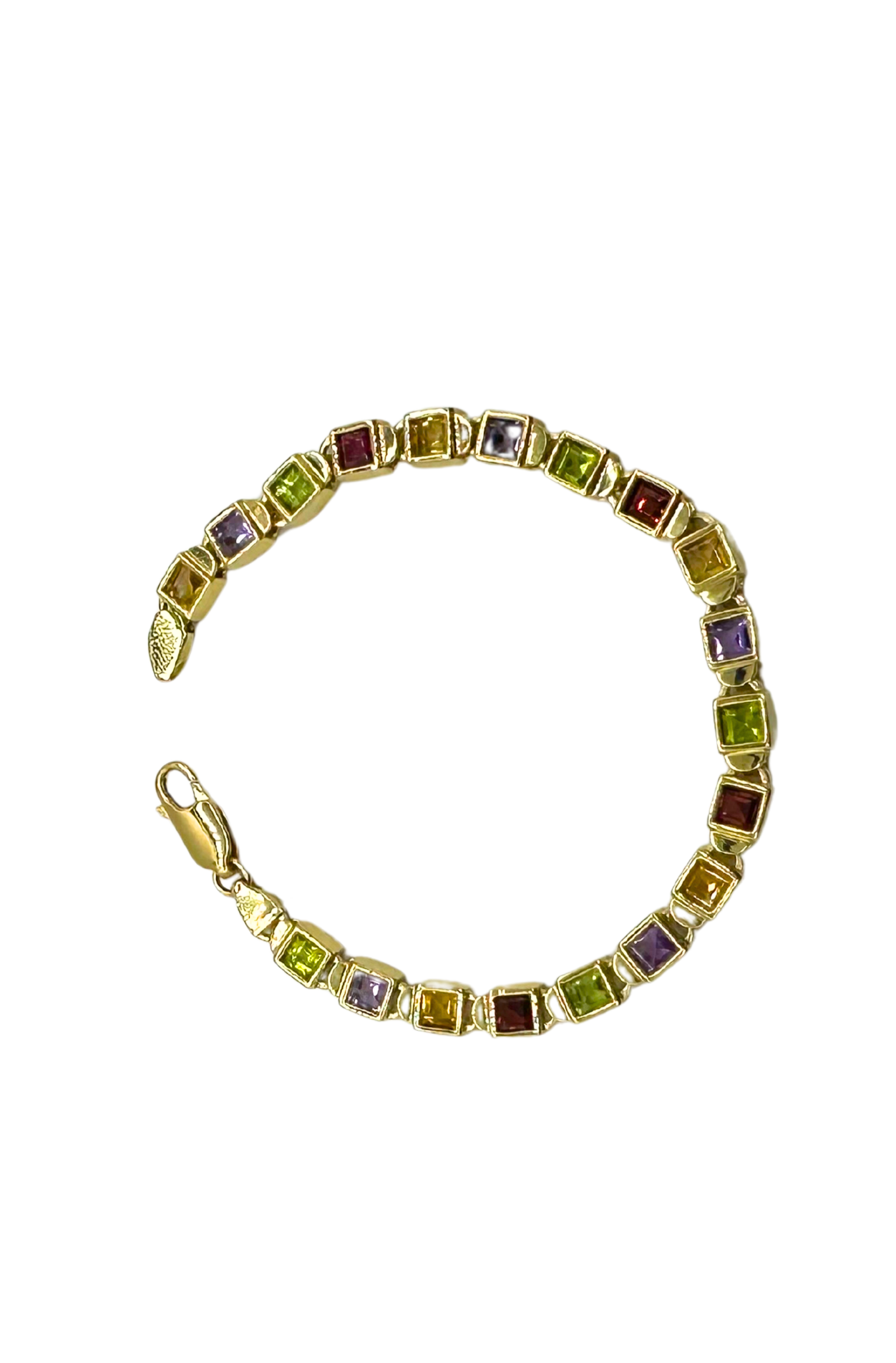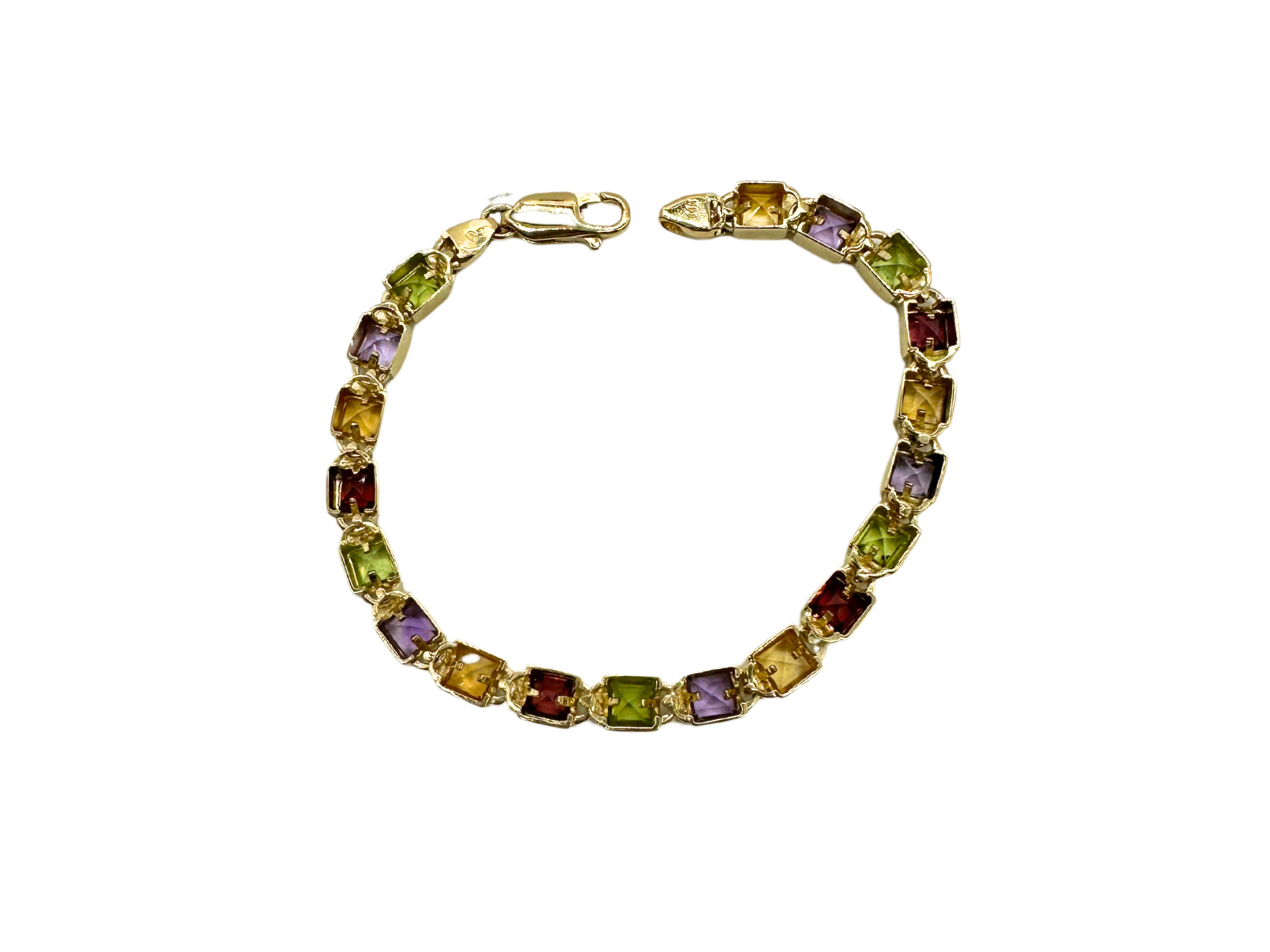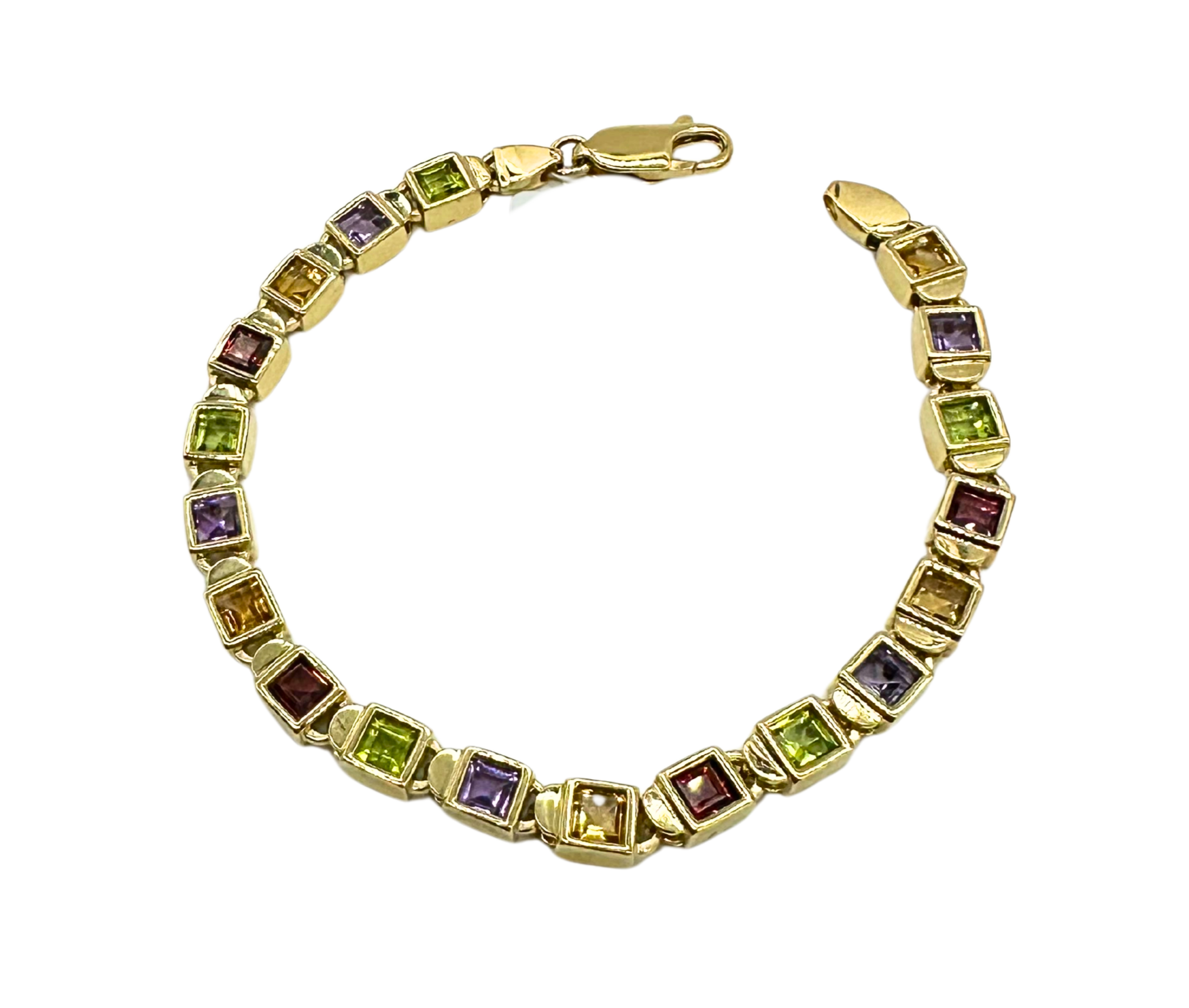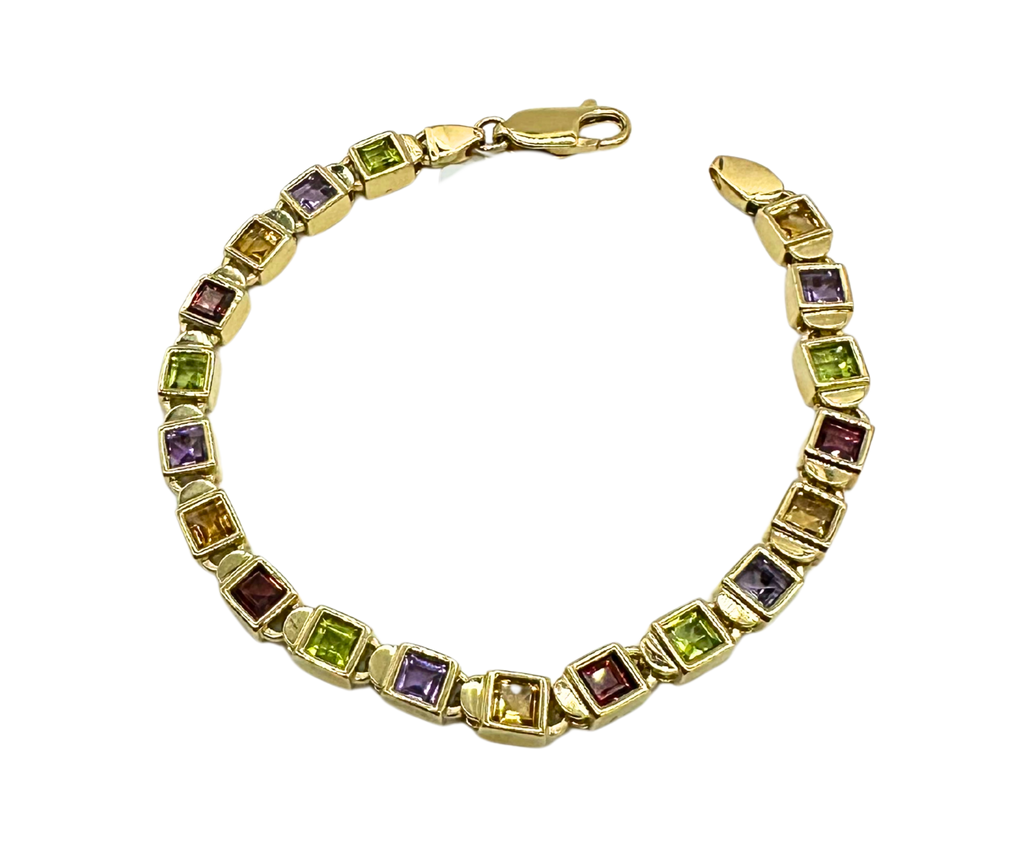 14k Yellow Gold Multi-Color Square Bezel Link Bracelet – 7"