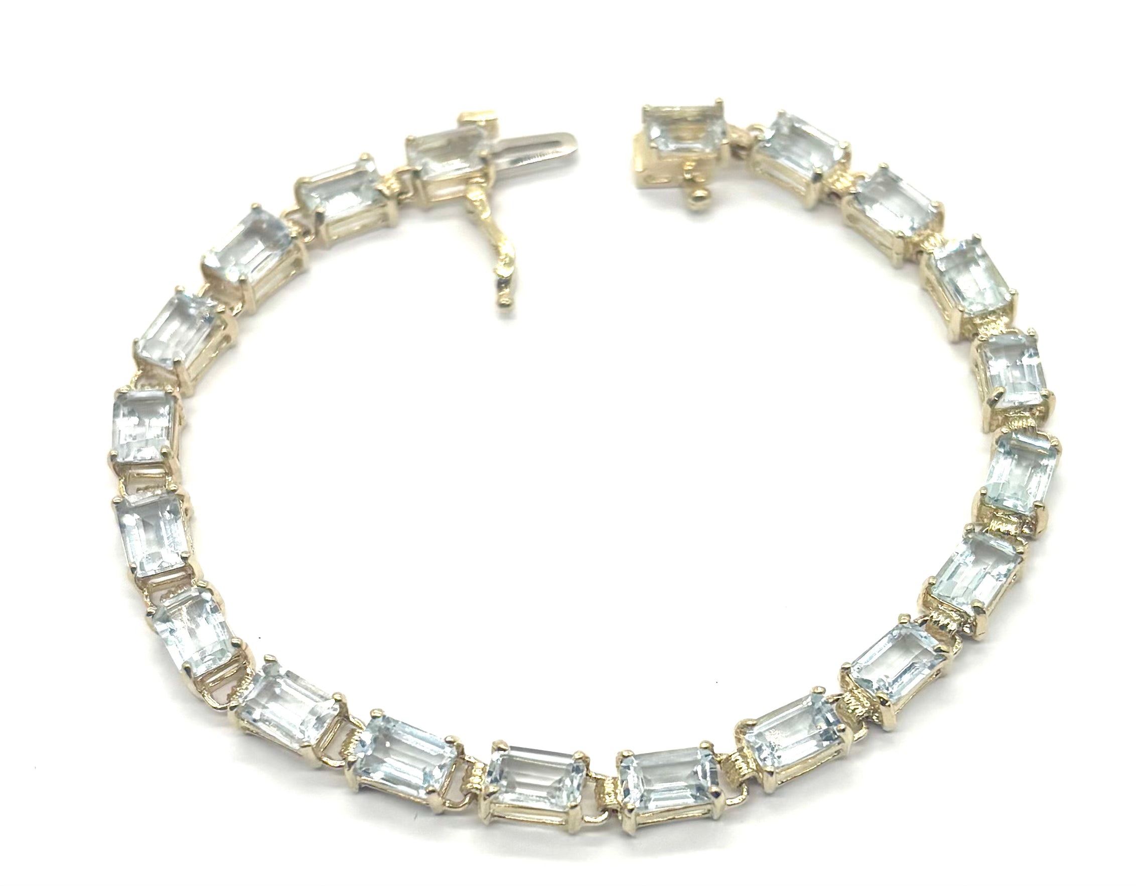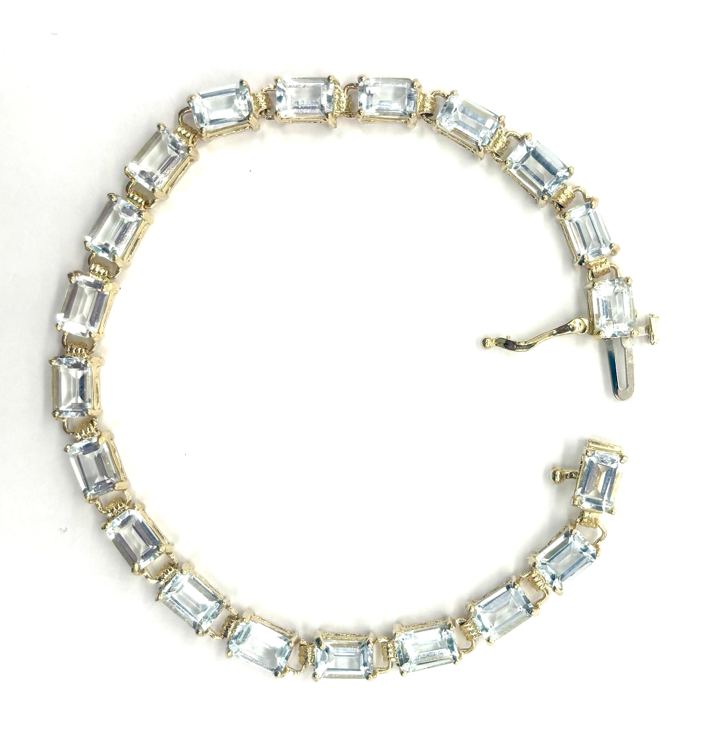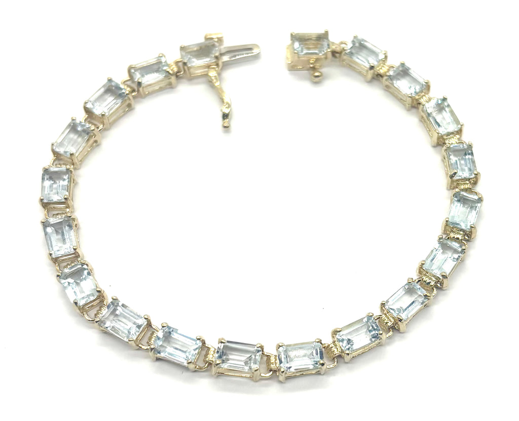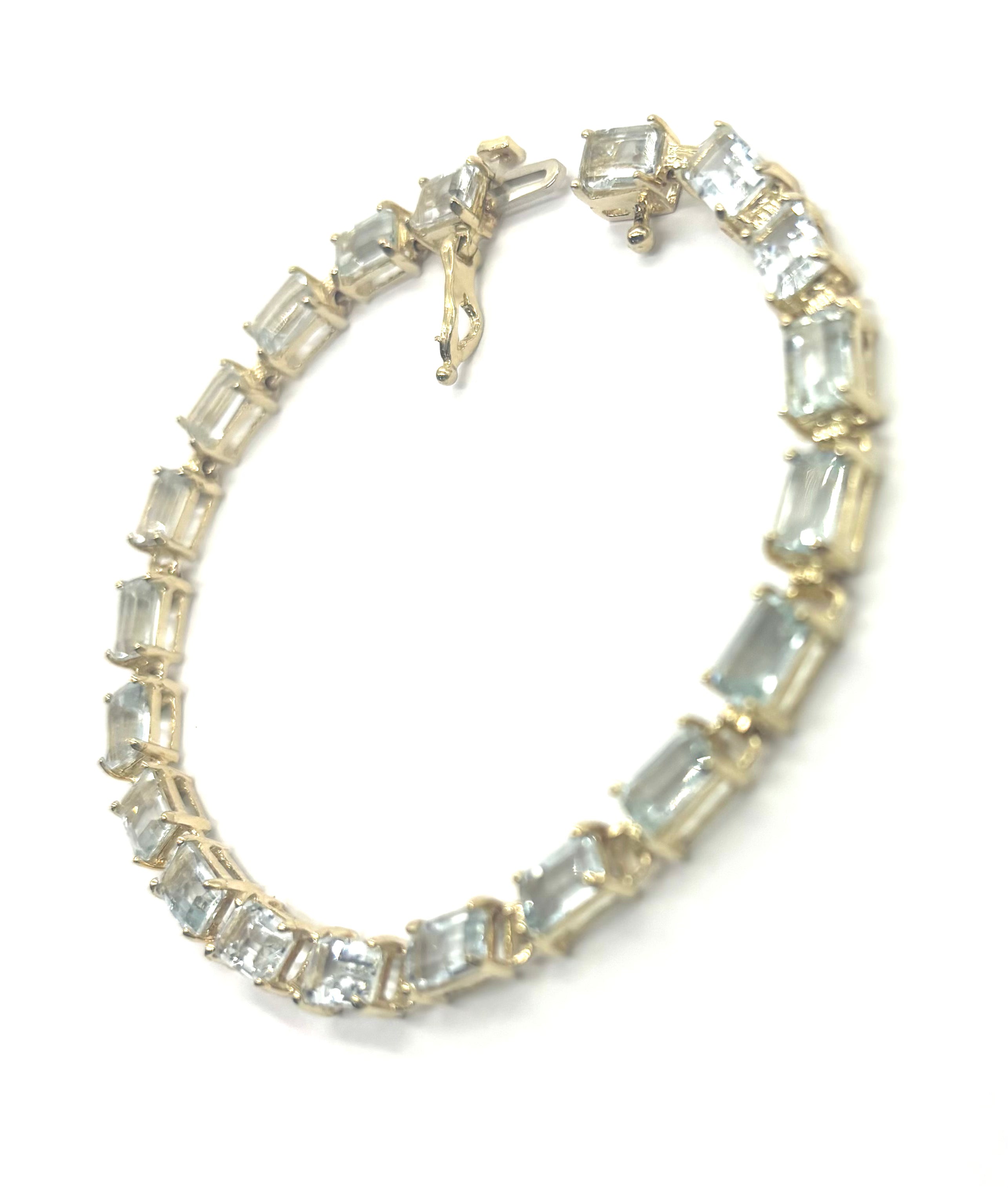 Pre-Owned 14K Yellow Gold Emerald-Cut Aquamarine Bracelet – 7"