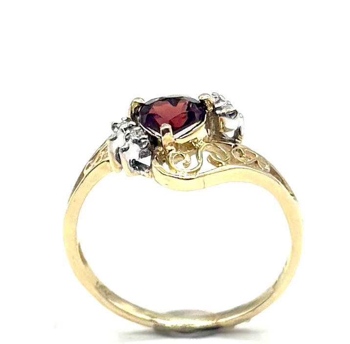 Pre-Owned 14K Two-Tone Gold Garnet & Diamond Filigree Bypass Ring – Size 6