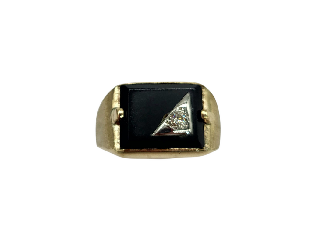 10K Yellow Gold Masonic Flat Top Ring with Diamond Accent