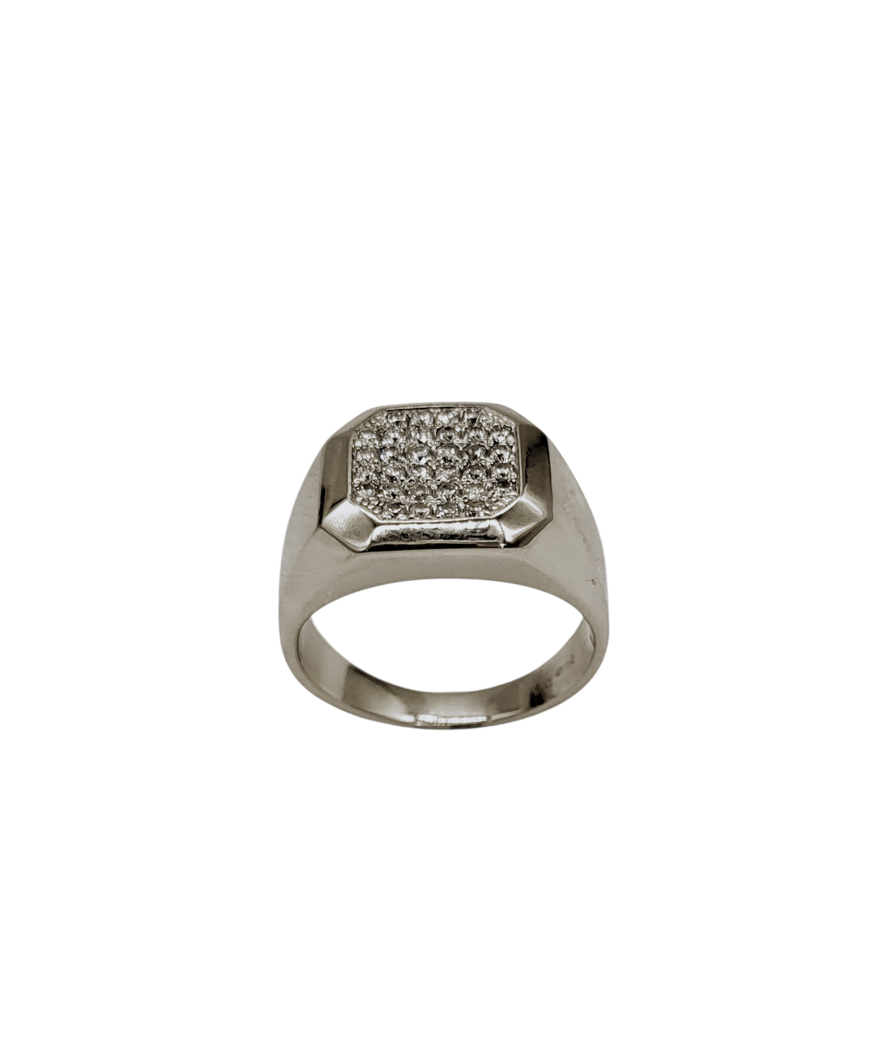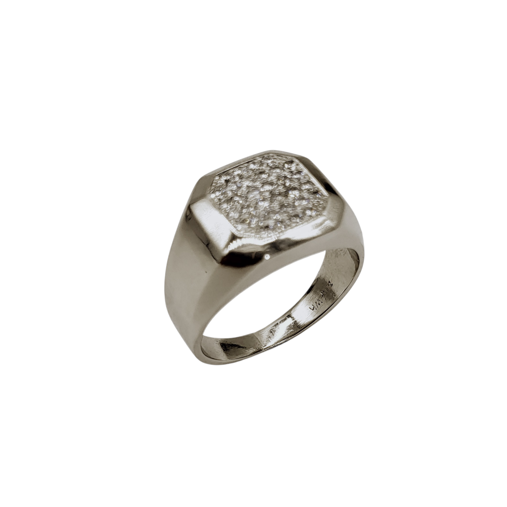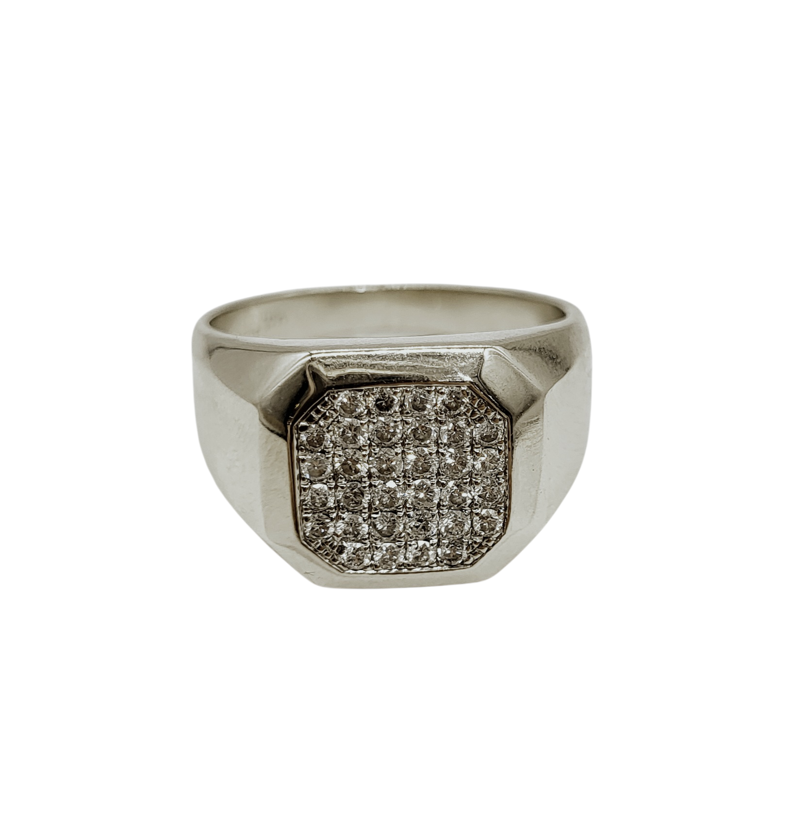The 1/2 Carat Total Weight Flat Top Cluster Ring is crafted from 14 karat white gold with a combination of satin and smooth polished finishes. This men's ring showcases a total diamond weight of 0.5 carats, offering a refined appearance that balances durability with elegance, ideal for daily wear or special occasions.