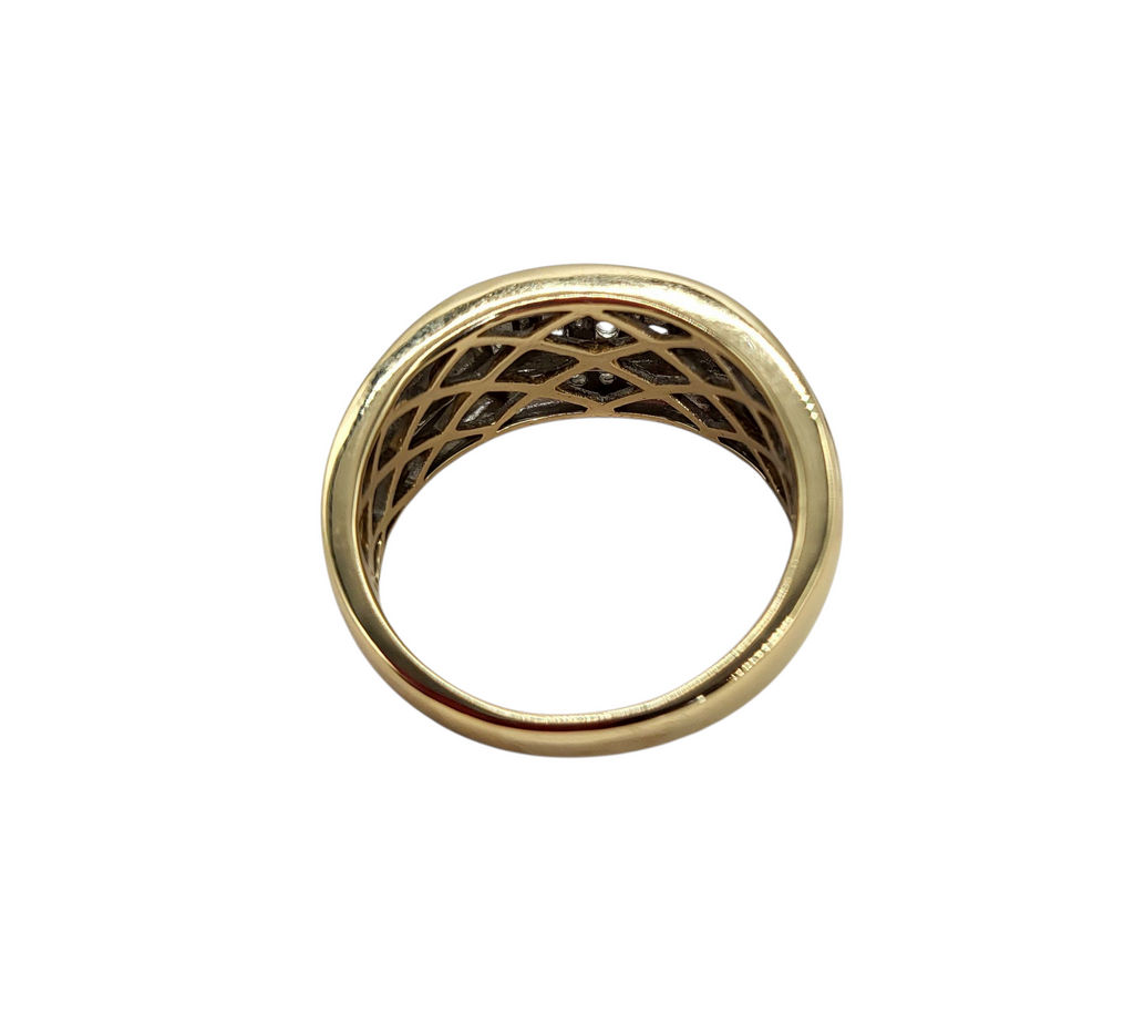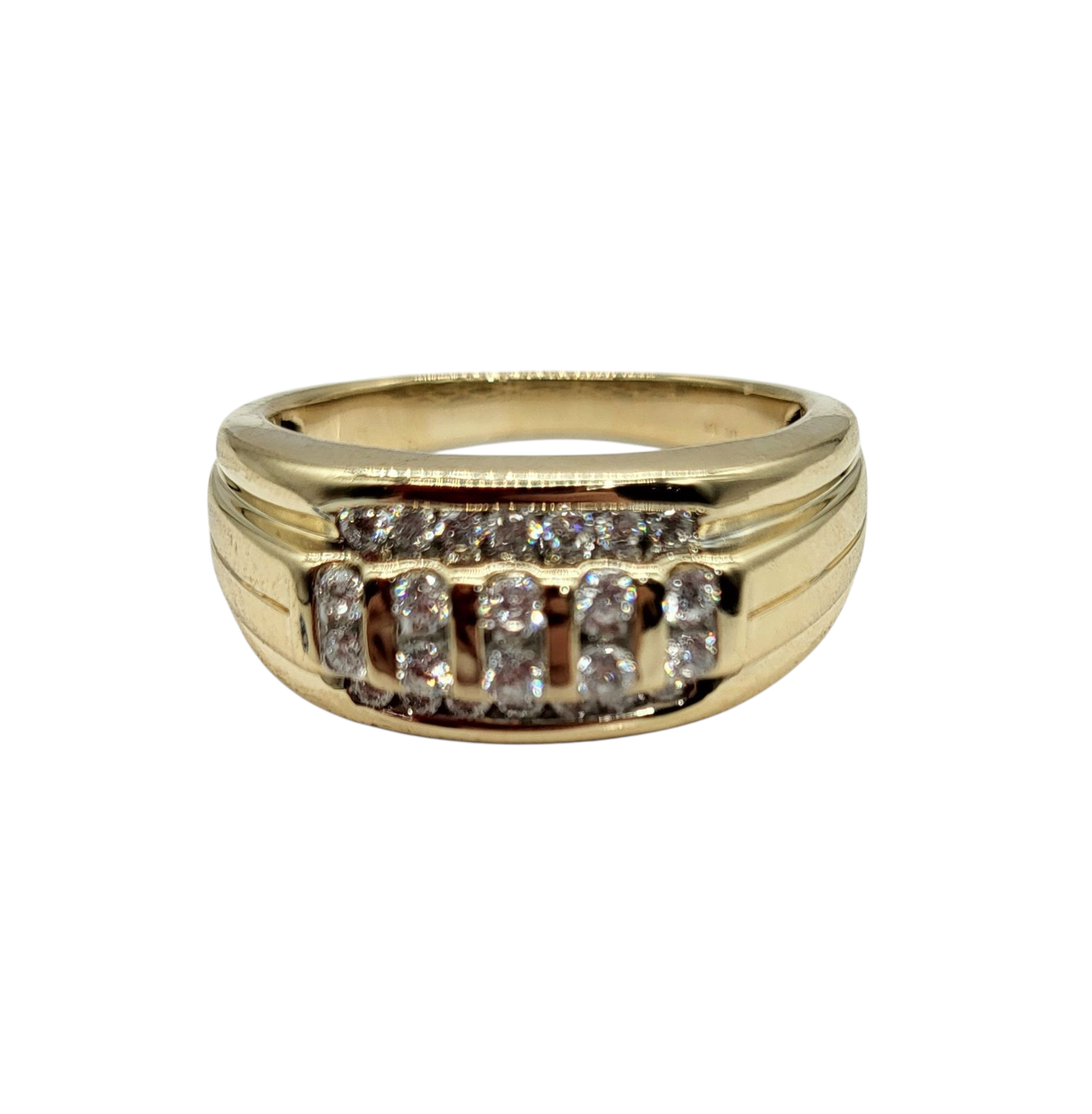 Introducing our Men's 10 karat yellow gold Natural Diamond Ring featuring a 1/2 carat total weight of stunning, channel set diamonds. This masculine 4 row band exudes sophistication and luxury, making it the perfect statement piece for any man. Elevate your style with this timeless and expertly crafted ring.