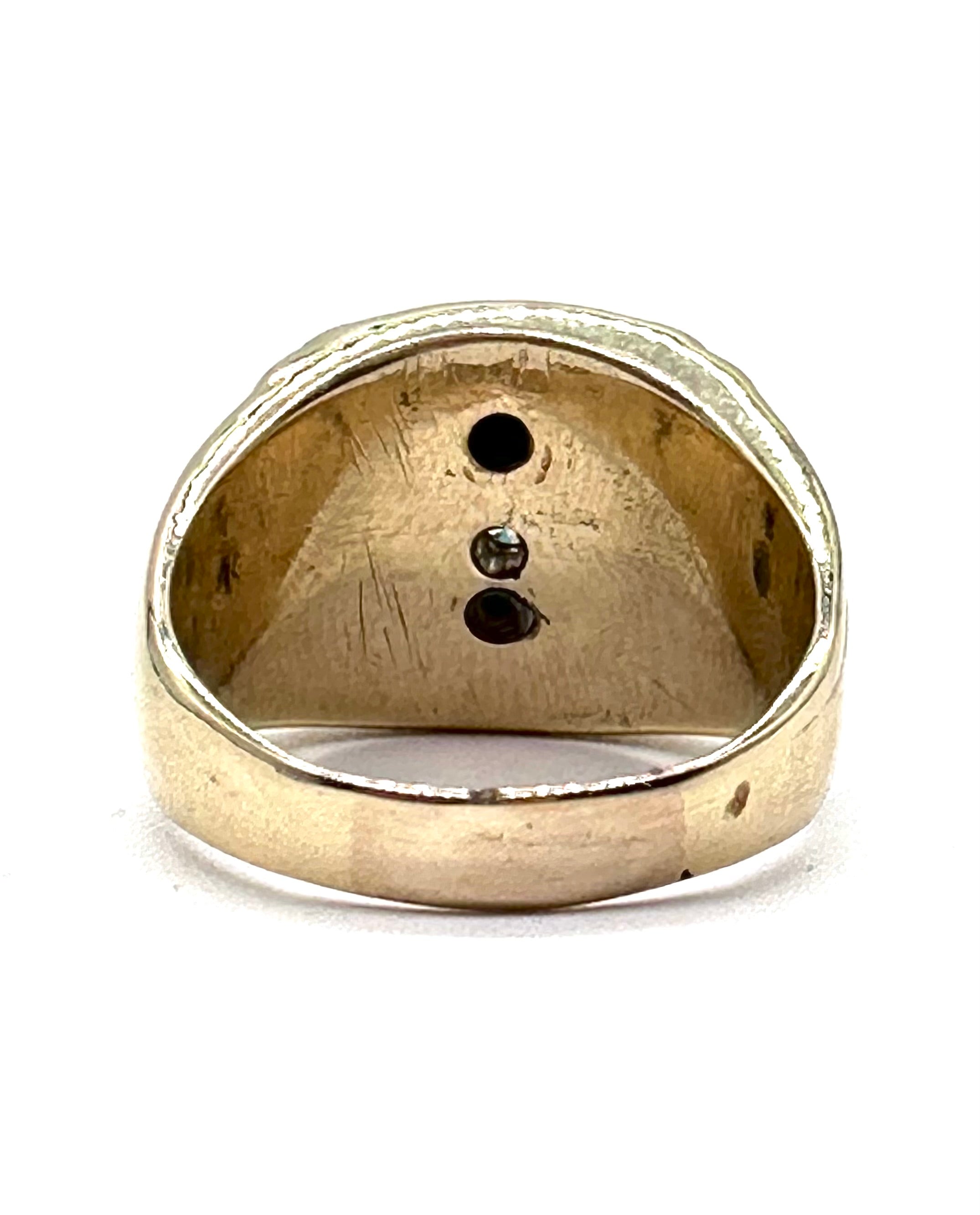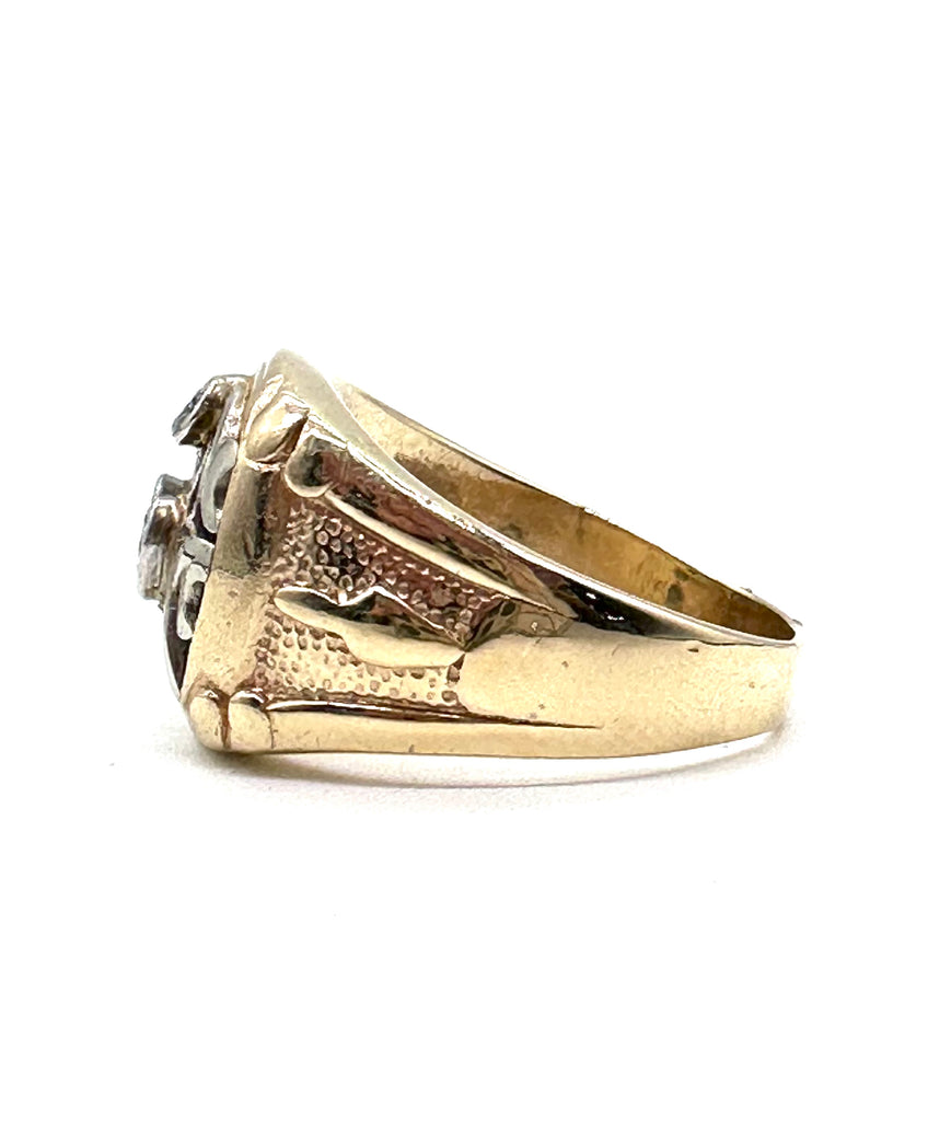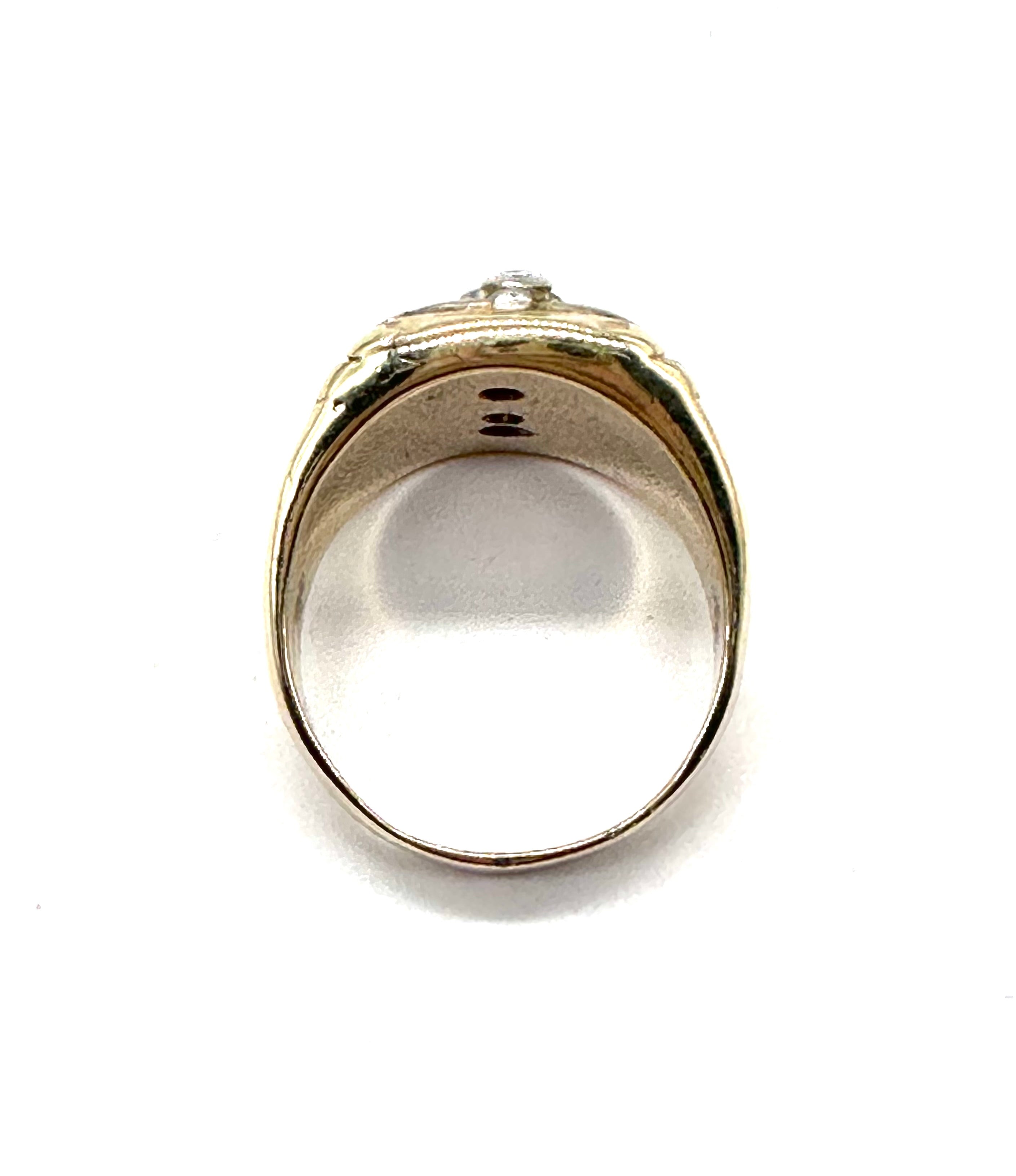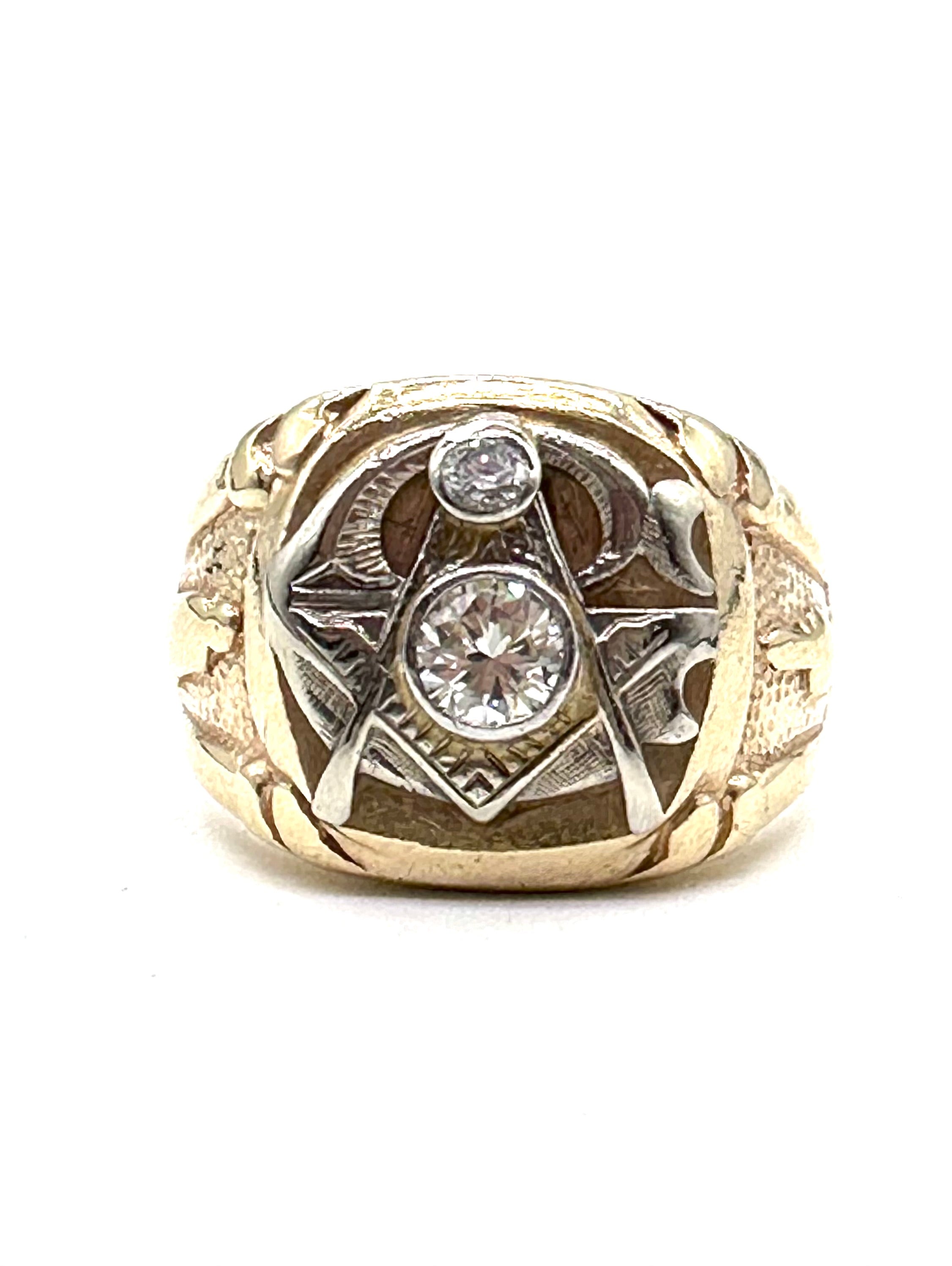 This striking diamond Masonic Ring is set with a total of a half carat of diamonds in 10 carat yellow and white gold.