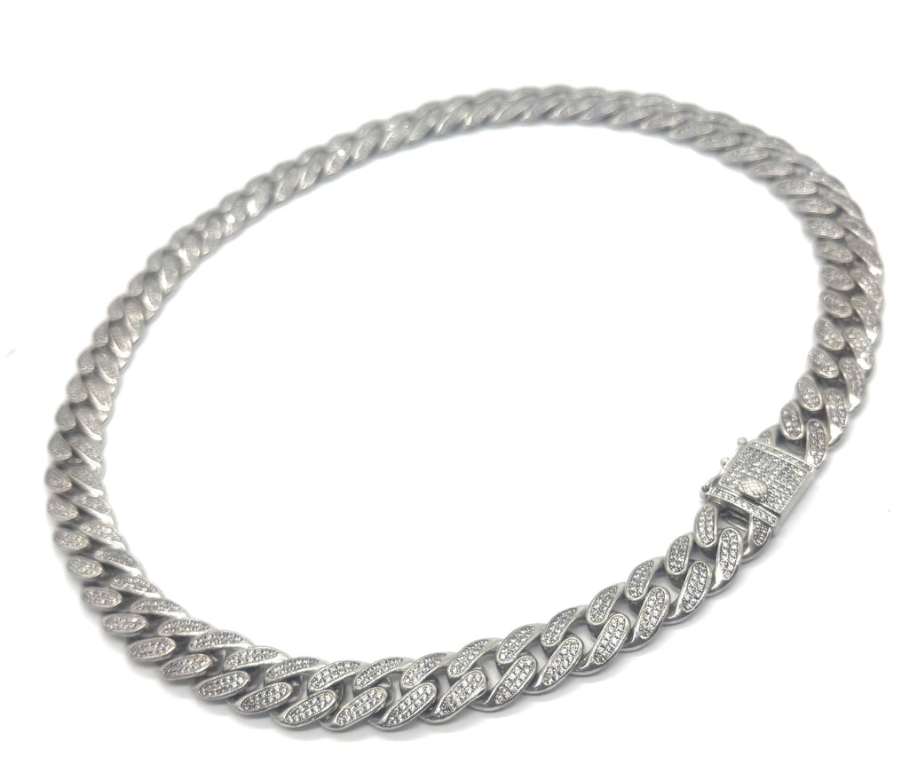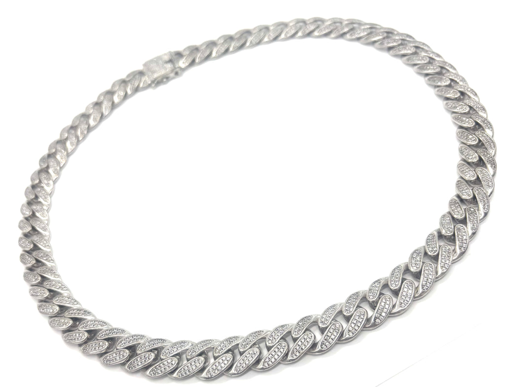 925 Sterling Silver 13mm Cuban Link Necklace- CZ Stone Accents
