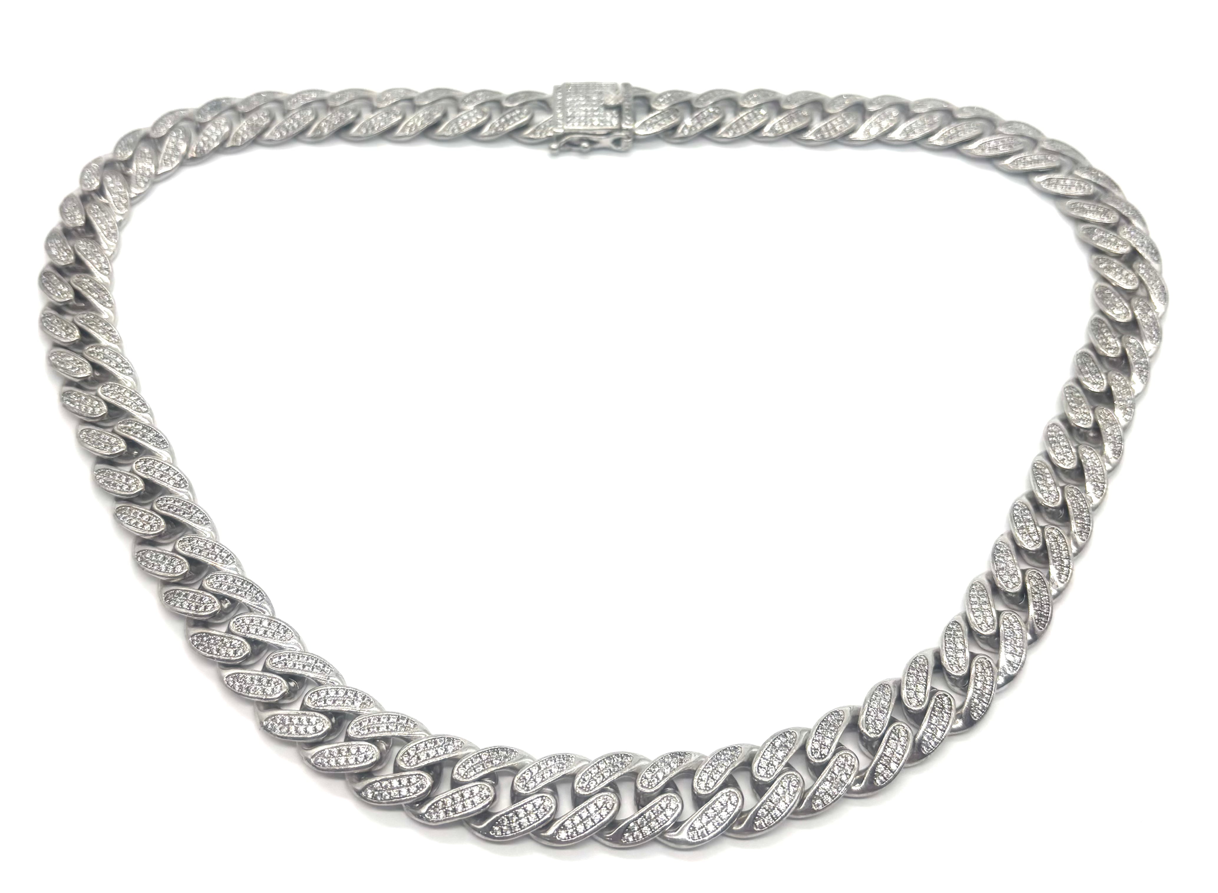 Upgrade your collection with this bold and beautifully crafted 13mm Cuban link necklace, made from genuine 925 sterling silver and finished with brilliant cubic zirconia detailing for maximum shine. This pre-owned piece has been fully inspected and polished, offering the same luxury look and feel at an exceptional value.