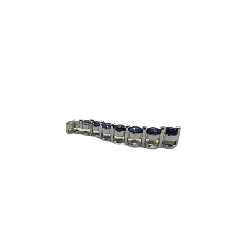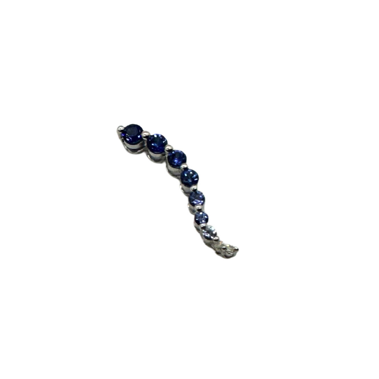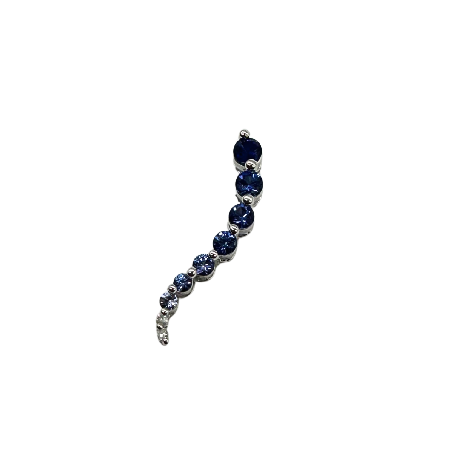 Add timeless elegance to your collection with this 10k white gold journey pendant, showcasing a graceful cascade of nine graduated round-cut blue stones. The stones gradually increase in size from top to bottom, symbolizing the path of love or success.
