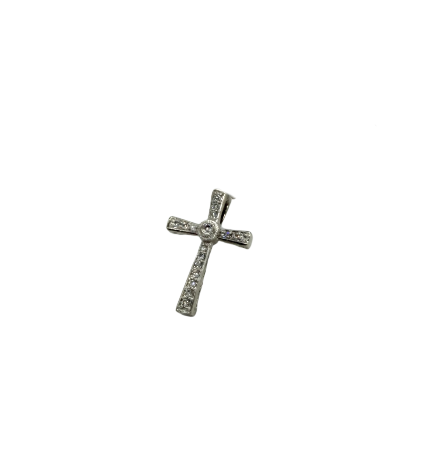 10k White Gold Diamond Bead-Set Cross Pendant – 15 PTW