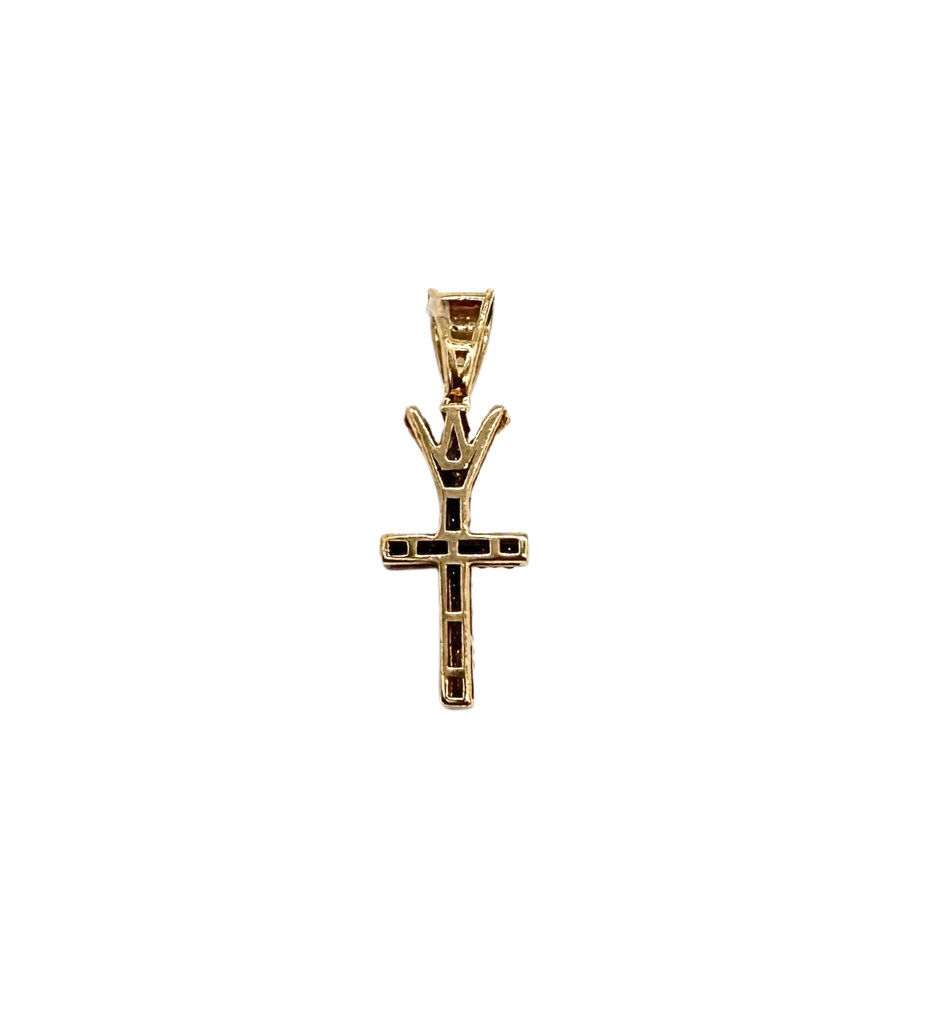 This striking 10k yellow and white gold pendant blends faith and royalty in a bold, radiant design. The cross is fully adorned with pave-set diamonds for maximum sparkle, while the crown detail adds a regal finishing touch. Perfect for those who love meaningful jewelry with a statement-making edge.