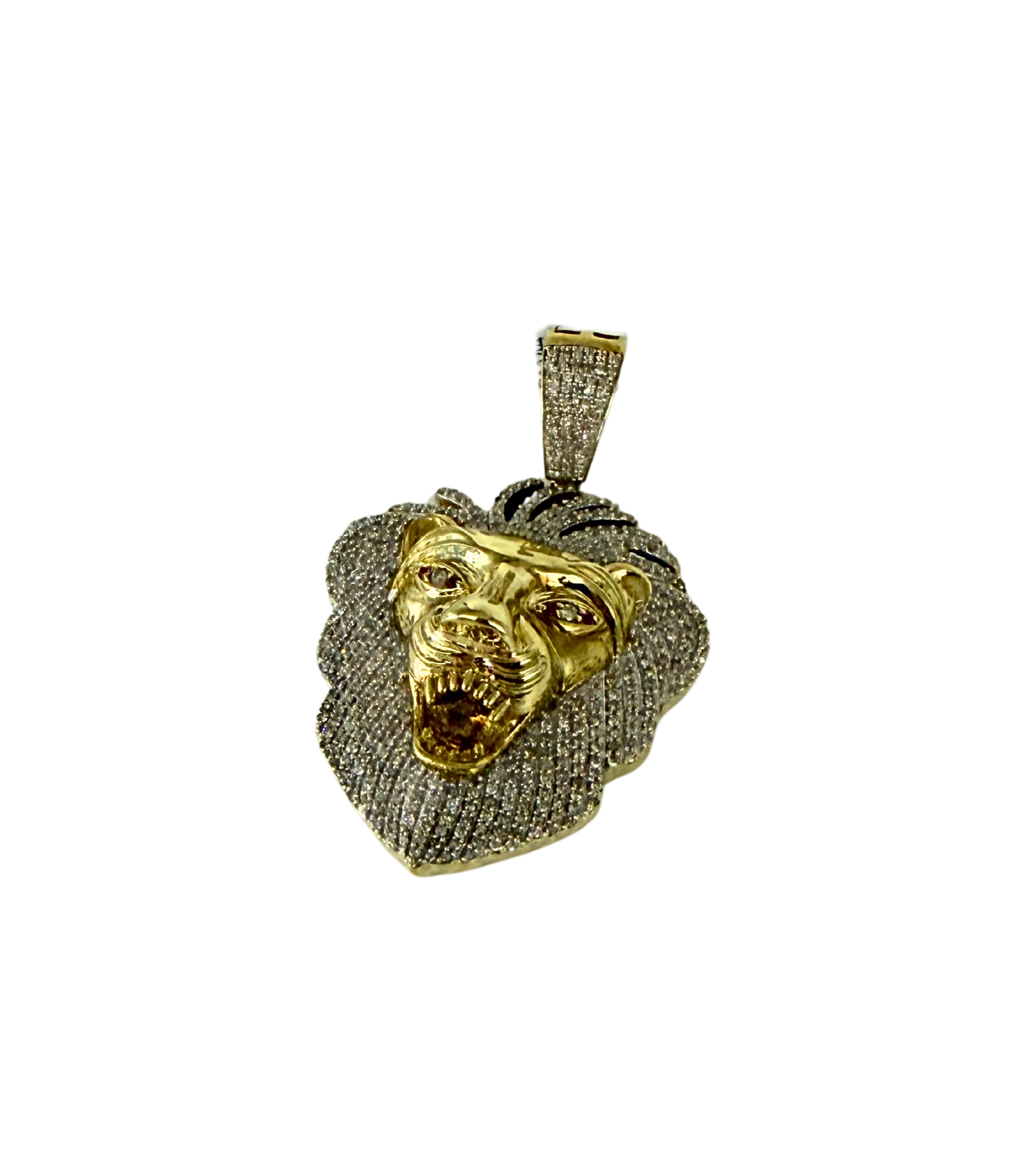 10k Yellow Gold 2 CTW Diamond Lion Head Pendant 14.1 Grams