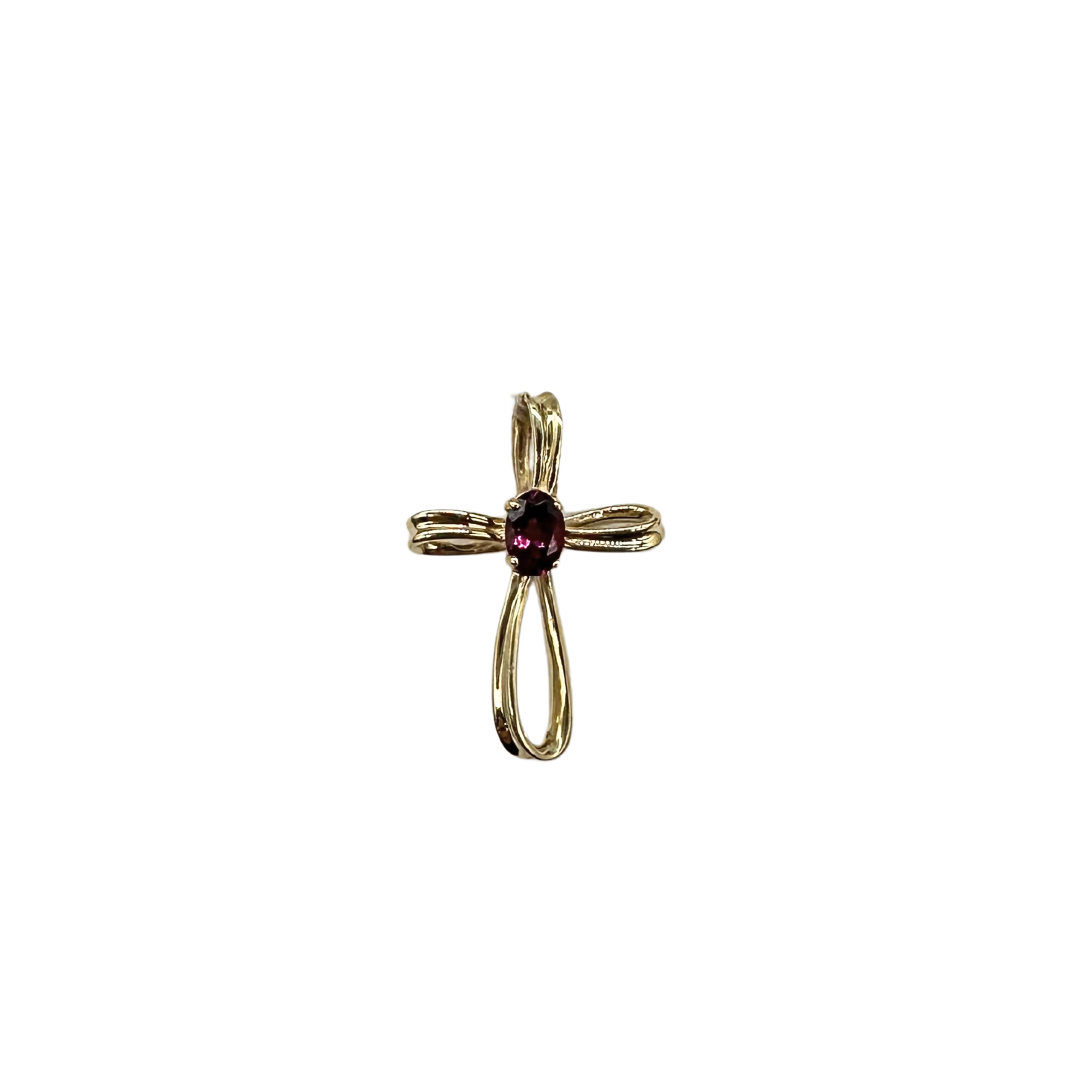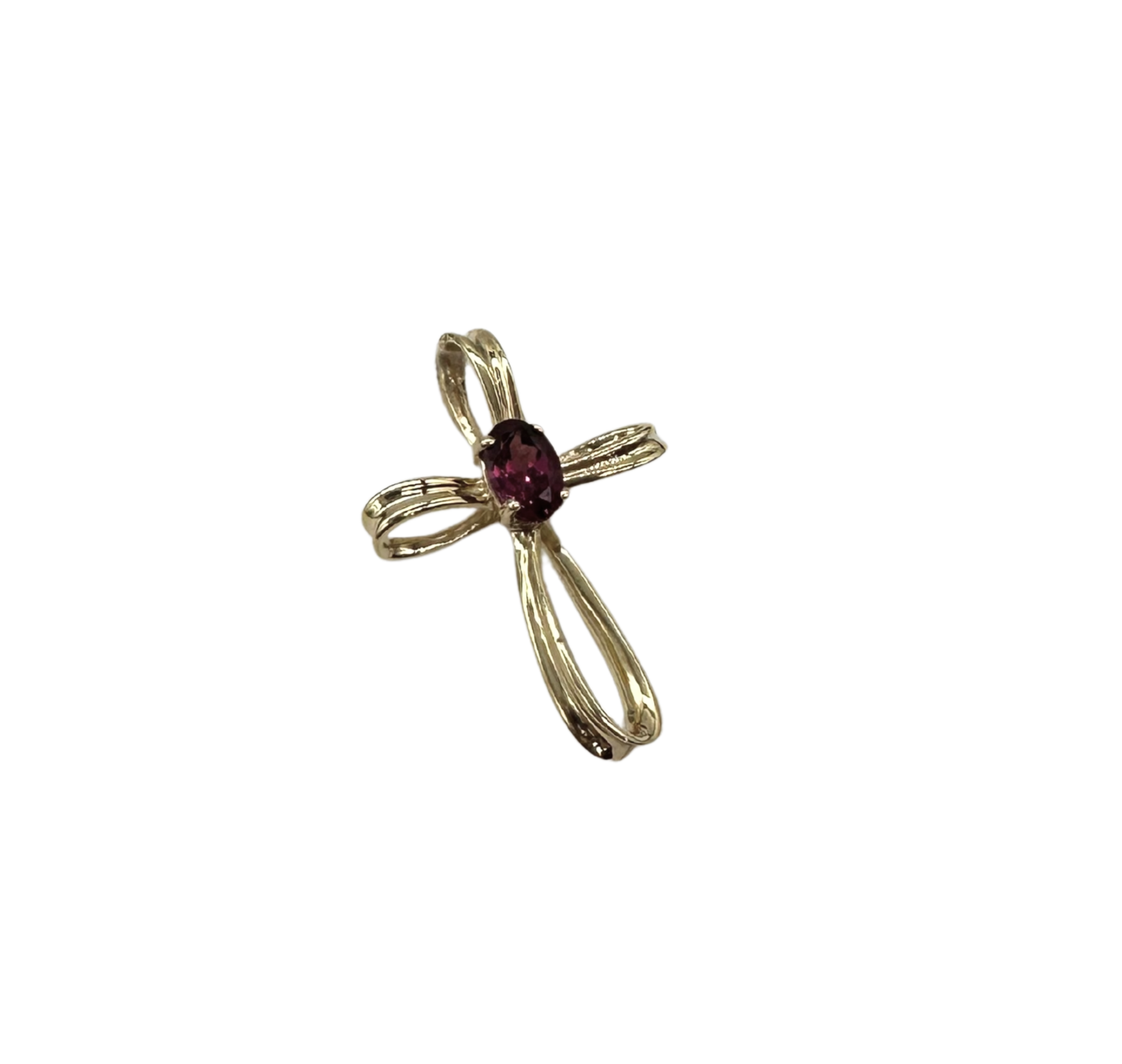 10K Yellow Gold Rubellite Ribbon Cross Pendant