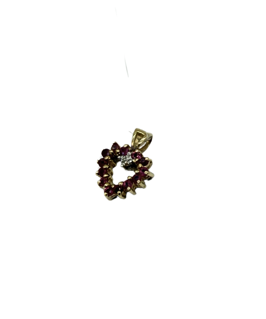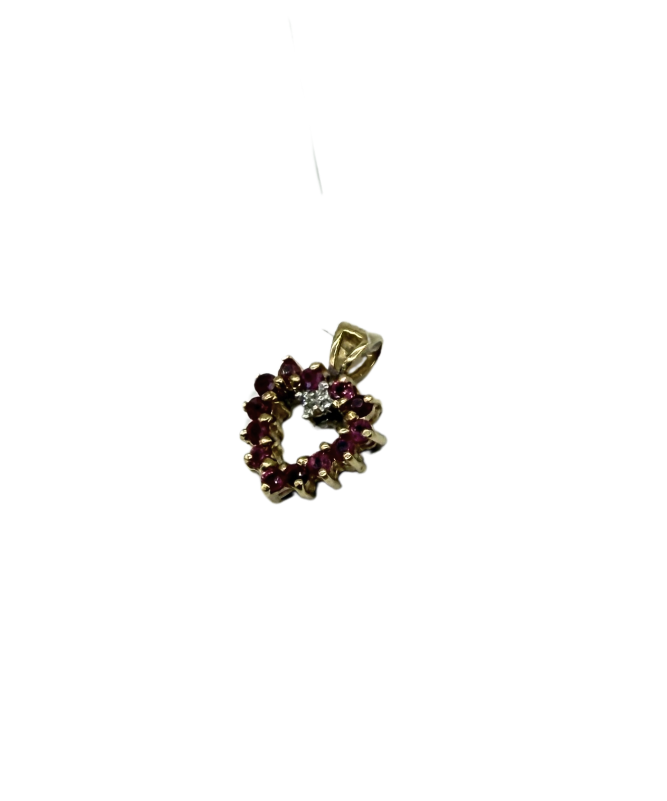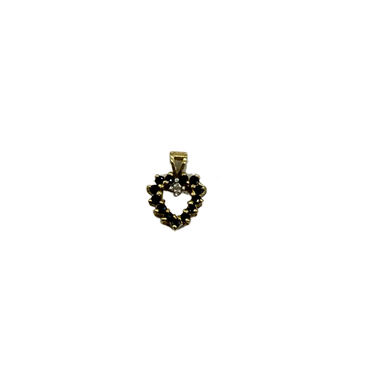 10k Yellow Gold Ruby & Sapphire Heart Outline Pendant